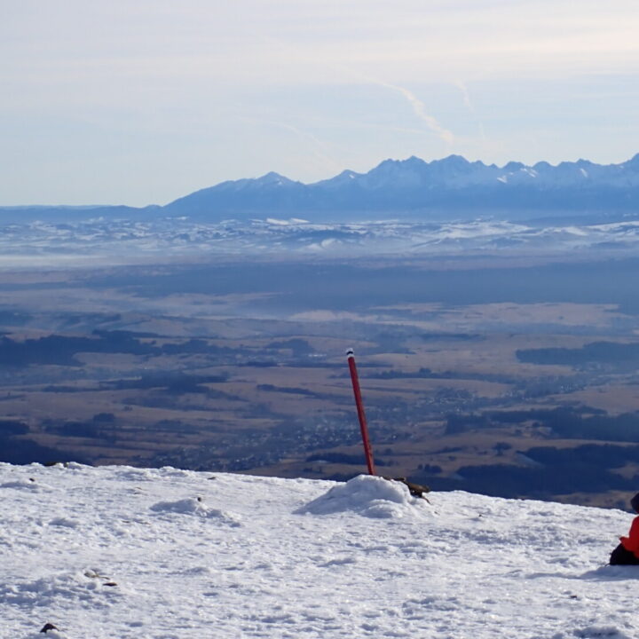 Pierwszy etap na Sokolicę to 1,6 km „schodów” o średnim nachyleniu 22% (momentami do 30%). To miejsce, gdzie zawsze zostawia się trochę płuc — a zimą, przy twardym podłożu, zmęczenie przychodzi szybciej. Tego dnia jednak niosła mnie myśl o „pięćsetce”. W ciągu 1:40 h dotarłem na szczyt Babiej Góry, która tego dnia gościła wszystkich w iście wiosennym nastroju: słońce, bezwietrznie, widoki jak z pocztówki.