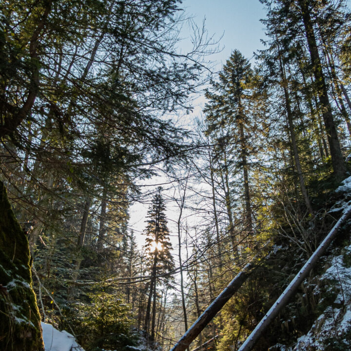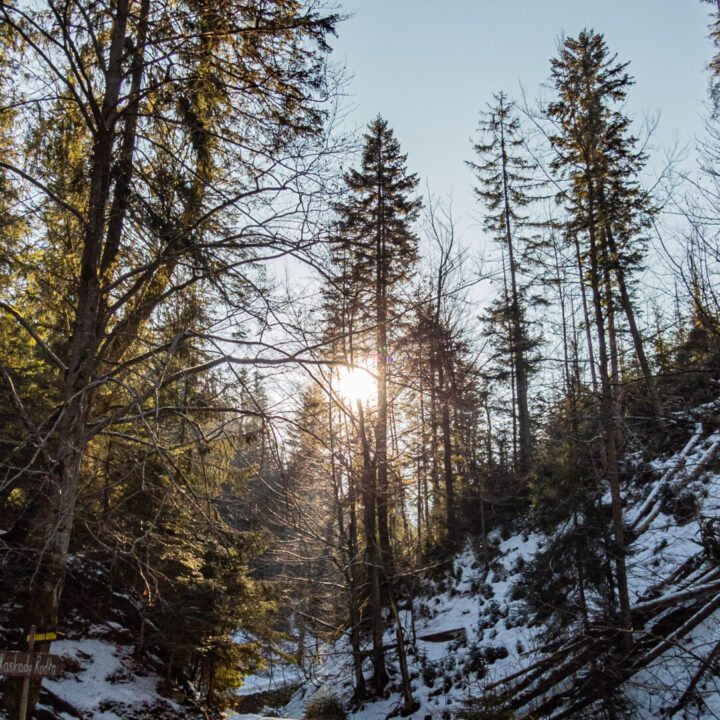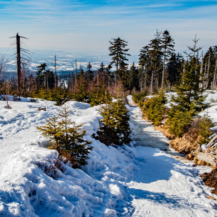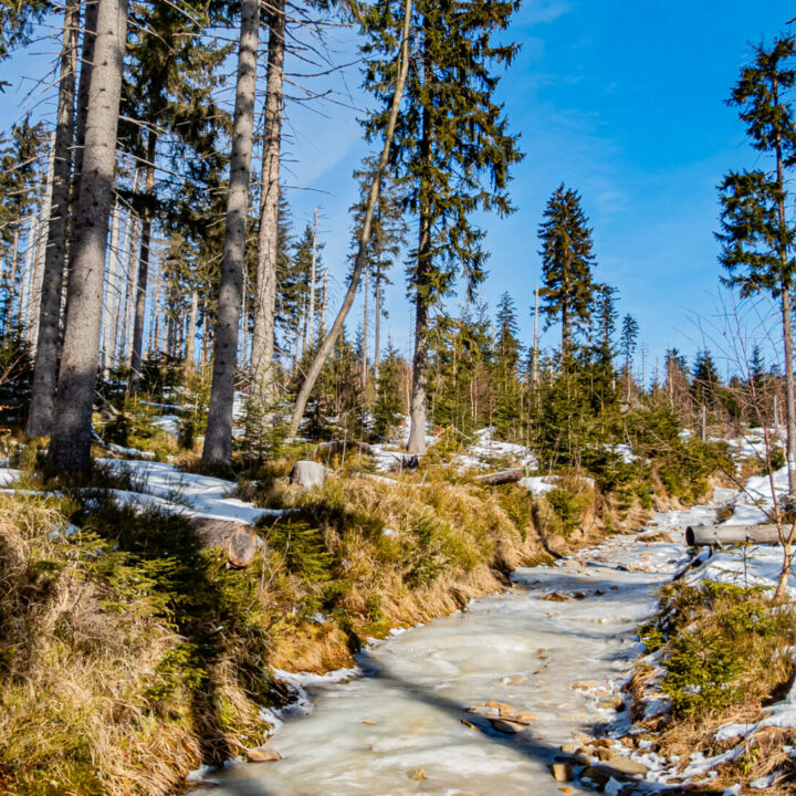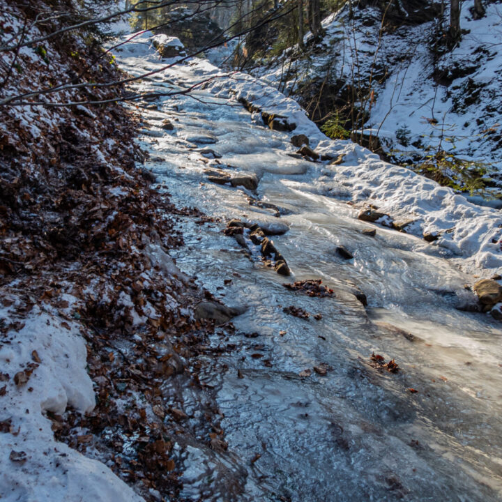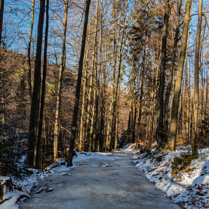 🔹 Zimą szlak wokół Kaskad Rodła oraz podejście do schroniska może być bardzo oblodzony – raczki to absolutne minimum.
