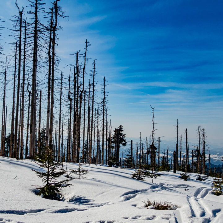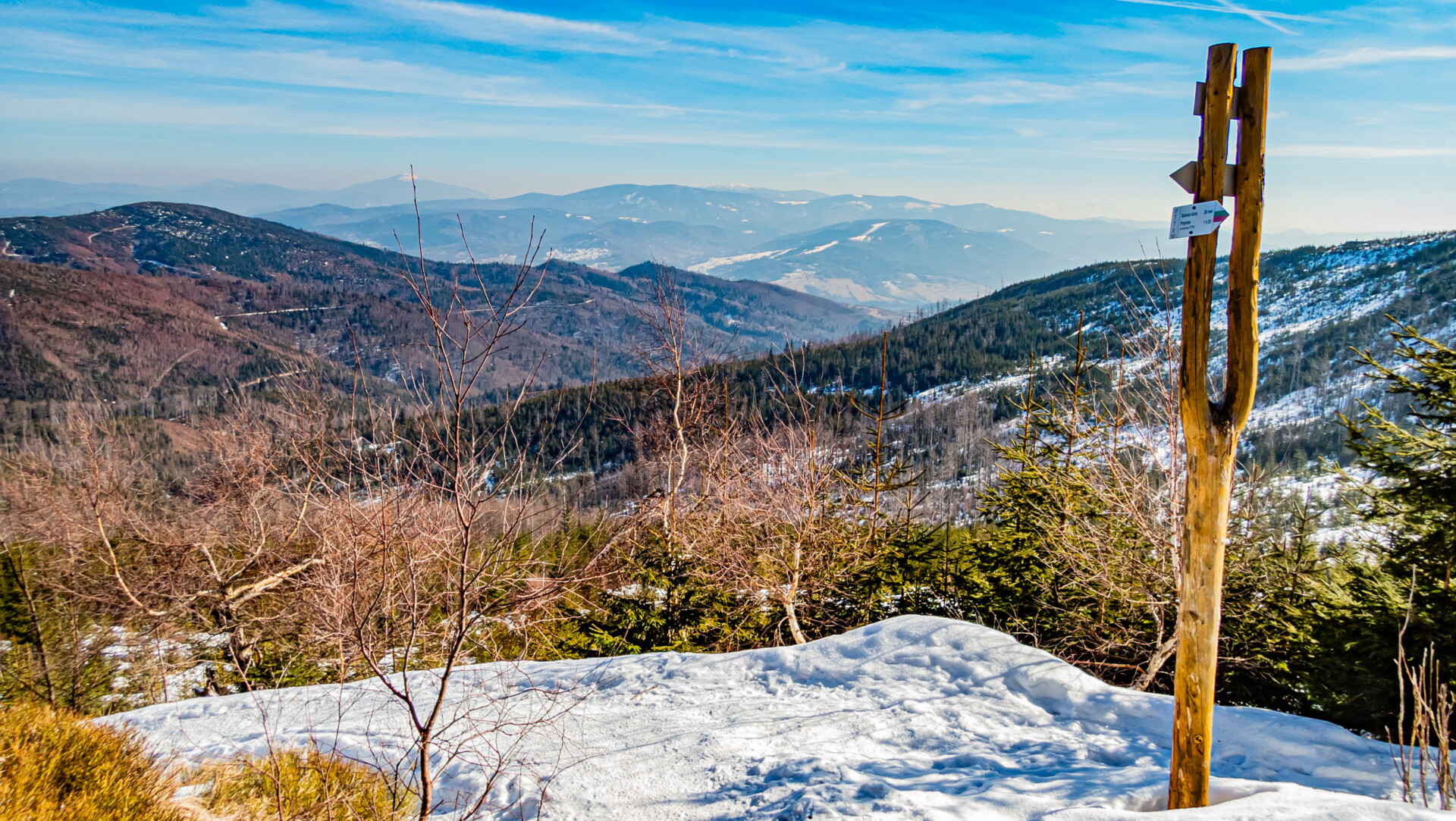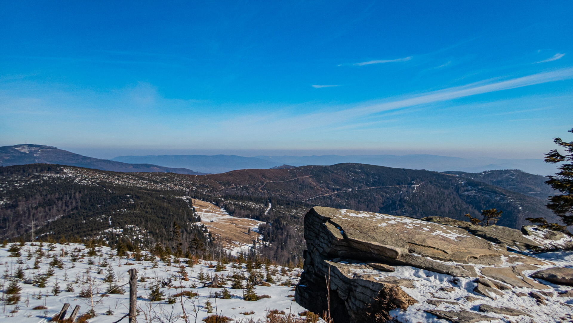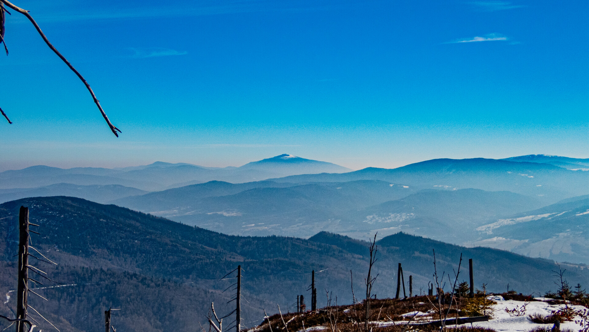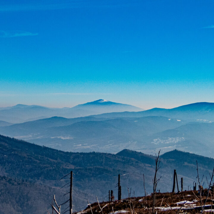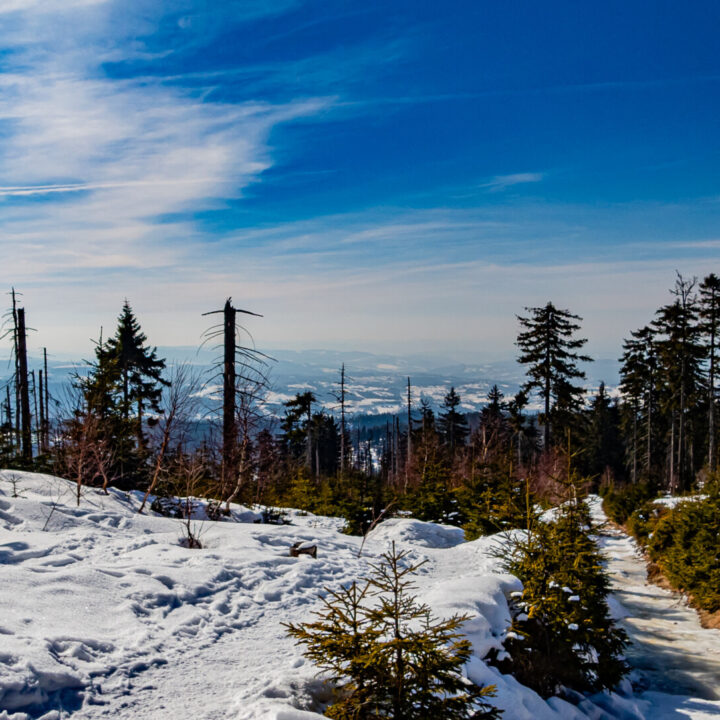 Poza tym szlak był bardzo przyjemny i nie specjalnie dał mi w kość – choć zegarek pokazał ponad 4500 kcal. Ruch był znikomy dzięki wczesnej porze. Na Baranią dotarłem w niecałe dwie godziny (gdyby nie lodowe przeszkody – byłoby znacznie szybciej). Choć niebo było czyste, Tatry majaczyły na horyzoncie ledwo widoczne z wieży widokowej.