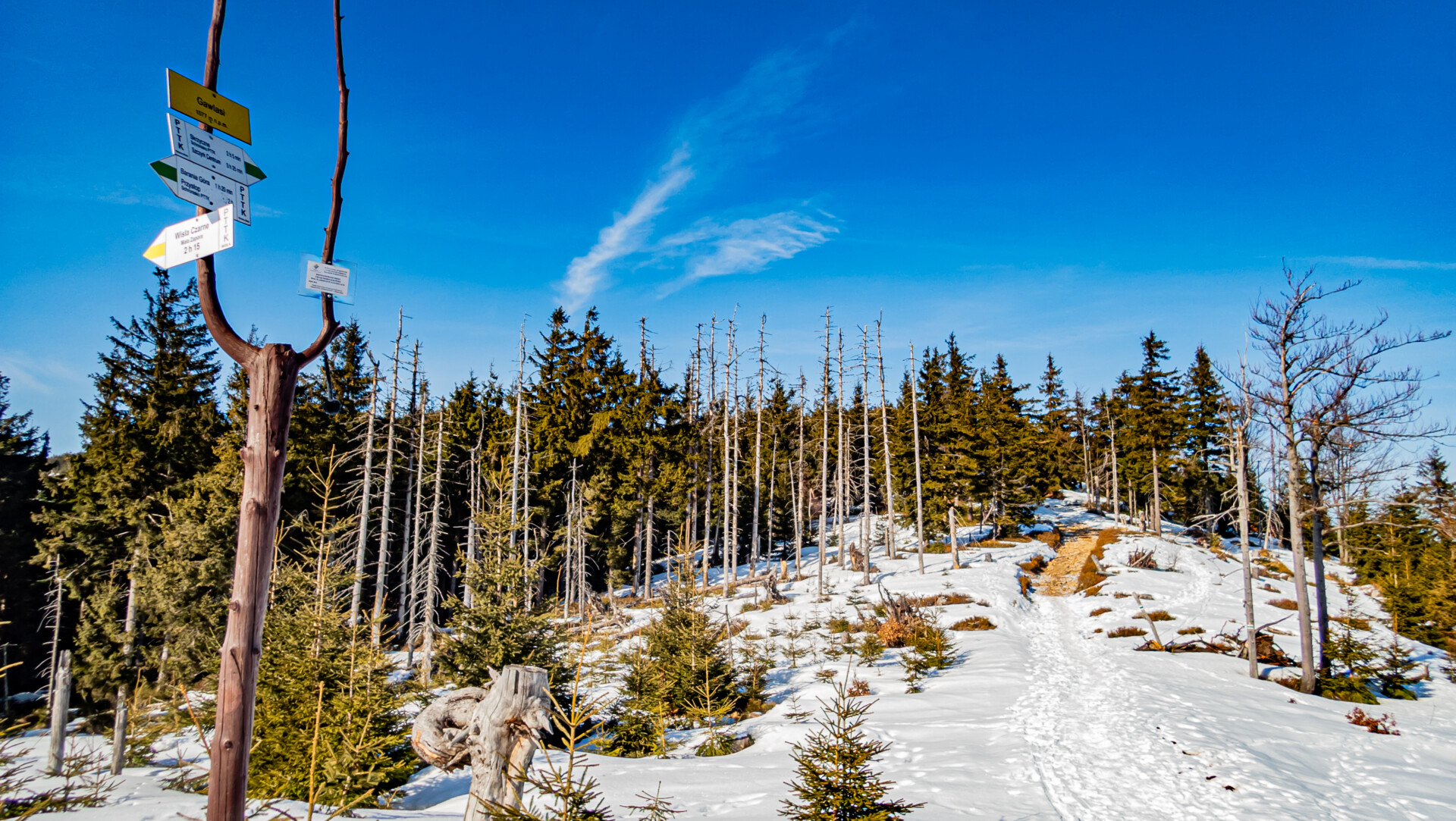 🧭 Orientacja – Szlaki oznaczone dobrze, ale zimą niektóre odcinki bywają trudne do zlokalizowania (np. Zielony Kopiec, boczne obejścia oblodzonych fragmentów). Zalecana nawigacja GPS lub aplikacja turystyczna. Trasa możliwa do skrócenia, ale wersja z pełną pętlą oferuje najwięcej walorów widokowych i turystycznych.