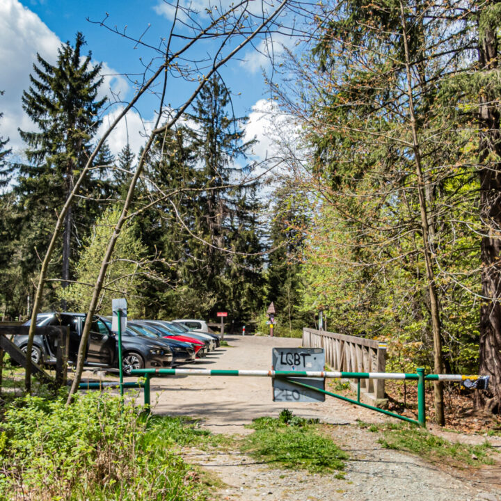 📍 Start i parking – Trasa rozpoczyna się na Lisiej Przełęczy (ok. 790 m n.p.m.), przy niewielkim, darmowym leśnym parkingu. W sezonie dostępność miejsc ograniczona – warto przyjechać wcześnie lub zaplanować trasę poza godzinami szczytu. Parking znajduje się bezpośrednio przy żółtym szlaku.