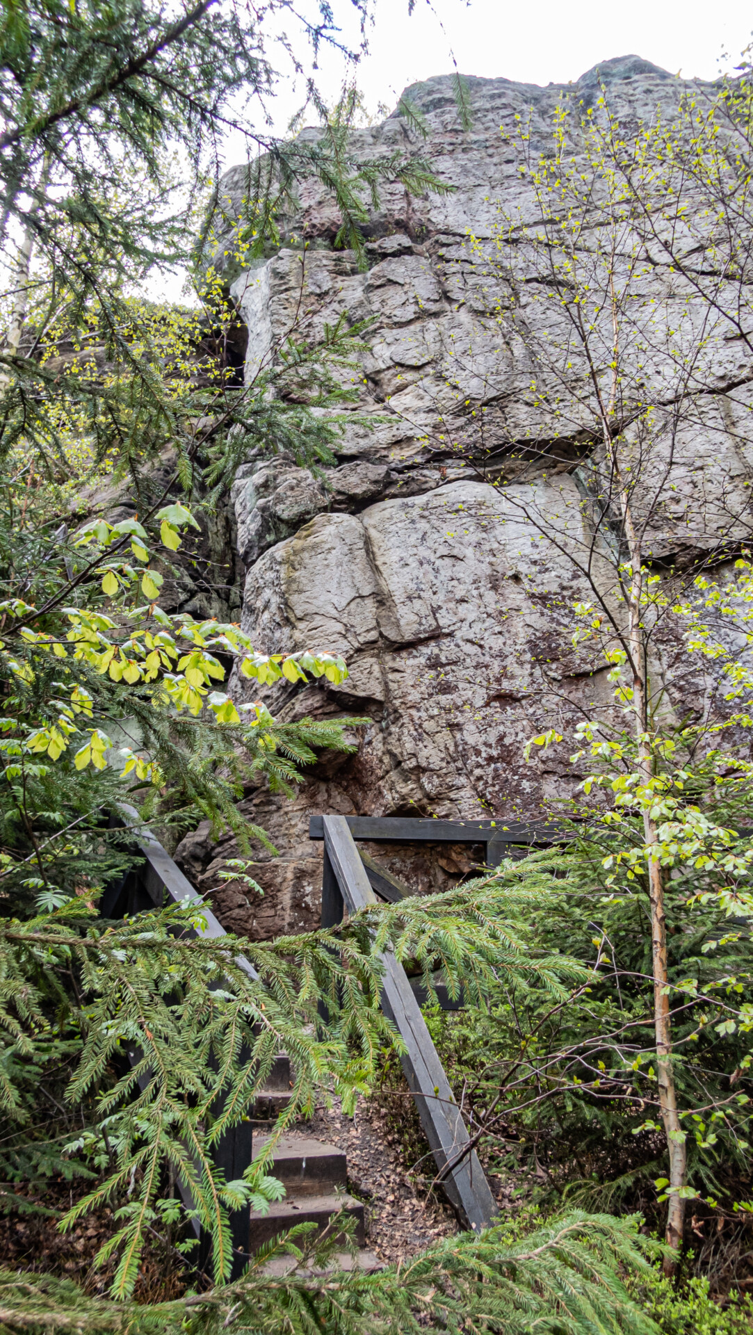 🔹 Schody prowadzące do niektórych formacji skalnych (np. Wisząca Skała) są strome i mogą być niewygodne przy zejściu.