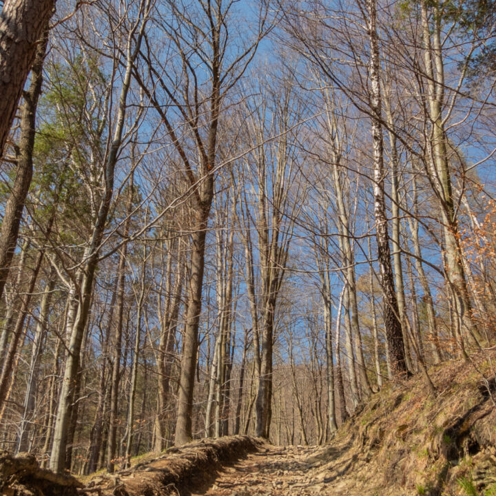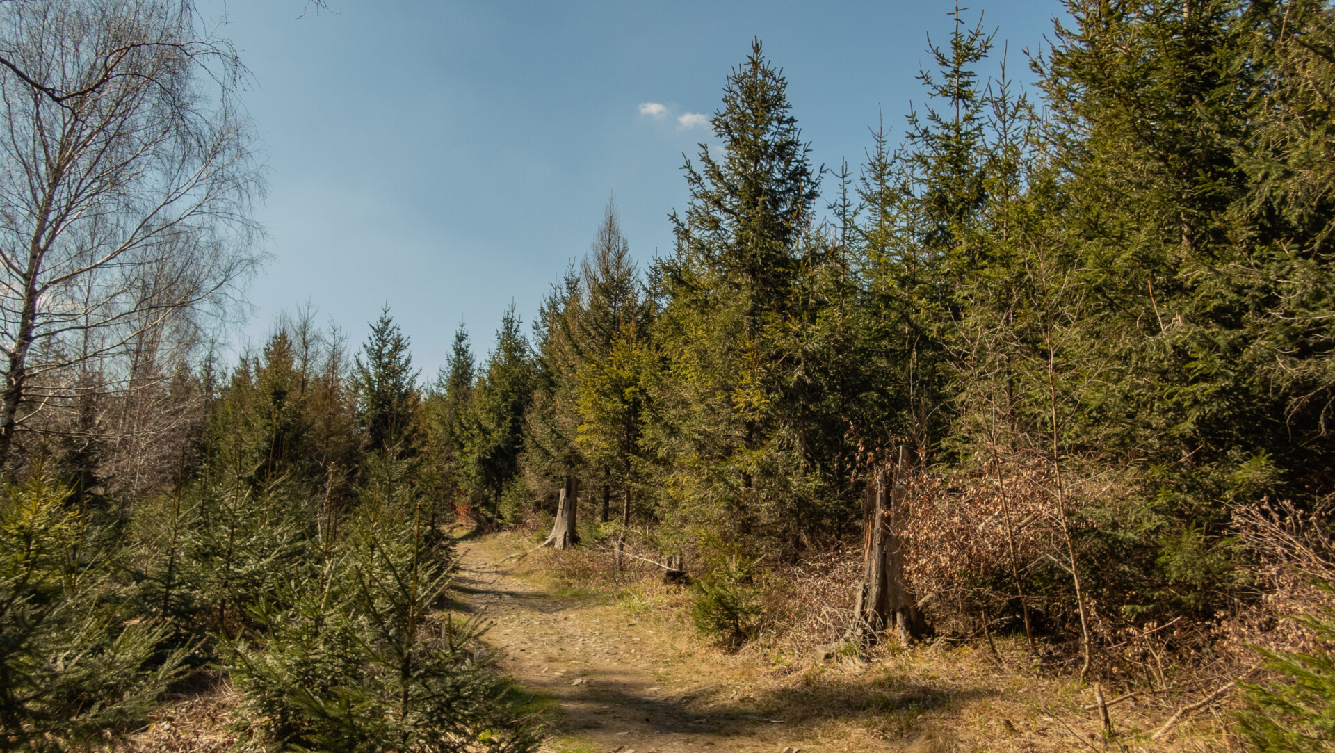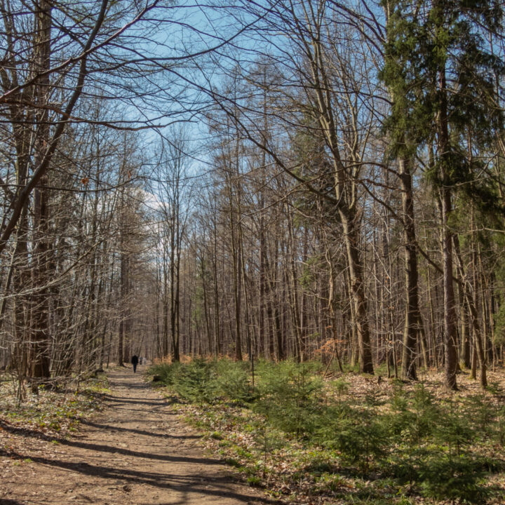🔹 Ekspozycja: brak. Trasa prowadzi wygodnymi ścieżkami bez urwisk, stromych stoków czy odsłoniętych grani. Całość przebiega przez lasy, polany i szerokie dukty – nie występują żadne elementy mogące wywołać lęk wysokości.