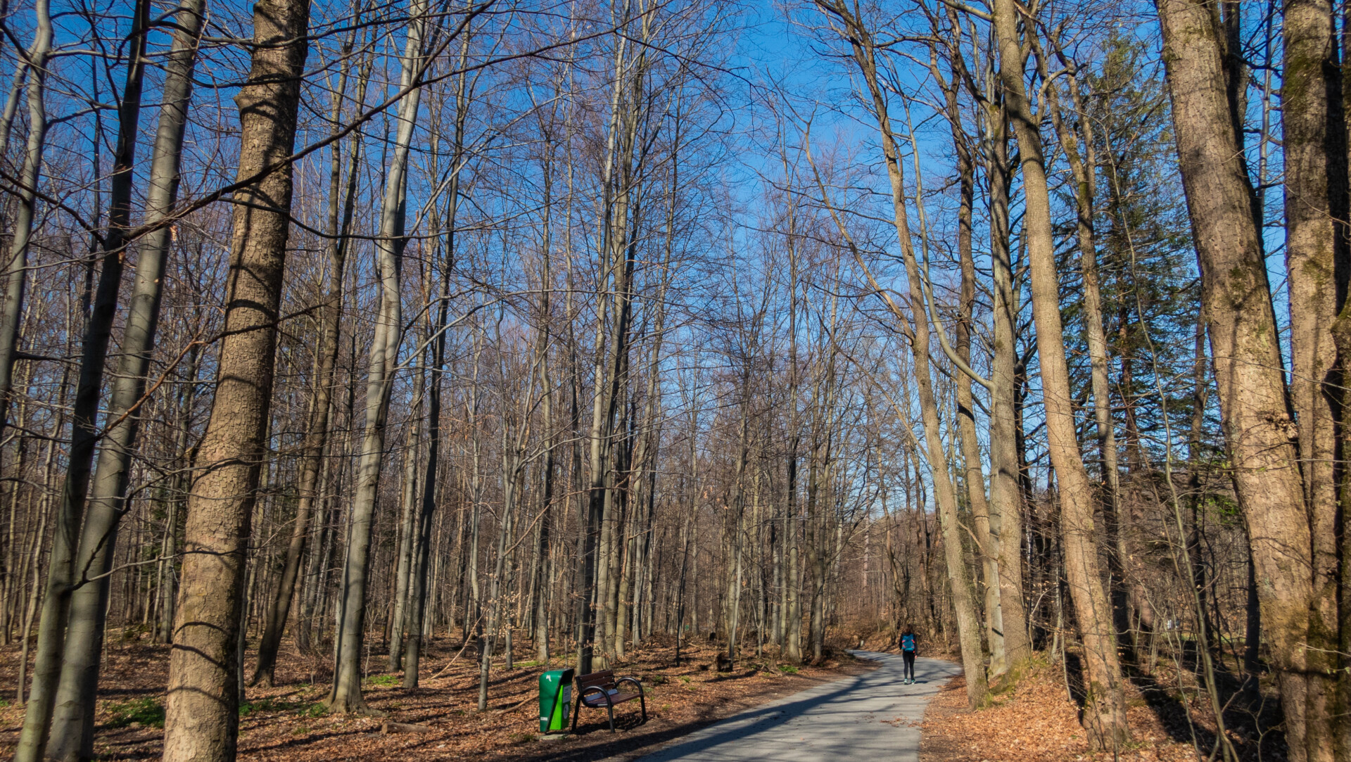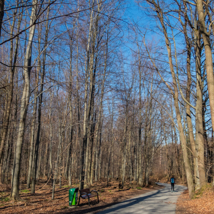 Od tego miejsca znów szedłem jak po parku – tym razem asfaltową ścieżką. Rodziny z dziećmi, wózki, psy, seniorzy na ławeczkach… i od czasu do czasu piechurzy w górskim ekwipunku – trochę jak kosmonauci w centrum miasta.