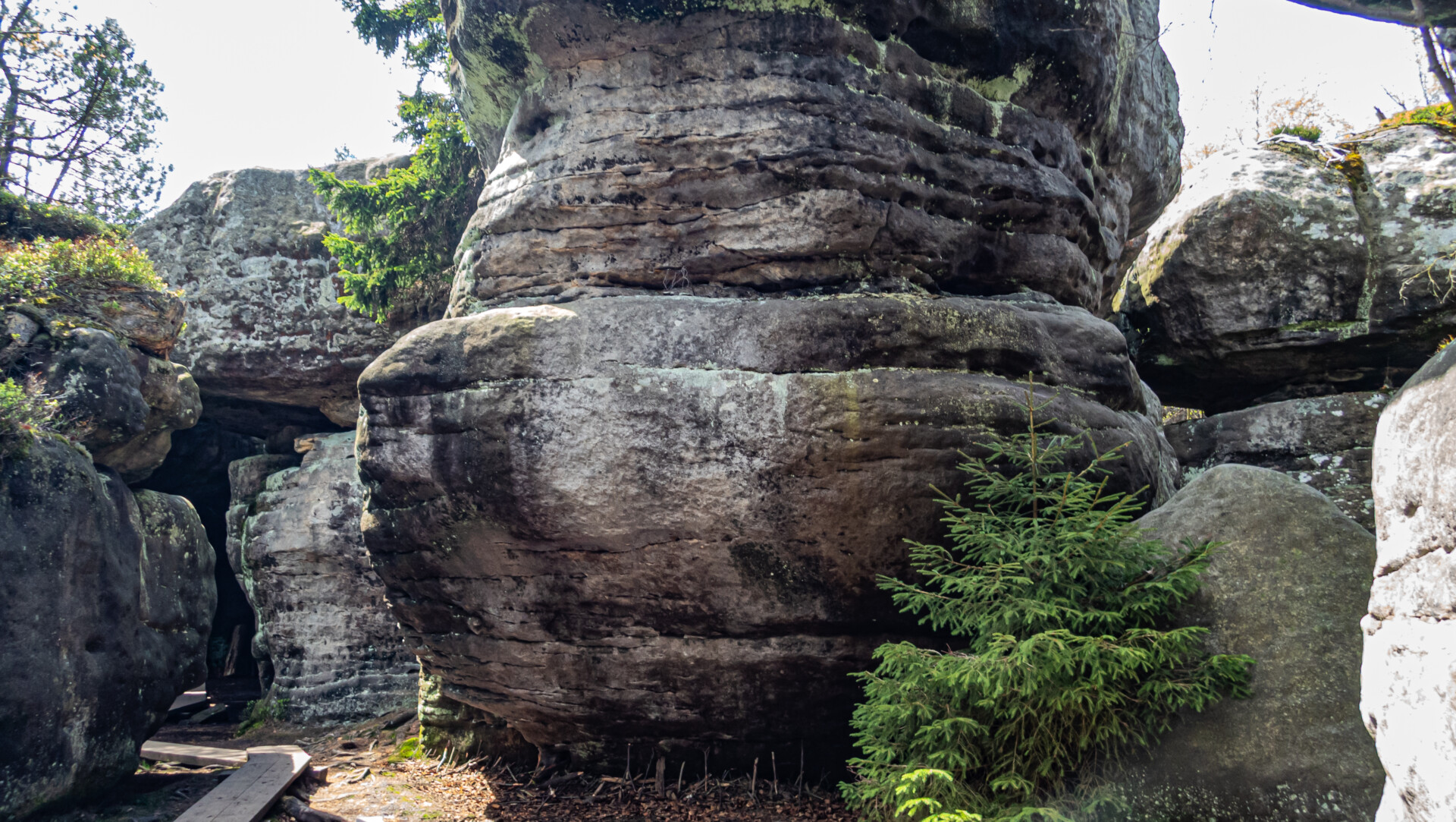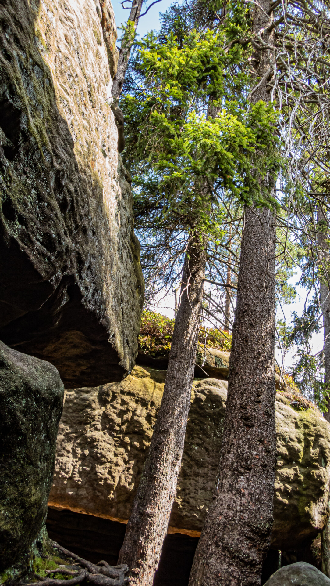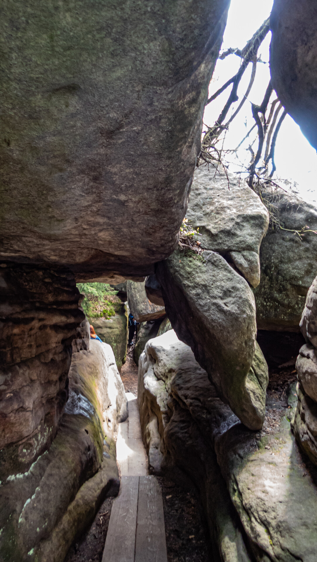Błędne Skały są całkowicie bezpieczne dla osób z lękiem wysokości – ekspozycji brak, a spacer przypomina raczej przejście przez naturalny park przygody niż trasę górską. Jedyne możliwe źródło dyskomfortu to tłok lub konieczność przeciskania się – ale bez żadnego zagrożenia wysokościowego.