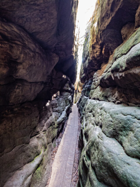 Z górnego parkingu do kasy biletowej prowadzi wygodna ścieżka – częściowo po drewnianych pomostach. Pokonaliśmy ją w pięć minut. Po opłaceniu wstępu ruszyliśmy w głąb skalnego labiryntu.