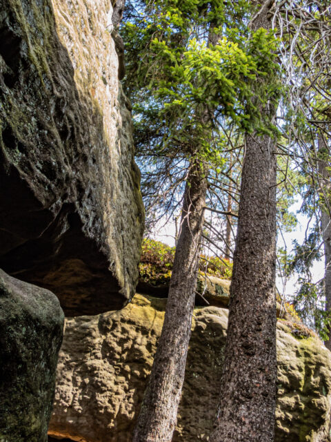Podobnie jak ze Szczelińcem Wielkim, Błędne Skały odwiedziłem już jako dziecko w latach 80. – pamiętałem je mgliście, ale dobrze, że zrobiły wtedy na mnie duże wrażenie. Później wróciłem tu z własnymi dziećmi, a teraz – po raz trzeci – zaplanowaliśmy wizytę w trzy osoby, w ramach tegorocznej majówki. Skoro byliśmy już tak blisko, nie mogło zabraknąć tej atrakcji Gór Stołowych. Dojazd z naszej bazy zajął zaledwie 20 minut.