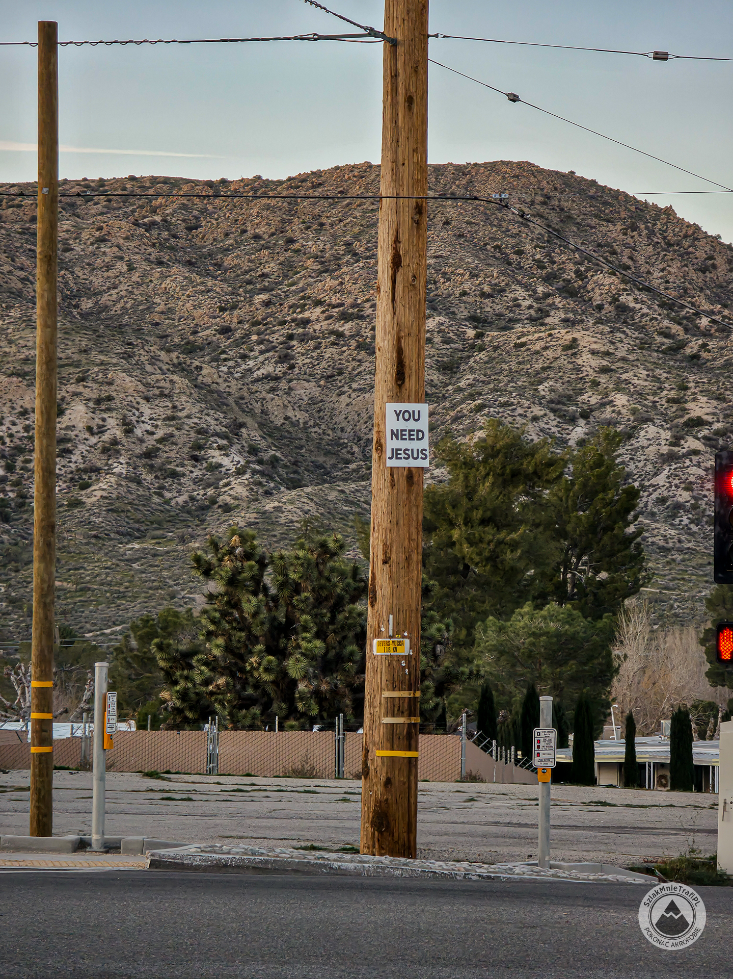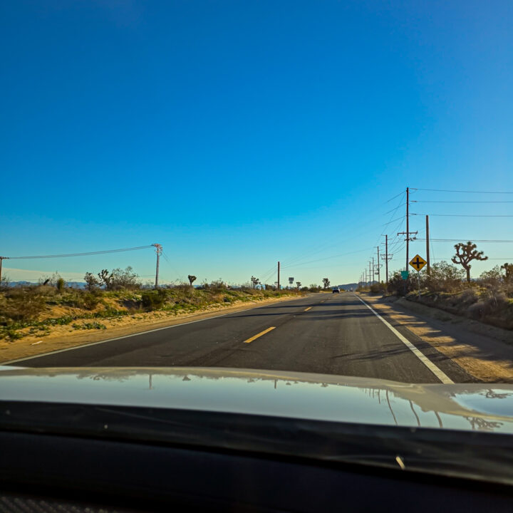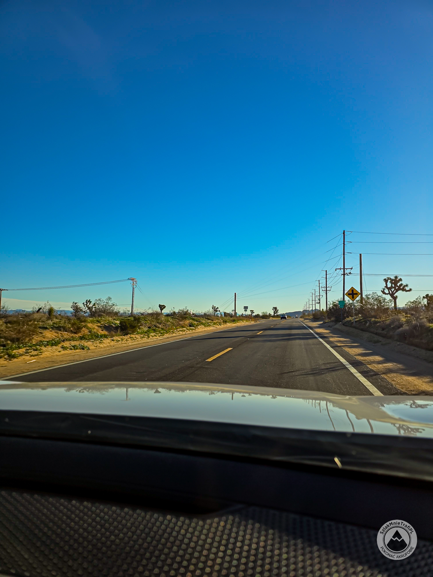 Dopiero w drodze powrotnej dotarło do mnie, jak wysoko byliśmy. Keys View leży na wysokości blisko 1600 metrów n.p.m., podczas gdy Yucca Valley znajduje się około 600 metrów niżej. Cały zjazd odbywał się praktycznie w dół — samochód niemal sam się toczył. Jadąc wcześniej przez pustynię, kompletnie nie miałem świadomości tej różnicy.