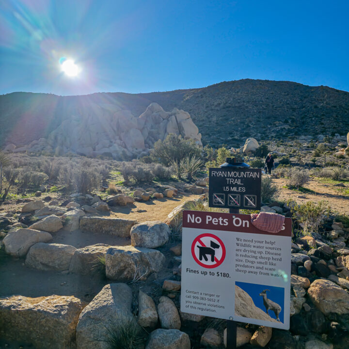 Oficjalny, popularny, krótki i prosty szlak prowadzi natomiast na Mount Ryan (1663 m n.p.m.) i to właśnie ten szczyt obrałem jako pierwszy punkt wizyty w Joshua Tree. Leży mniej więcej w centrum zachodniej części parku, którą byłem najbardziej zainteresowany. Dojazd na parking przy Ryan Mountain pozwalał mi też realnie „wyczuć” park: ocenić odległości, czas przejazdów, prędkość poruszania się samochodem, infrastrukturę i zasady parkowania. Krótko mówiąc – wejść w rytm.