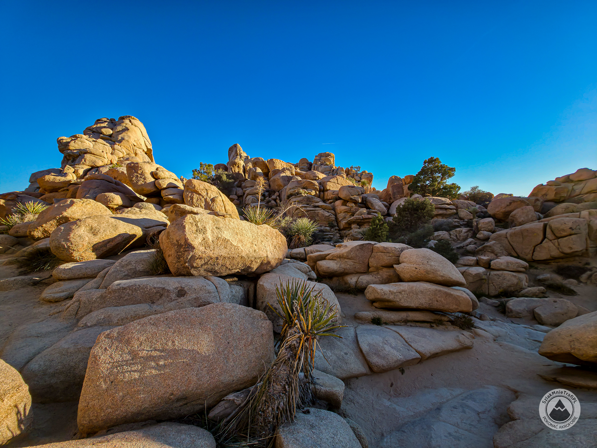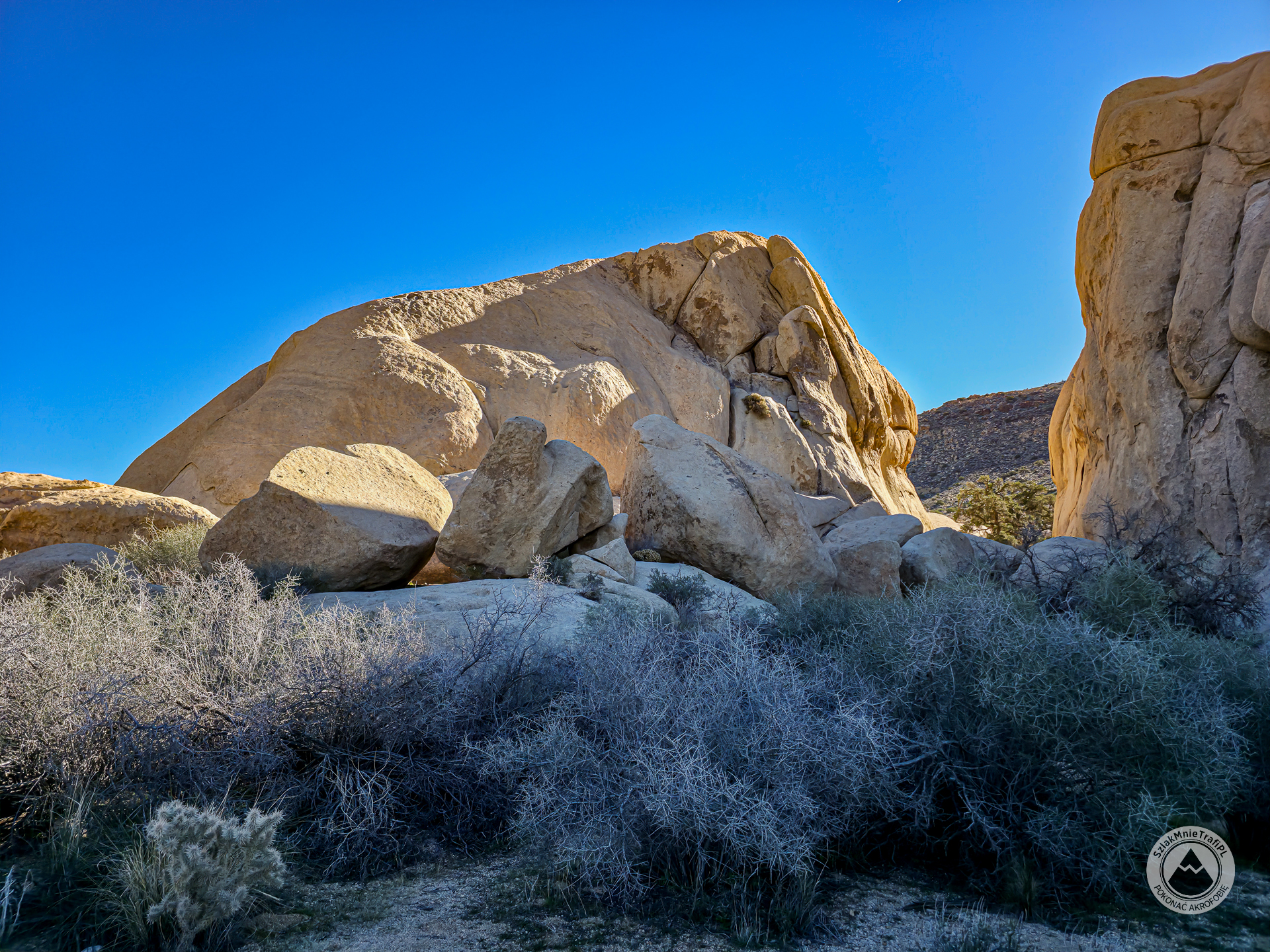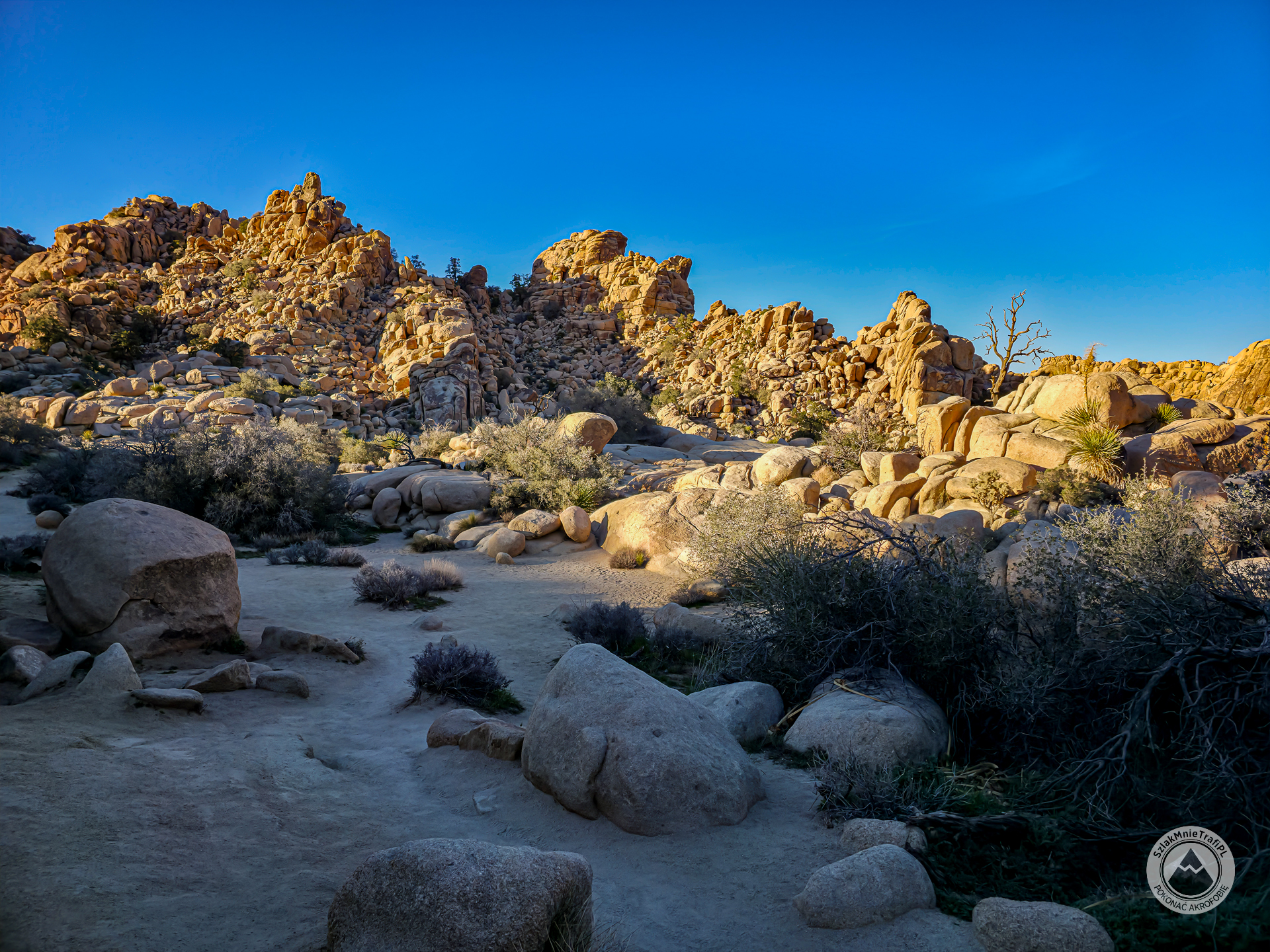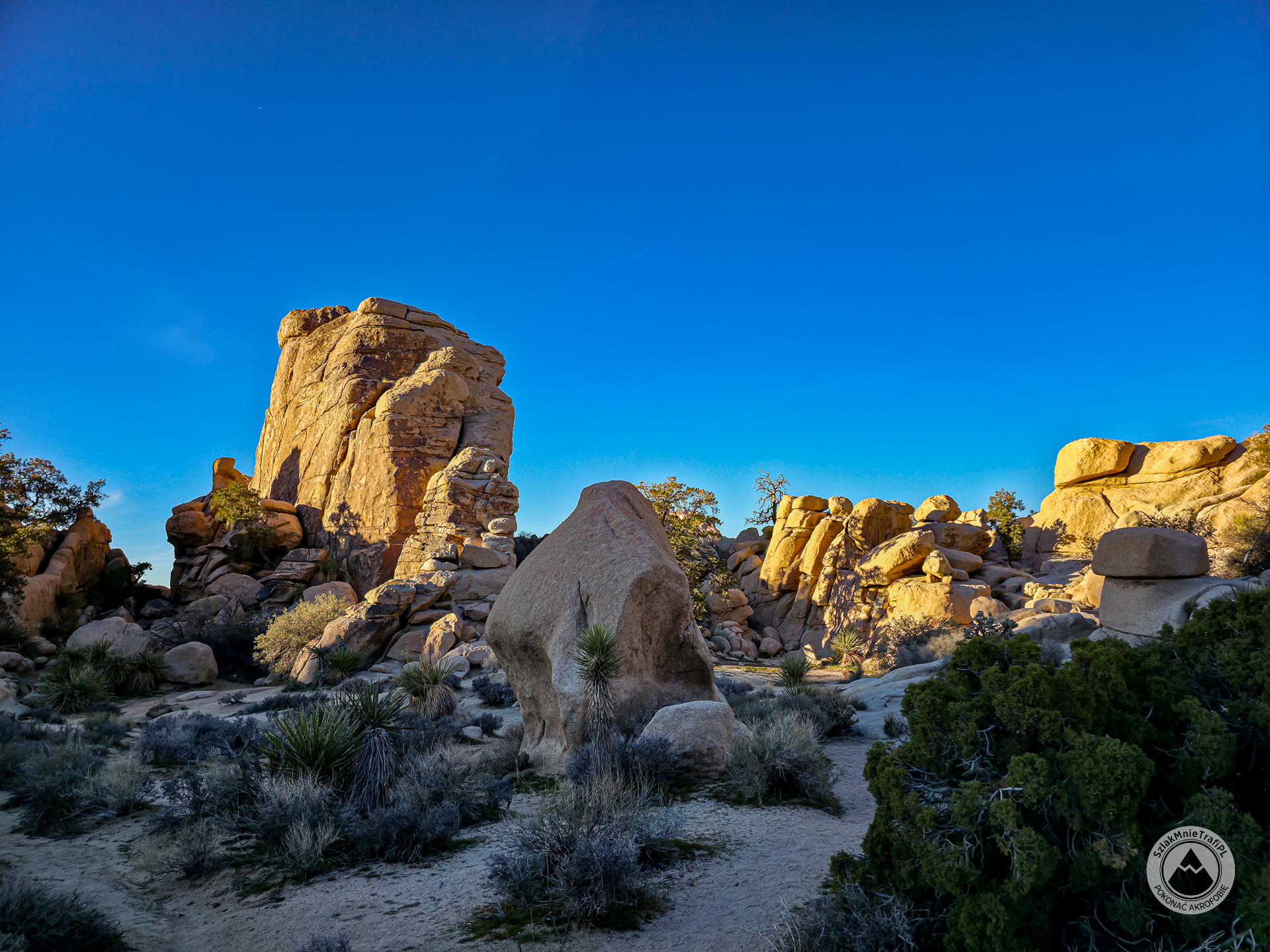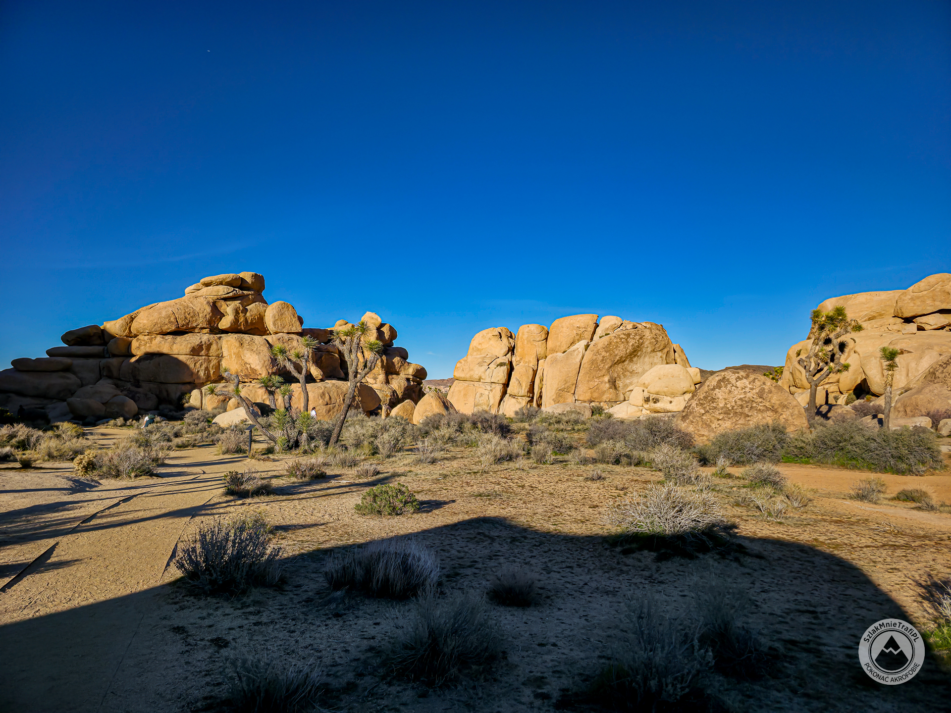 Wtedy nie znałem żadnych nazw tutejszych skał ani ścian wspinaczkowych. Hidden Valley była dla mnie po prostu kolejnym świetnym fragmentem Joshua Tree — miejscem, które nie potrzebuje etykiet, by robić wrażenie. Spacer zajął mi niecałe 40 minut i zapisał się w pamięci bardziej atmosferą niż konkretnymi punktami.