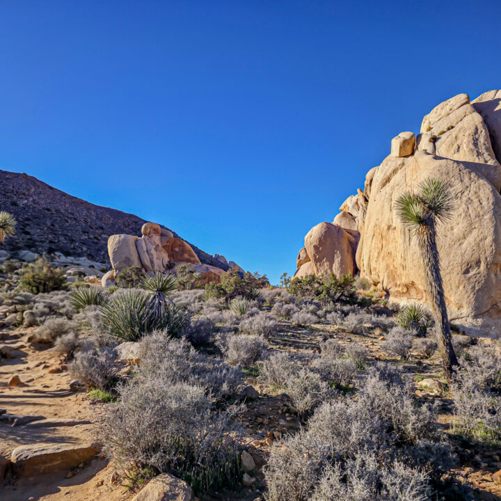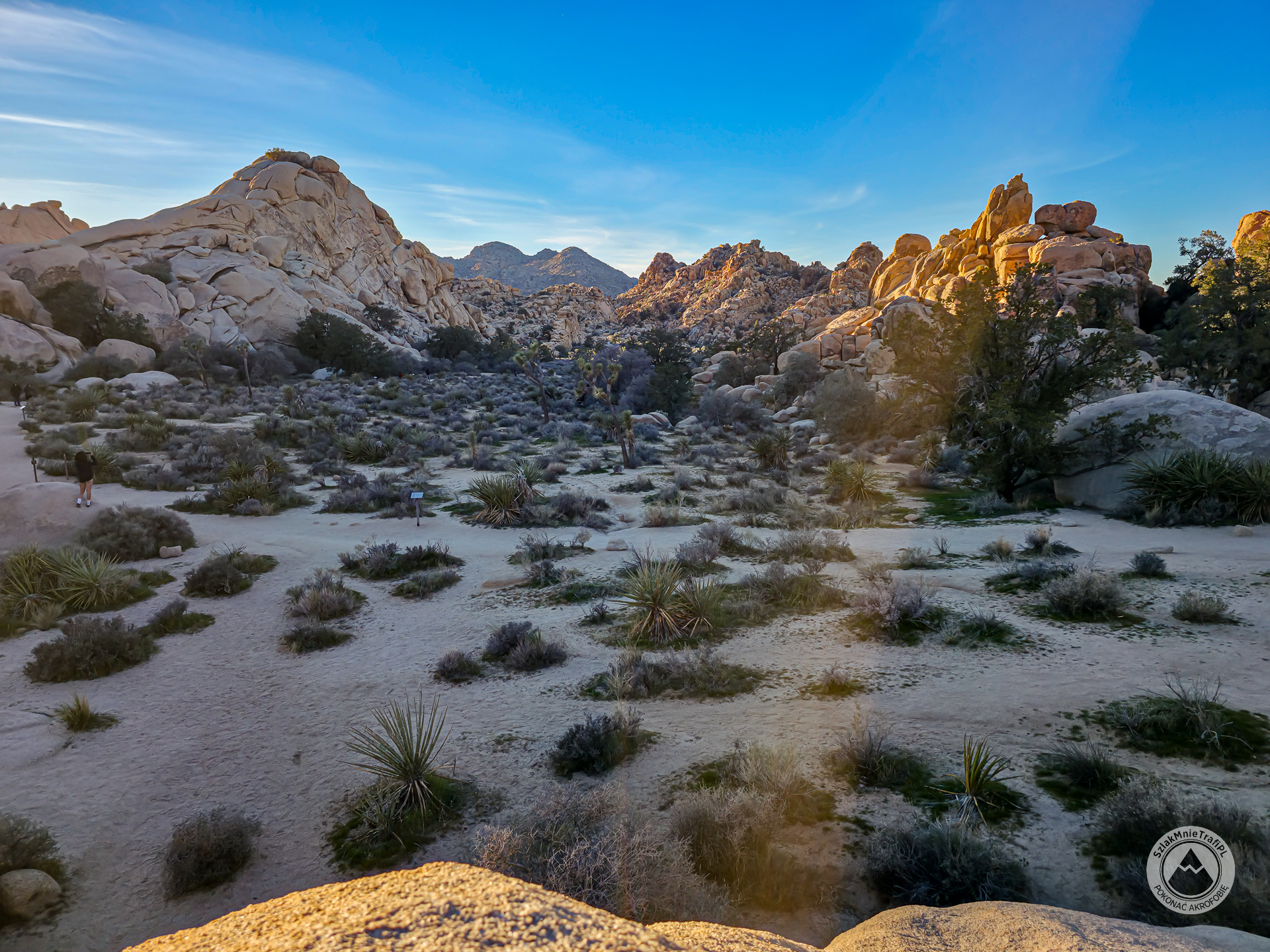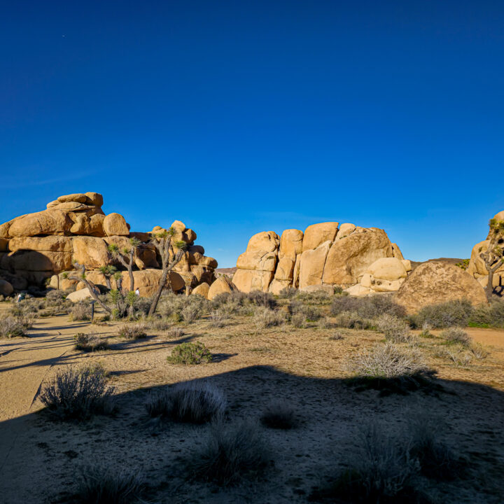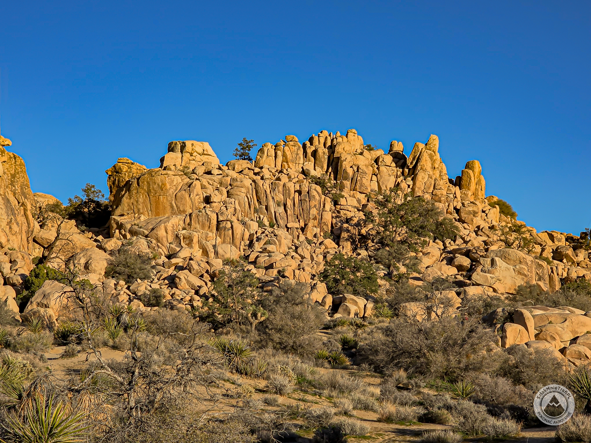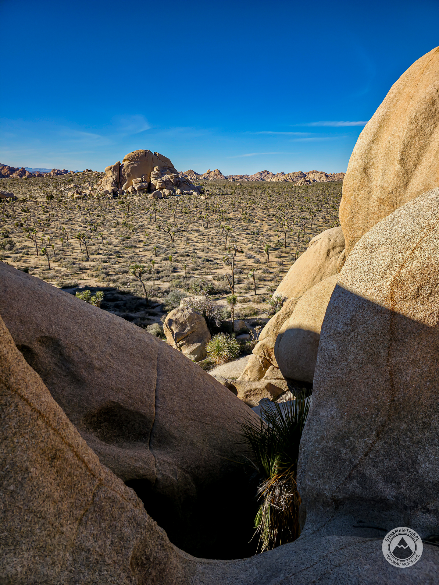 Wtedy nie znałem żadnych nazw tutejszych skał ani ścian wspinaczkowych. Hidden Valley była dla mnie po prostu kolejnym świetnym fragmentem Joshua Tree — miejscem, które nie potrzebuje etykiet, by robić wrażenie. Spacer zajął mi niecałe 40 minut i zapisał się w pamięci bardziej atmosferą niż konkretnymi punktami.