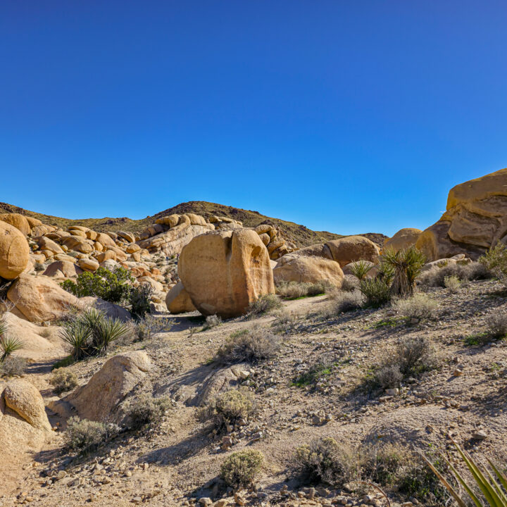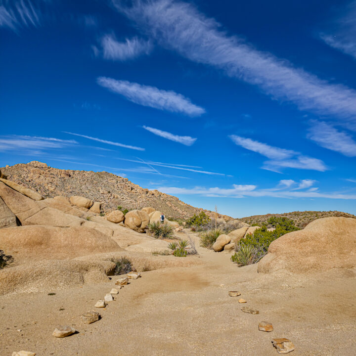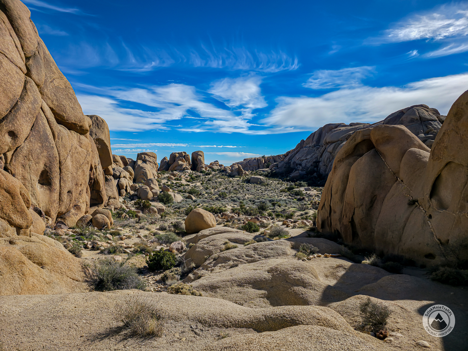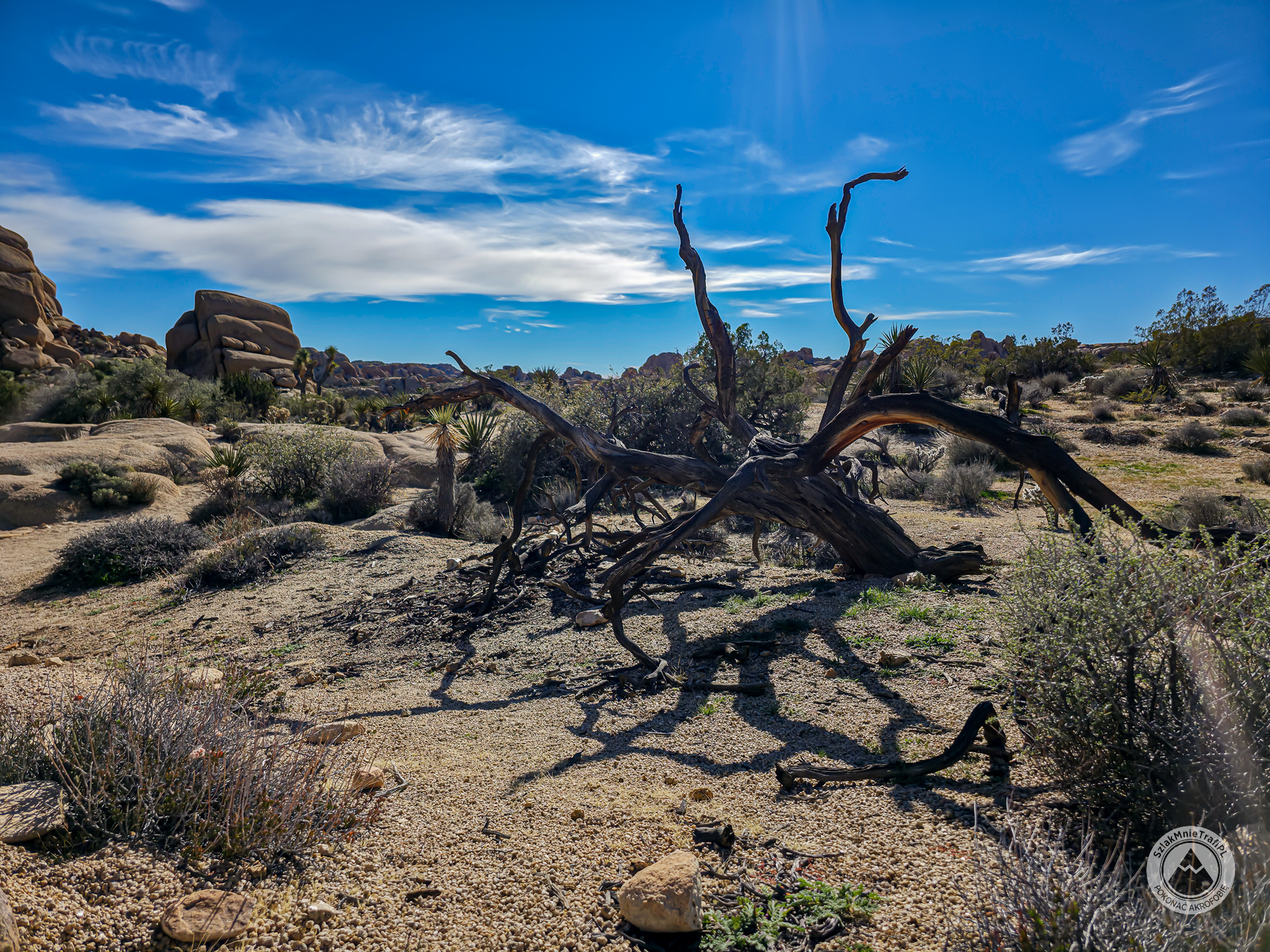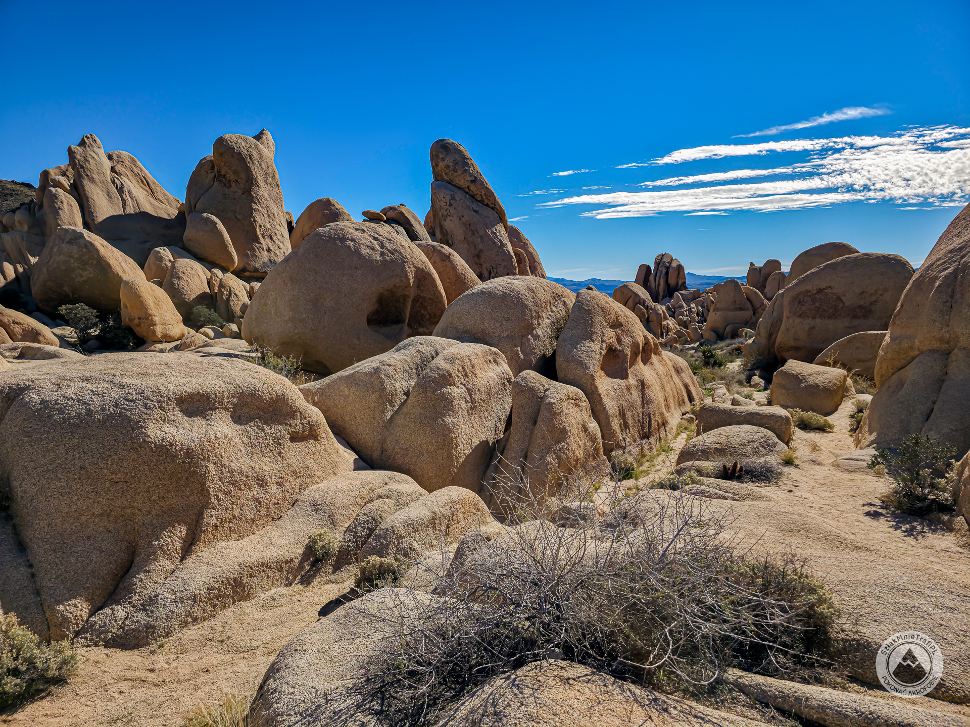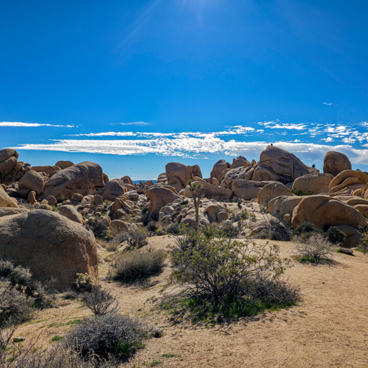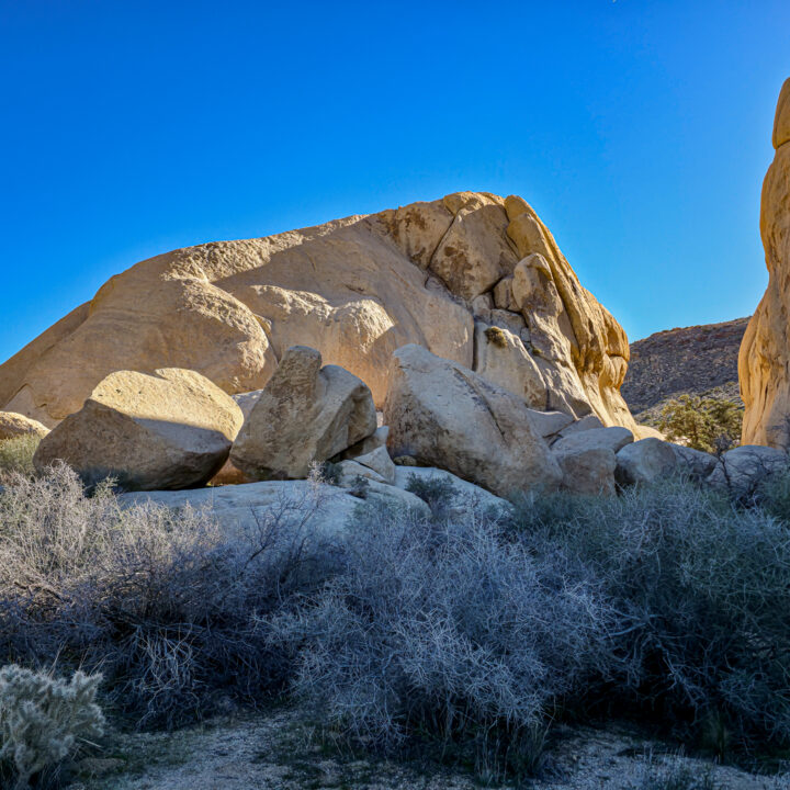 Wtedy nie znałem żadnych nazw tutejszych skał ani ścian wspinaczkowych. Hidden Valley była dla mnie po prostu kolejnym świetnym fragmentem Joshua Tree — miejscem, które nie potrzebuje etykiet, by robić wrażenie. Spacer zajął mi niecałe 40 minut i zapisał się w pamięci bardziej atmosferą niż konkretnymi punktami.