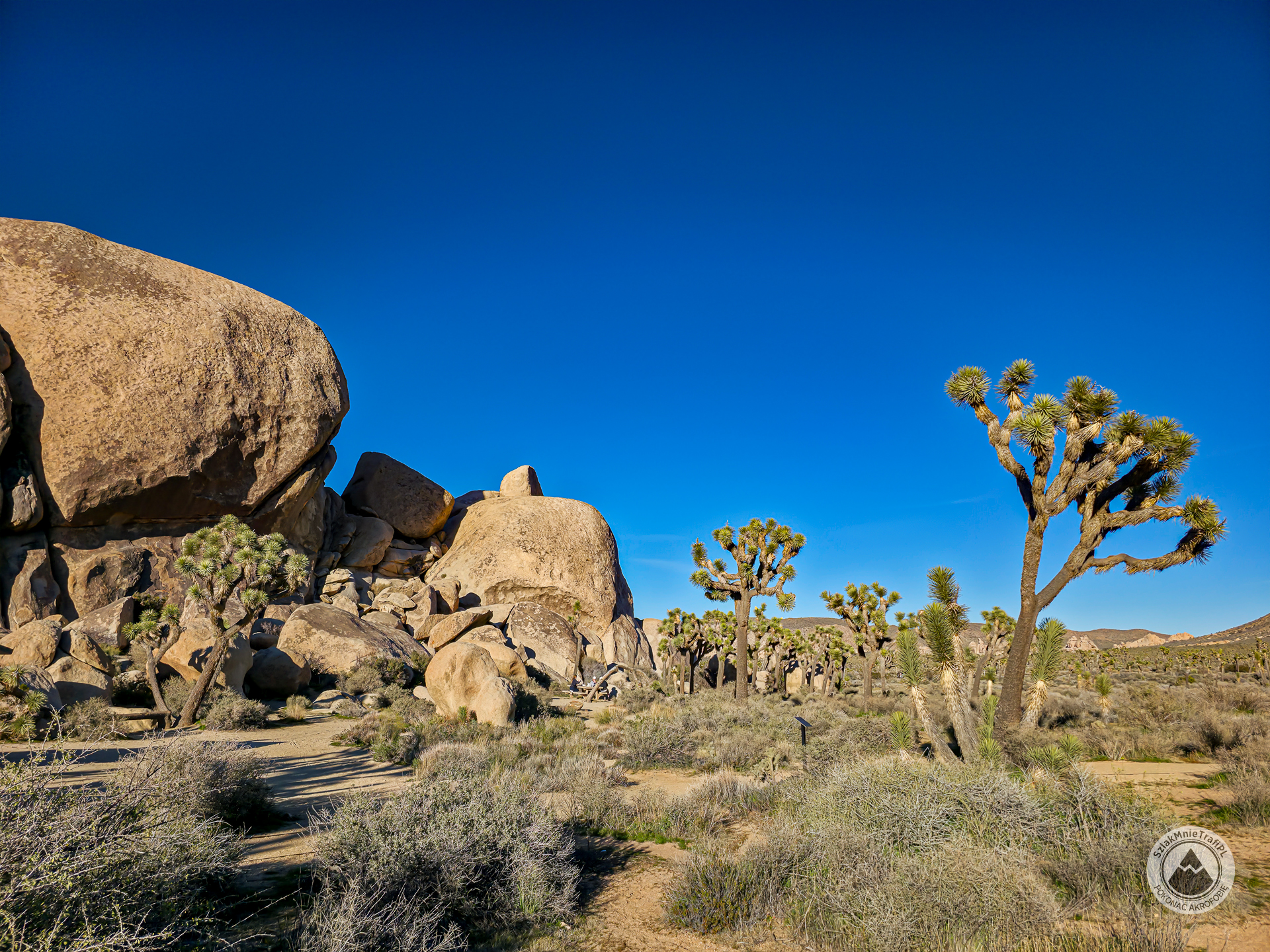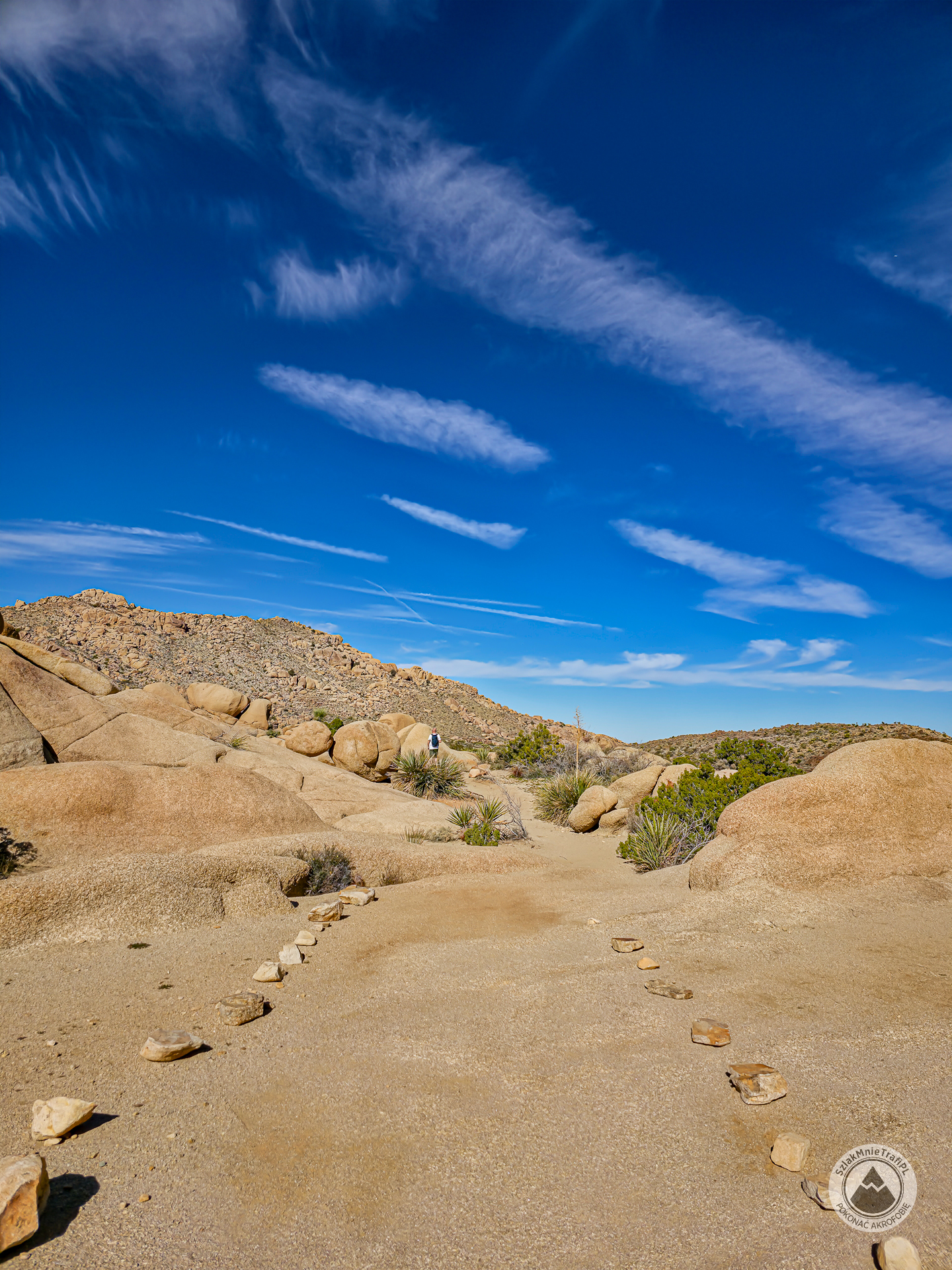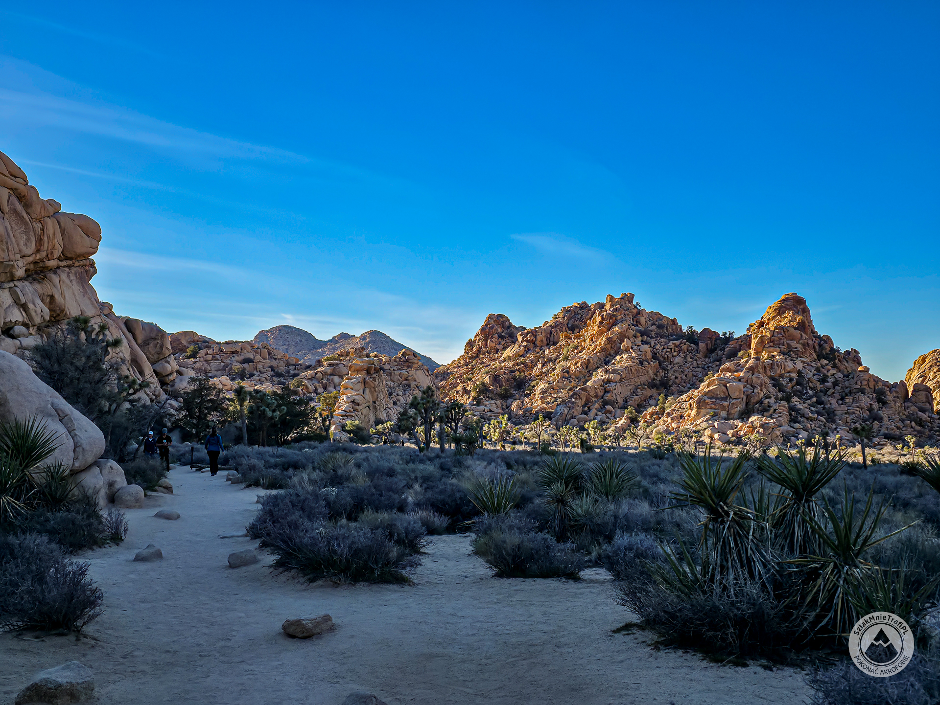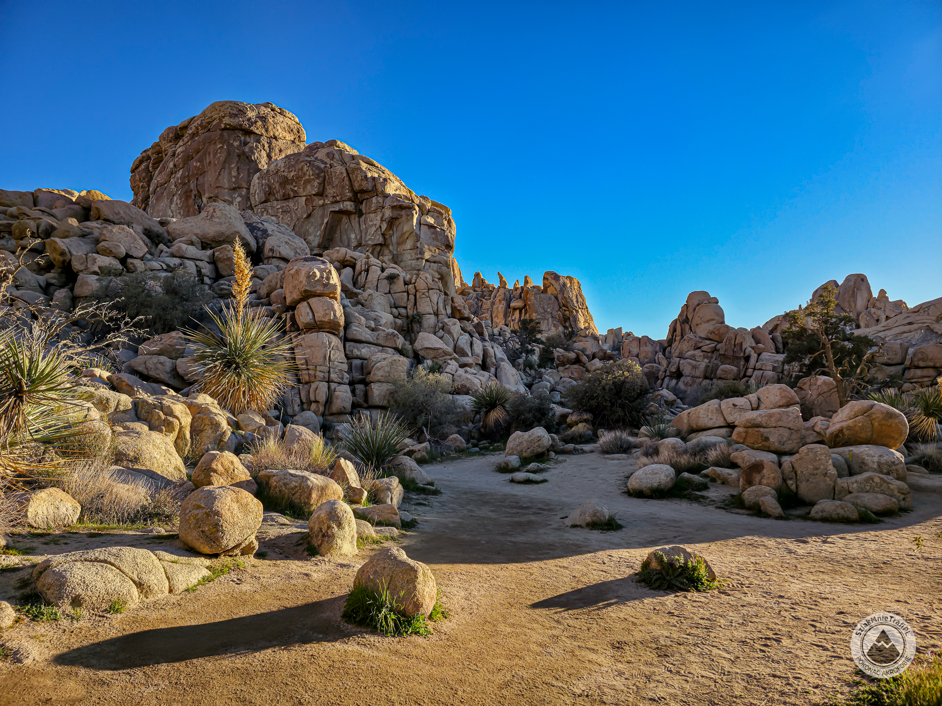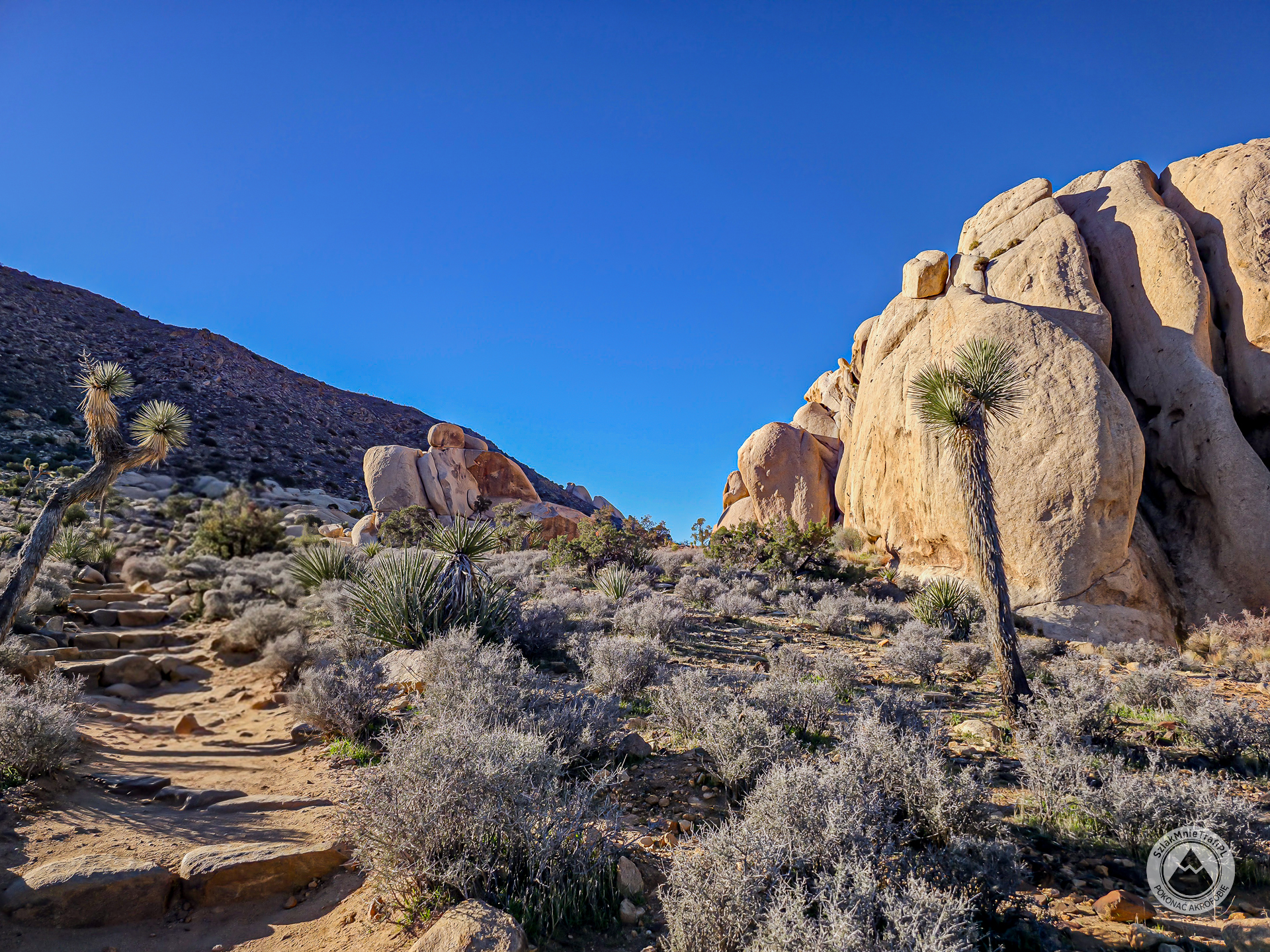 🚶♂️ Joshua Tree jest jednym z nielicznych parków narodowych w USA, które oficjalnie dopuszczają tzw. cross-country travel – można zejść ze szlaku, obejść formacje skalne, podejść pod nie, a nawet na nie wejść. Należy jednak przestrzegać lokalnych znaków i informacji na nich zawartych (np. na części szlaku Split Rock Loop obowiązywał zakaz schodzenia poza wyznaczoną ścieżkę). Kilka szlaków oznaczone na mapie literą B wymagają specjalnego zezwolenia, ale tylko dla osób poruszających się z po parku po zmroku z plecakiem z opcją obozowania w wyznaczonych miejscach. Dla tzw. dziennych turystów takie pozwolenia nie są potrzebne.