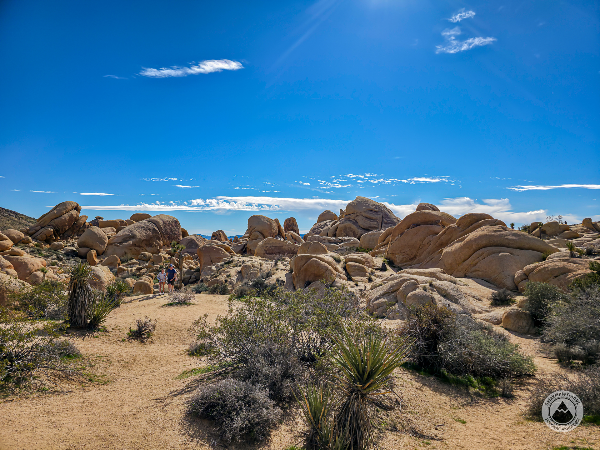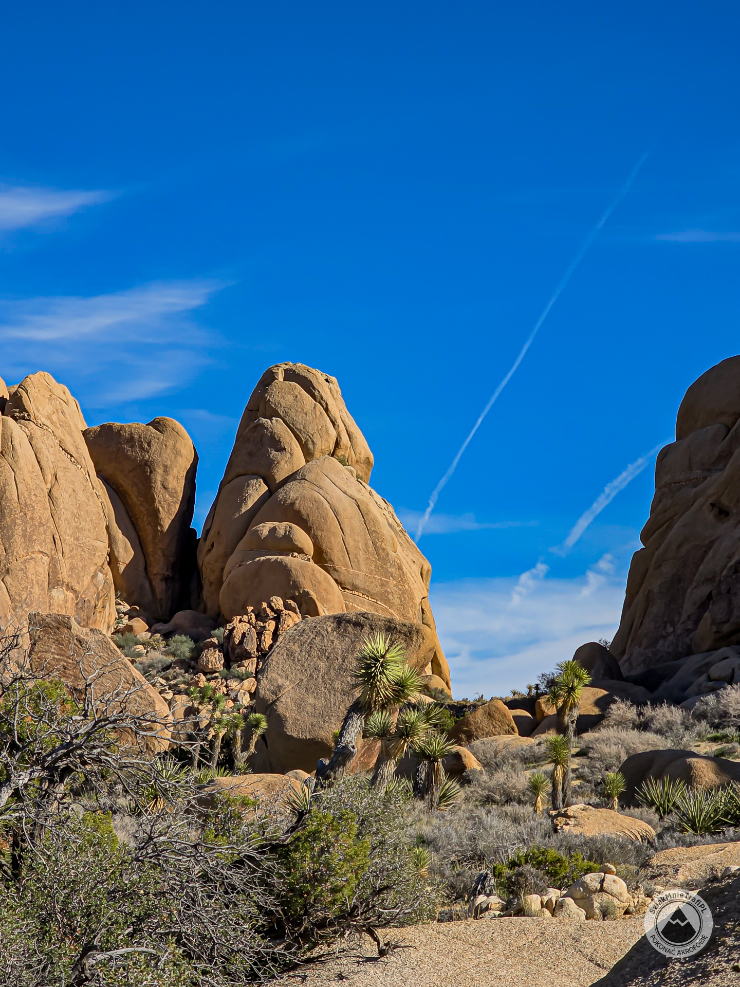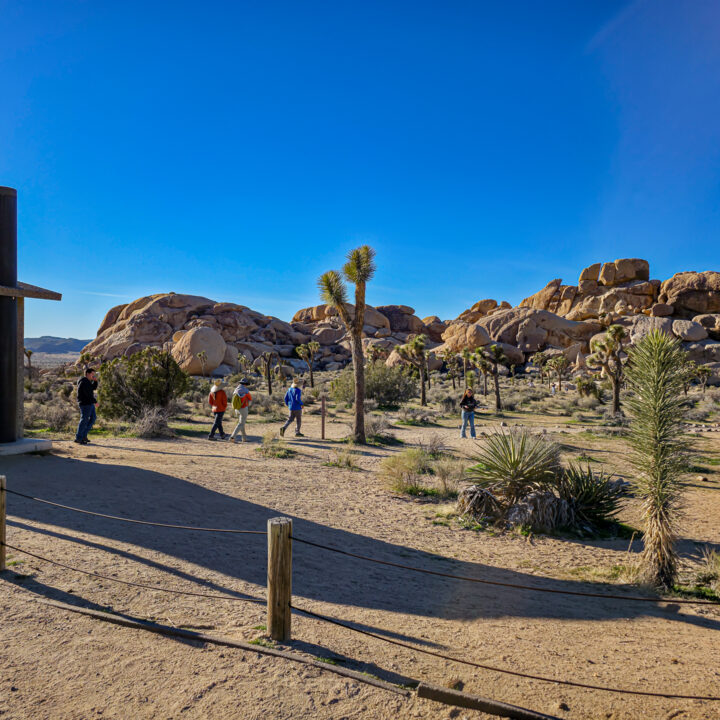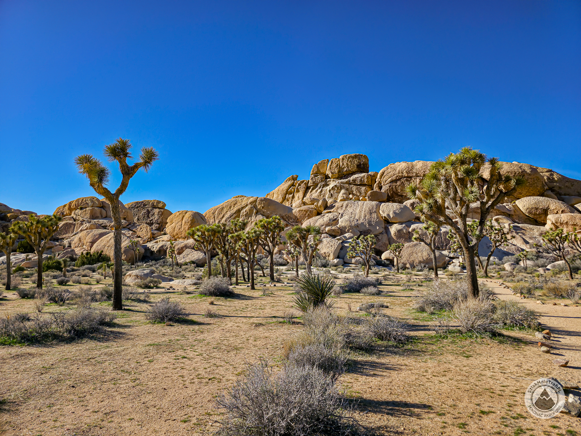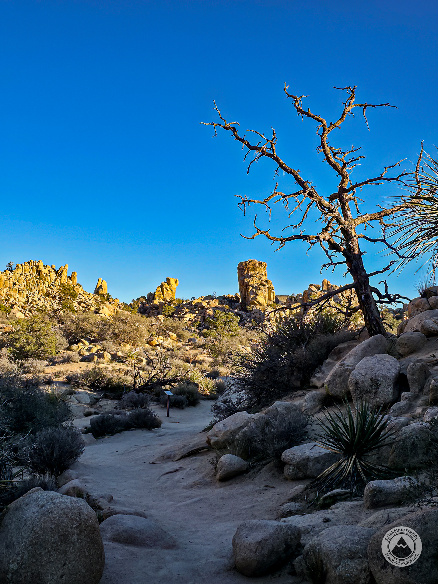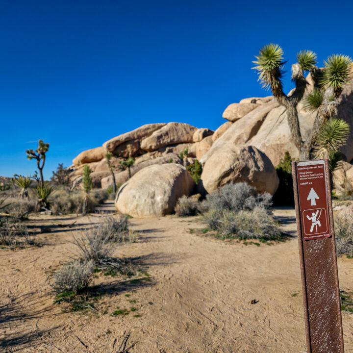 🚶♂️ Joshua Tree jest jednym z nielicznych parków narodowych w USA, które oficjalnie dopuszczają tzw. cross-country travel – można zejść ze szlaku, obejść formacje skalne, podejść pod nie, a nawet na nie wejść. Należy jednak przestrzegać lokalnych znaków i informacji na nich zawartych (np. na części szlaku Split Rock Loop obowiązywał zakaz schodzenia poza wyznaczoną ścieżkę). Kilka szlaków oznaczone na mapie literą B wymagają specjalnego zezwolenia, ale tylko dla osób poruszających się z po parku po zmroku z plecakiem z opcją obozowania w wyznaczonych miejscach. Dla tzw. dziennych turystów takie pozwolenia nie są potrzebne.