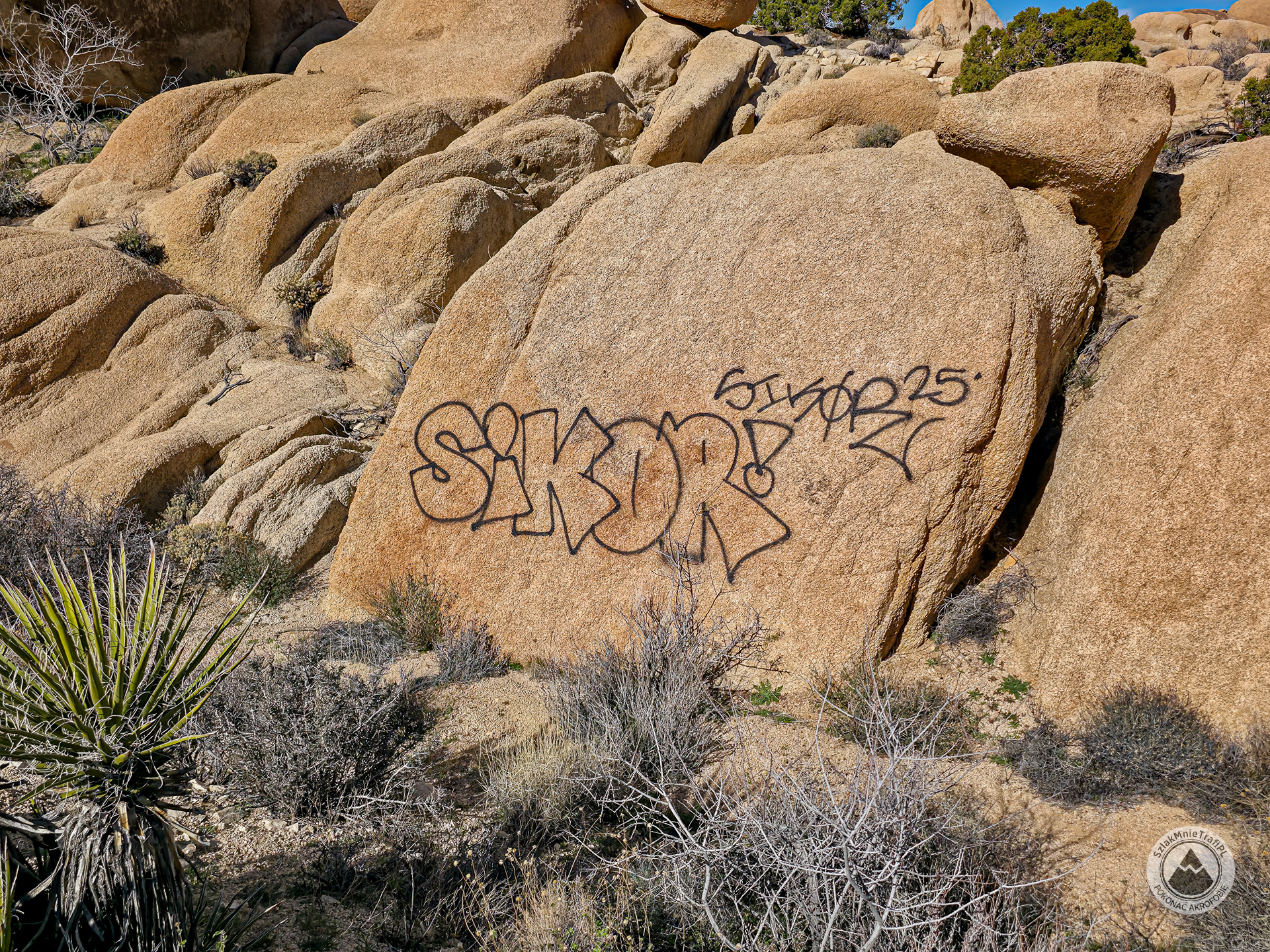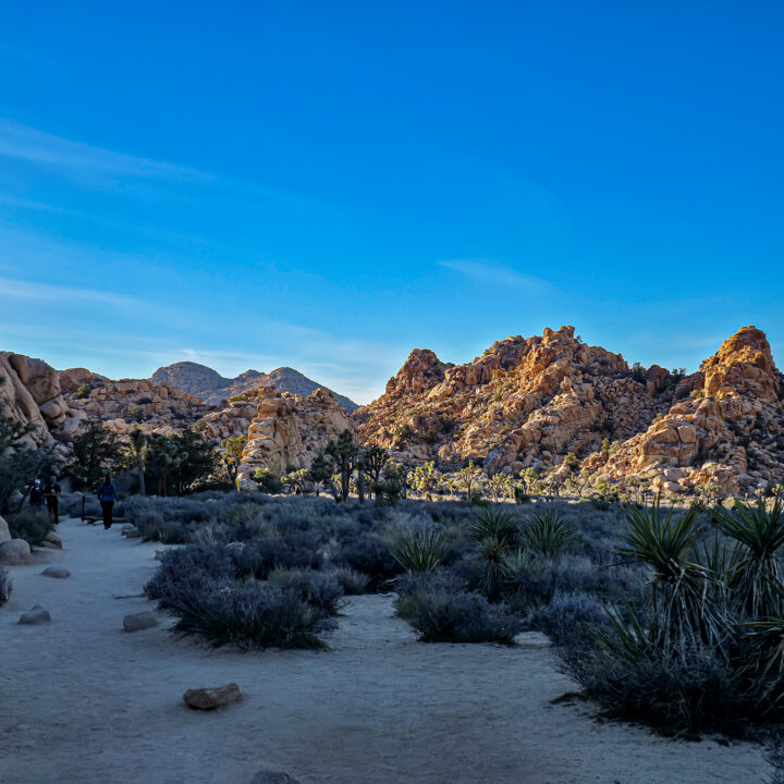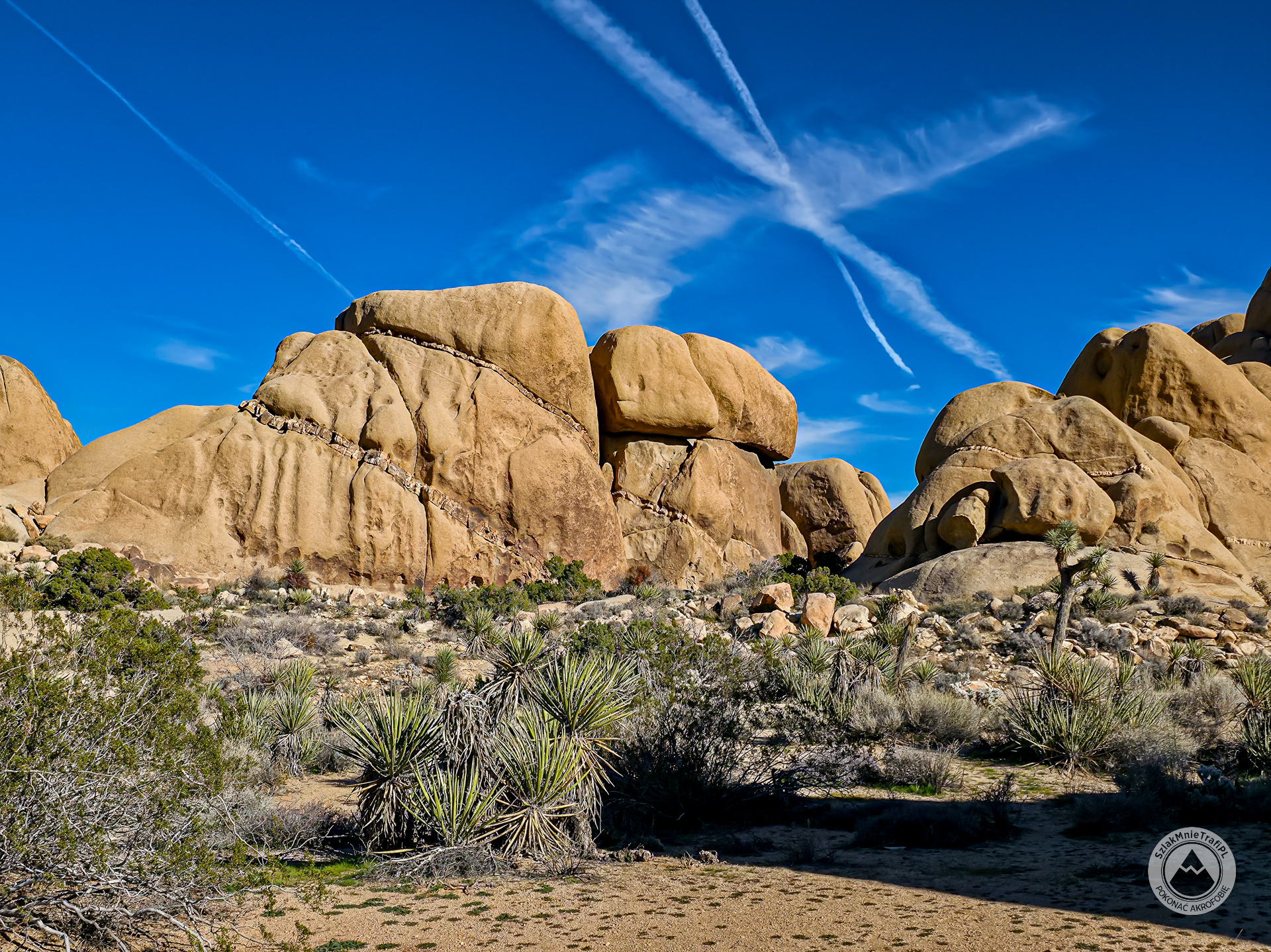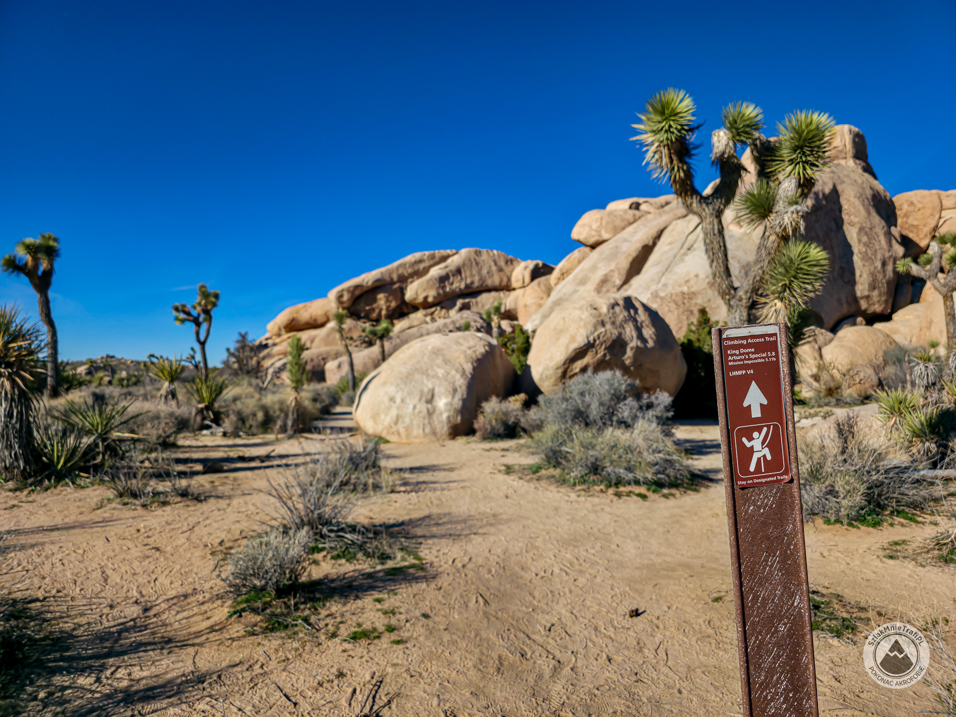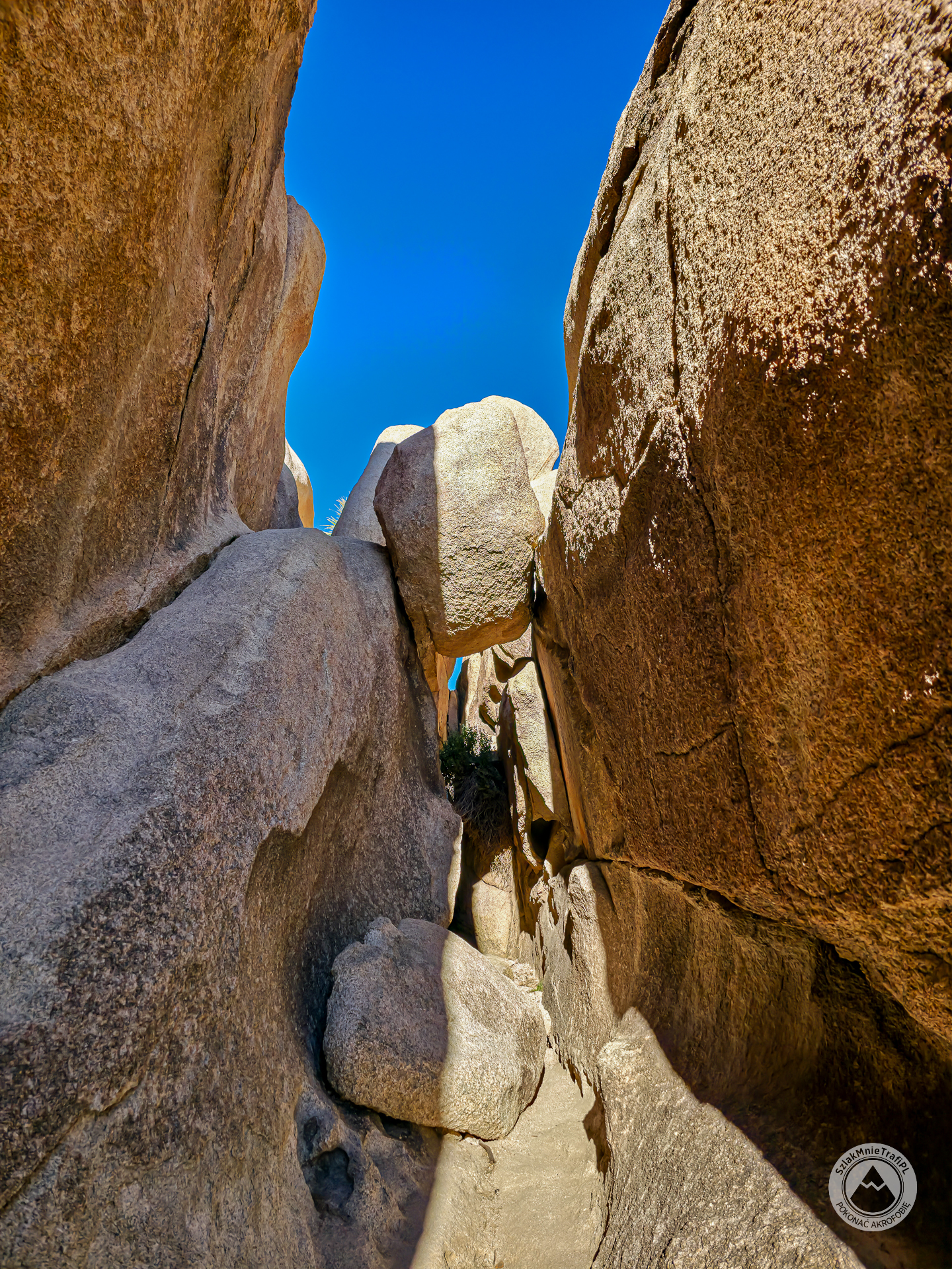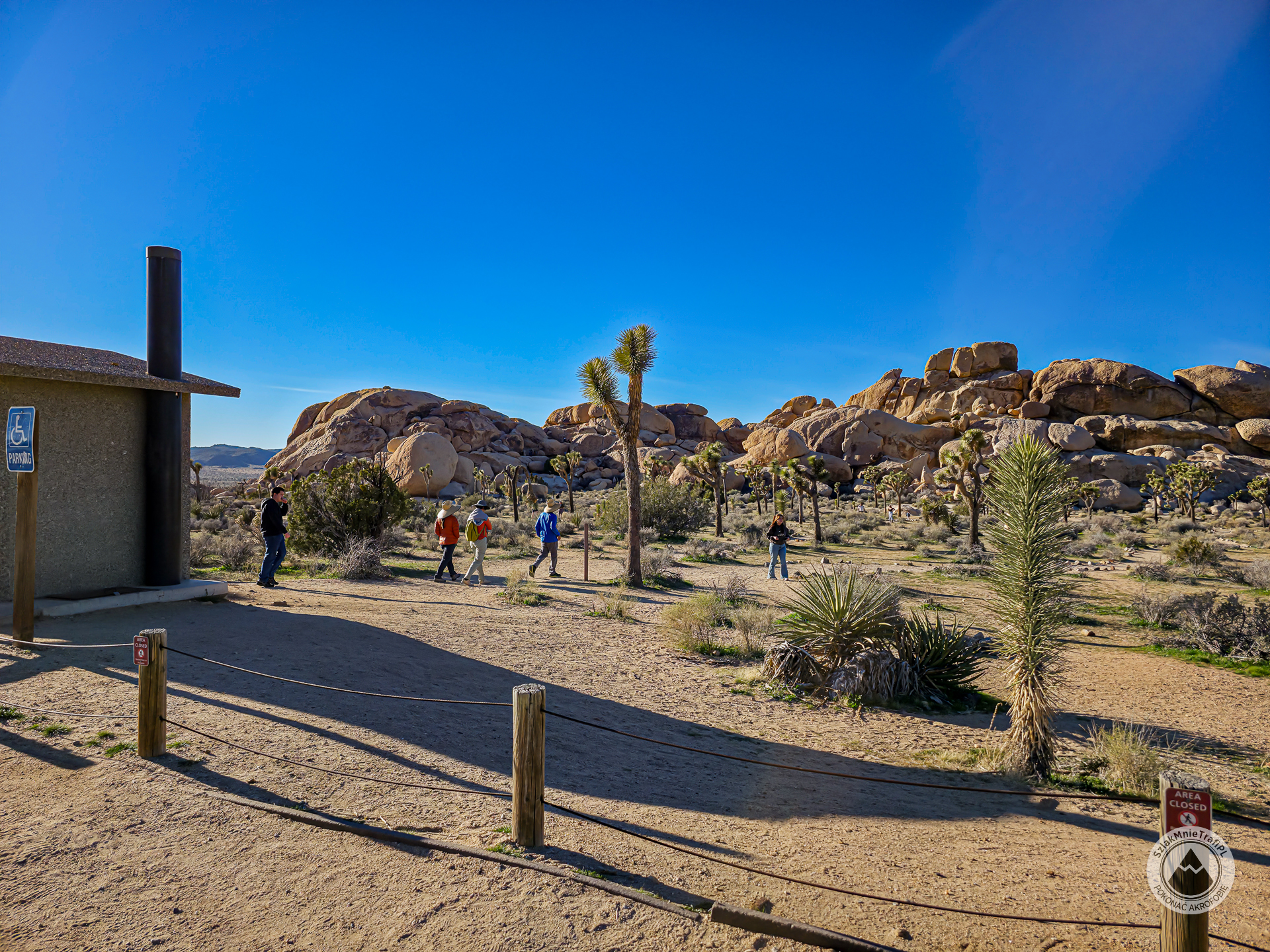 🚶♂️ Joshua Tree jest jednym z nielicznych parków narodowych w USA, które oficjalnie dopuszczają tzw. cross-country travel – można zejść ze szlaku, obejść formacje skalne, podejść pod nie, a nawet na nie wejść. Należy jednak przestrzegać lokalnych znaków i informacji na nich zawartych (np. na części szlaku Split Rock Loop obowiązywał zakaz schodzenia poza wyznaczoną ścieżkę). Kilka szlaków oznaczone na mapie literą B wymagają specjalnego zezwolenia, ale tylko dla osób poruszających się z po parku po zmroku z plecakiem z opcją obozowania w wyznaczonych miejscach. Dla tzw. dziennych turystów takie pozwolenia nie są potrzebne.