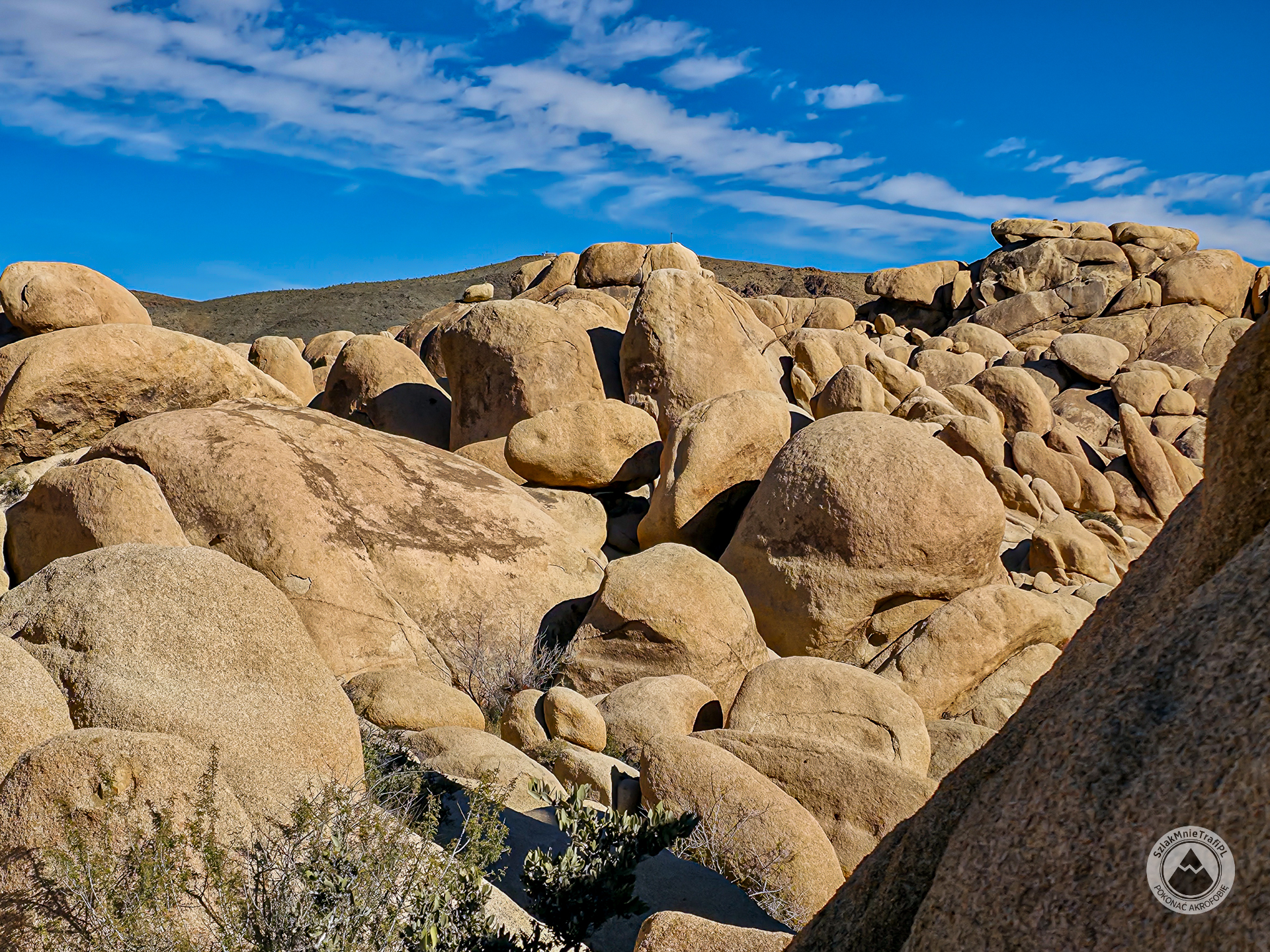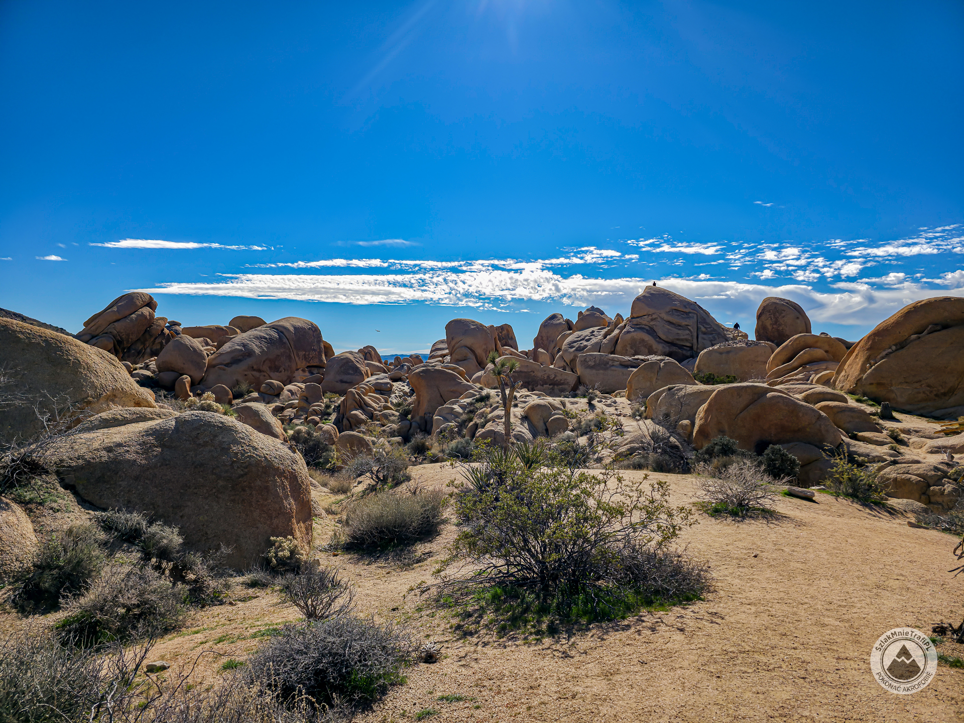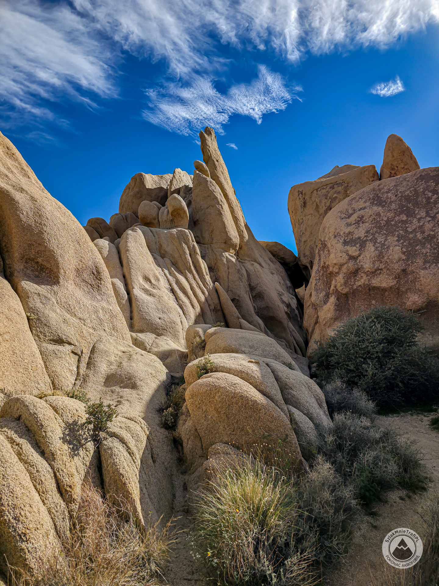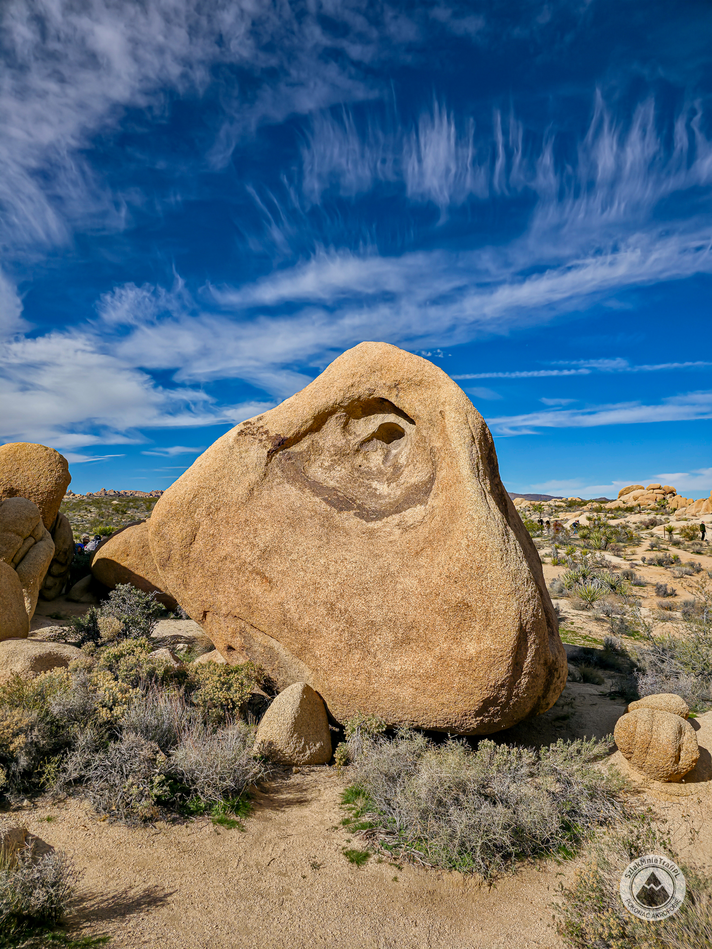 Na marginesie warto dodać, że Skull Rock leży w rejonie Jumbo Rocks – jednym z najbardziej charakterystycznych i najgęściej „upakowanych” skalnie obszarów w całym Joshua Tree. Już z parkingu kusiły mnie formacje takie jak Elephant Rock czy Abbey Rock, a labirynty głazów wyglądały jak kolejny gigantyczny plac zabaw dla dorosłych.