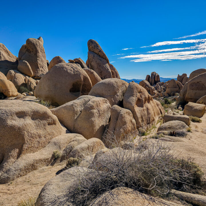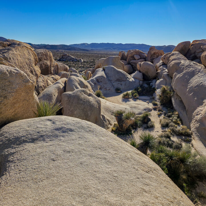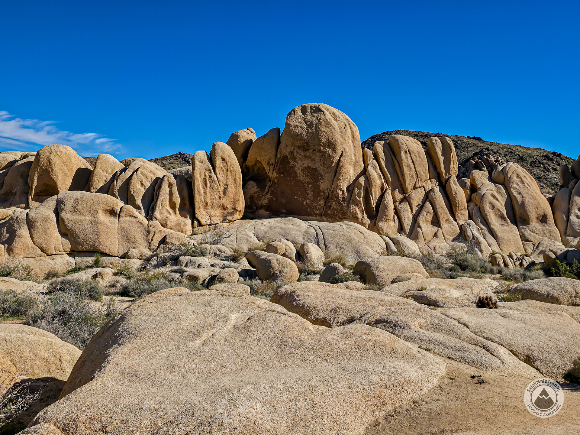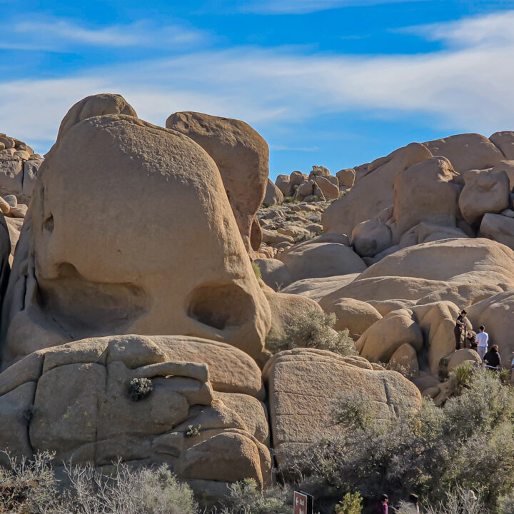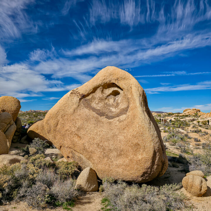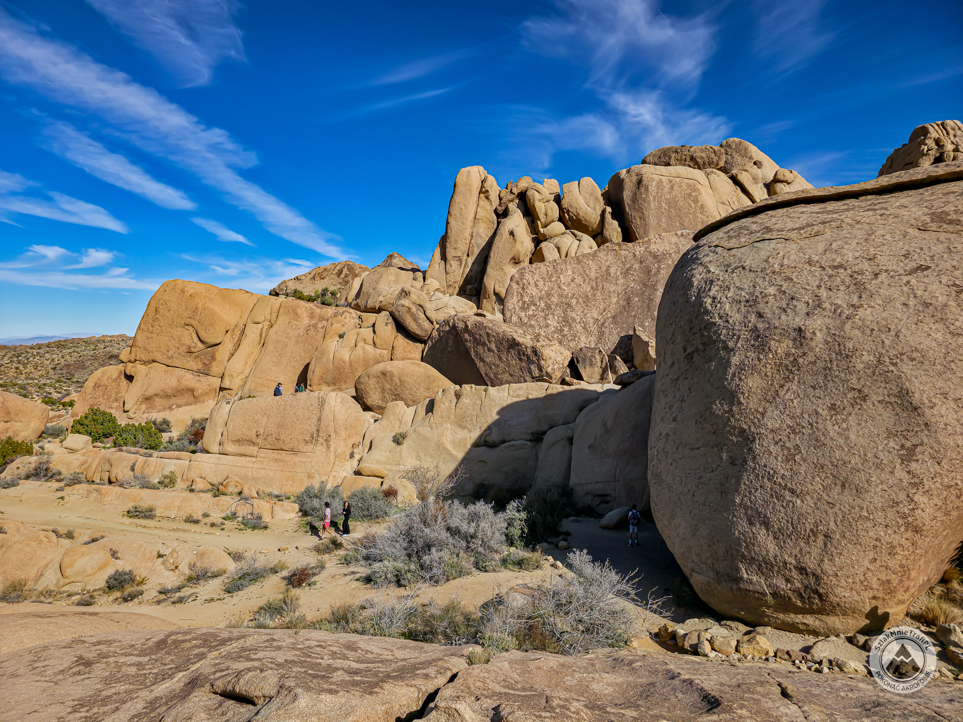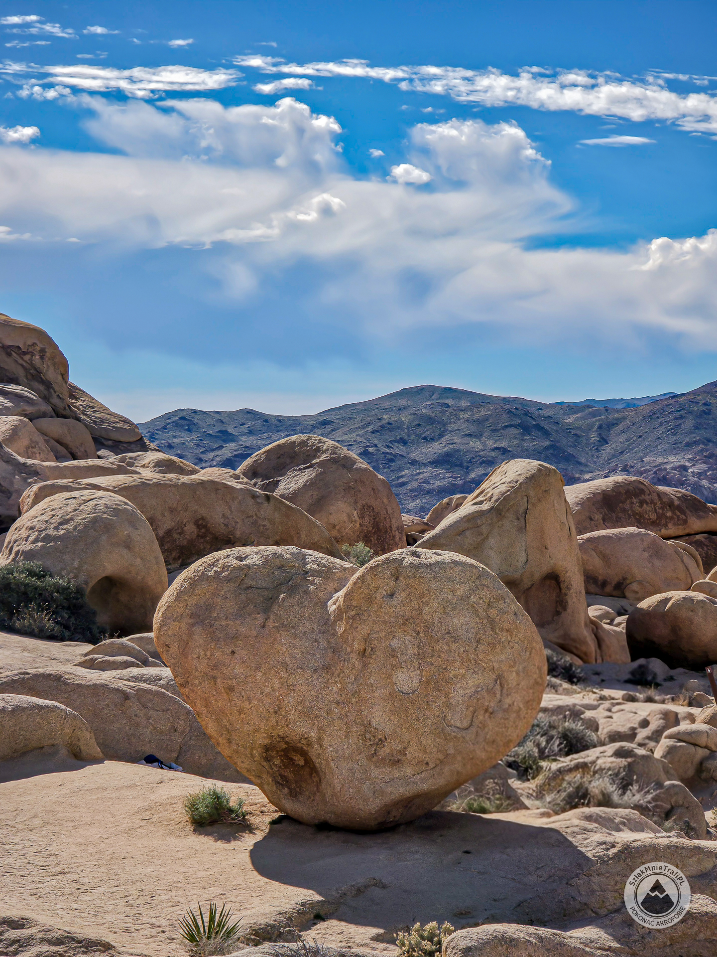 Na marginesie warto dodać, że Skull Rock leży w rejonie Jumbo Rocks – jednym z najbardziej charakterystycznych i najgęściej „upakowanych” skalnie obszarów w całym Joshua Tree. Już z parkingu kusiły mnie formacje takie jak Elephant Rock czy Abbey Rock, a labirynty głazów wyglądały jak kolejny gigantyczny plac zabaw dla dorosłych.