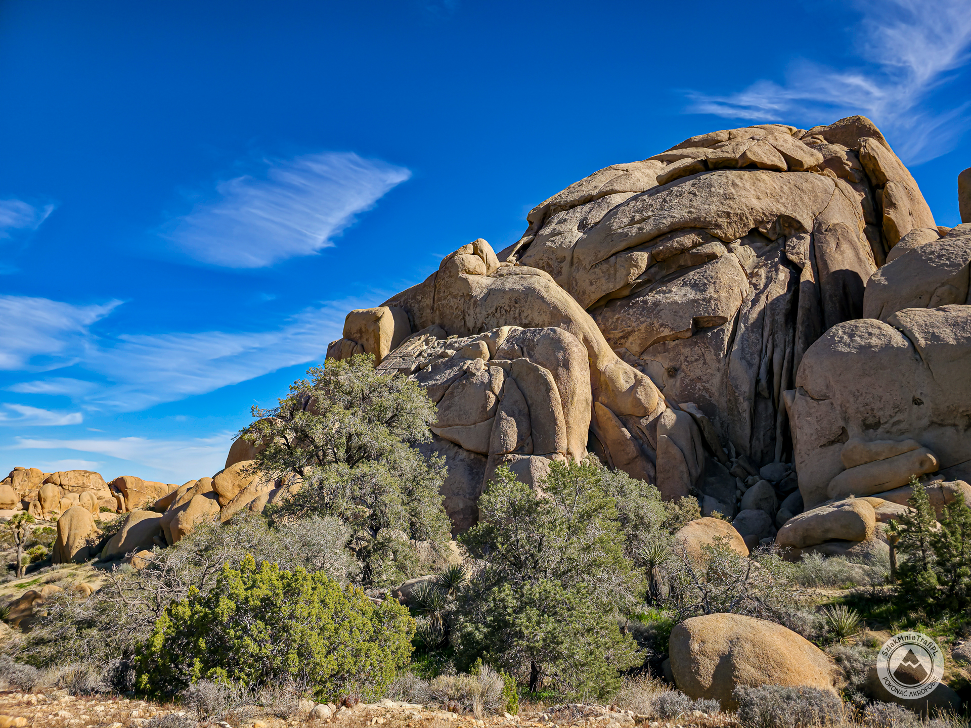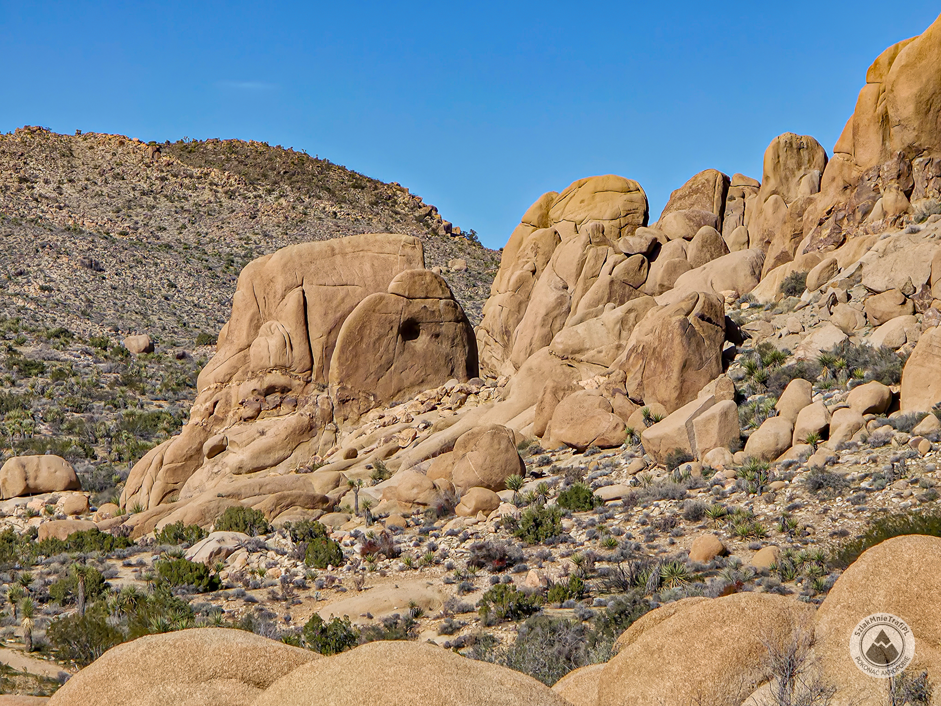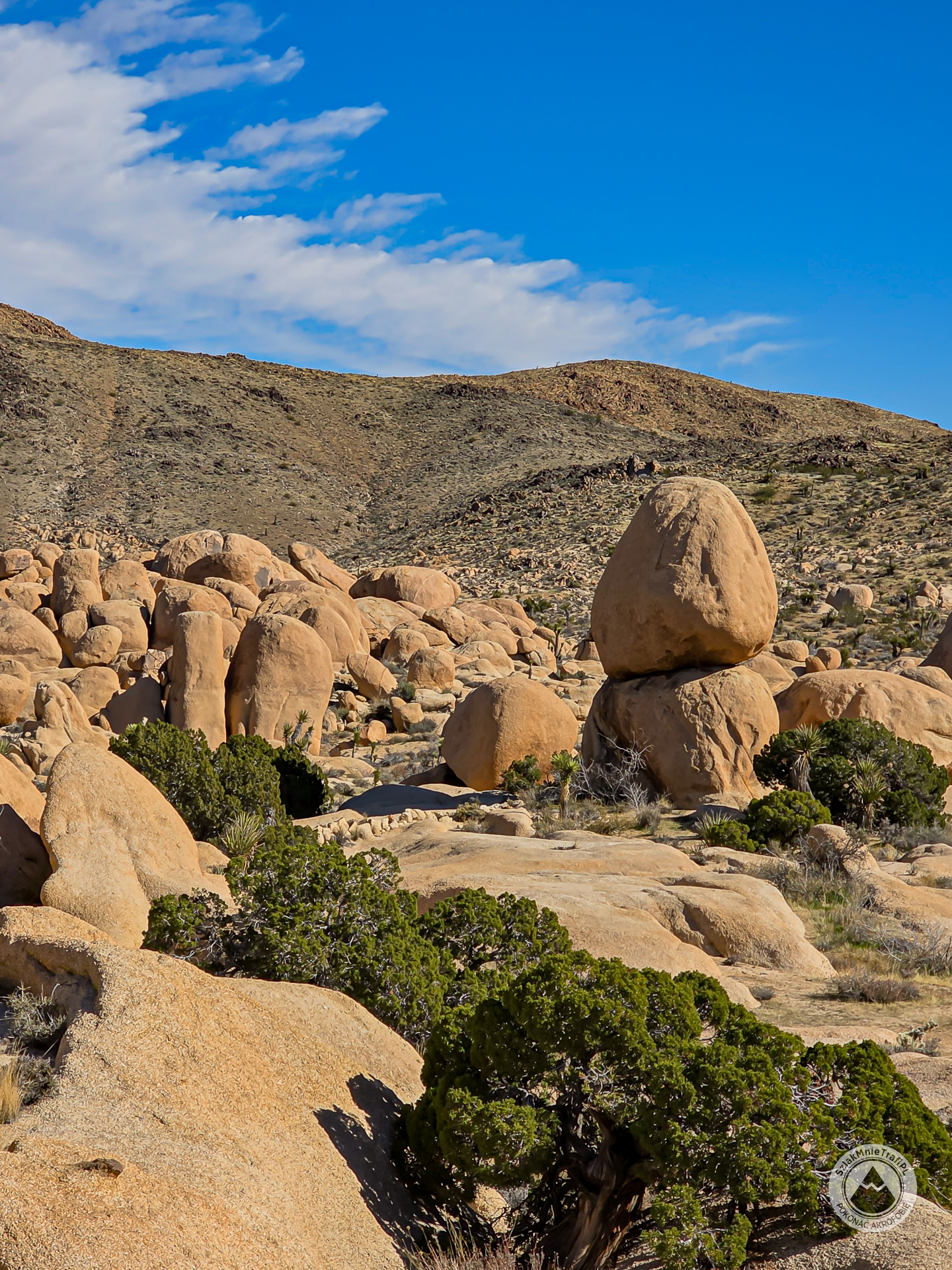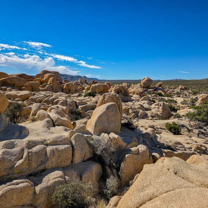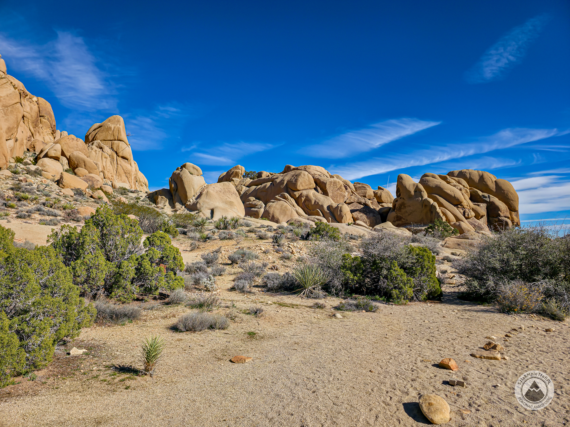 Na marginesie warto dodać, że Skull Rock leży w rejonie Jumbo Rocks – jednym z najbardziej charakterystycznych i najgęściej „upakowanych” skalnie obszarów w całym Joshua Tree. Już z parkingu kusiły mnie formacje takie jak Elephant Rock czy Abbey Rock, a labirynty głazów wyglądały jak kolejny gigantyczny plac zabaw dla dorosłych.
