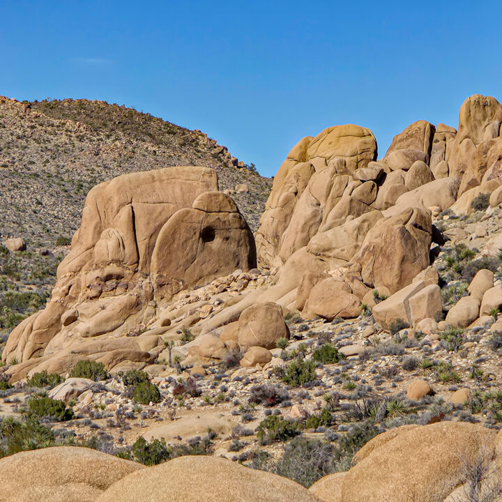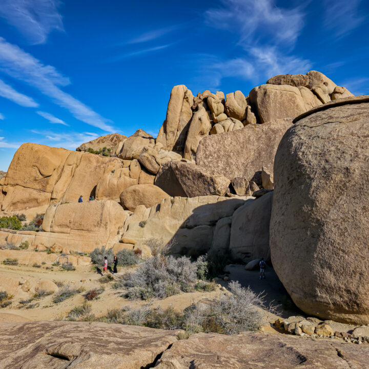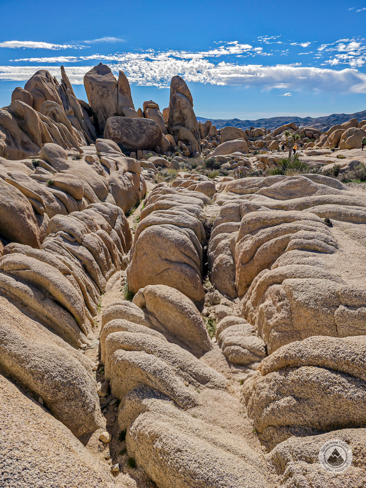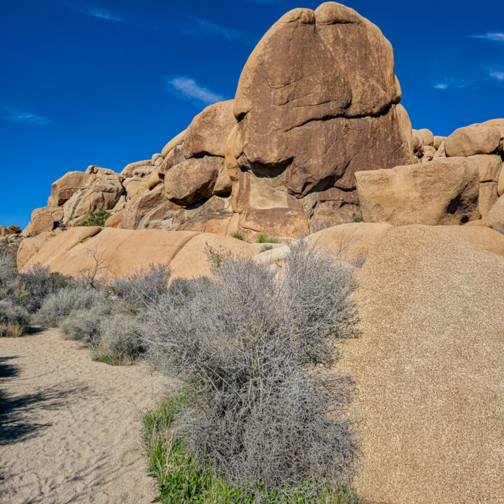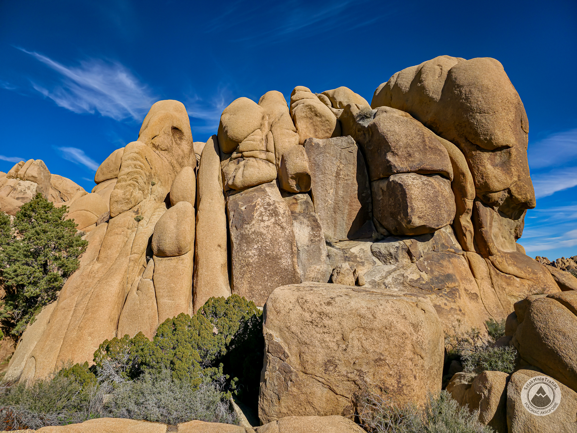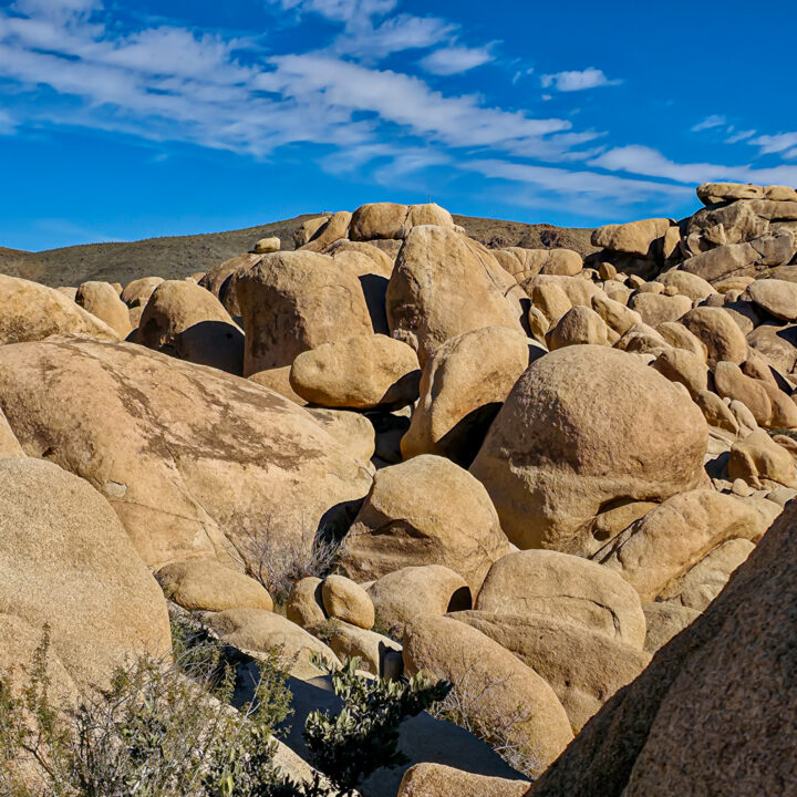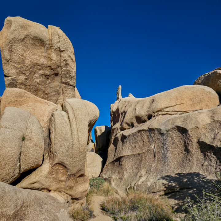 Na marginesie warto dodać, że Skull Rock leży w rejonie Jumbo Rocks – jednym z najbardziej charakterystycznych i najgęściej „upakowanych” skalnie obszarów w całym Joshua Tree. Już z parkingu kusiły mnie formacje takie jak Elephant Rock czy Abbey Rock, a labirynty głazów wyglądały jak kolejny gigantyczny plac zabaw dla dorosłych.