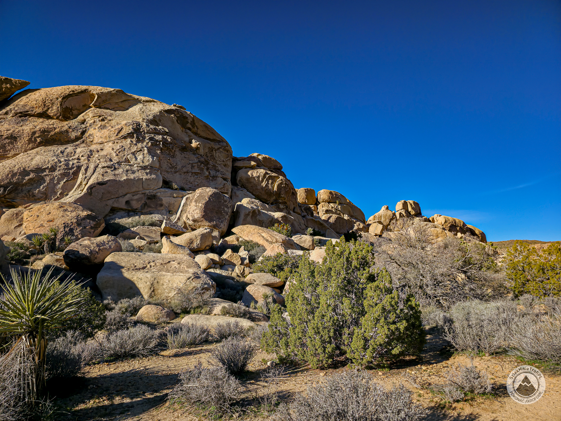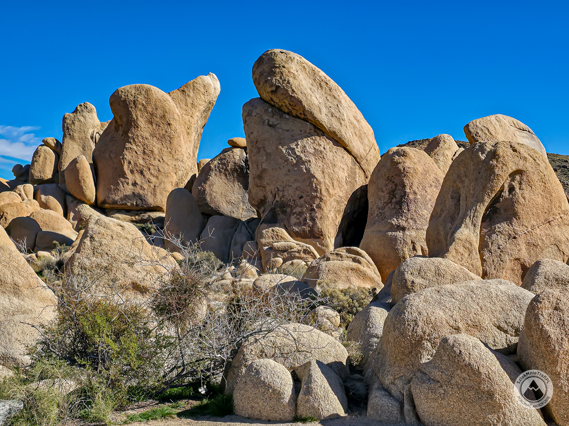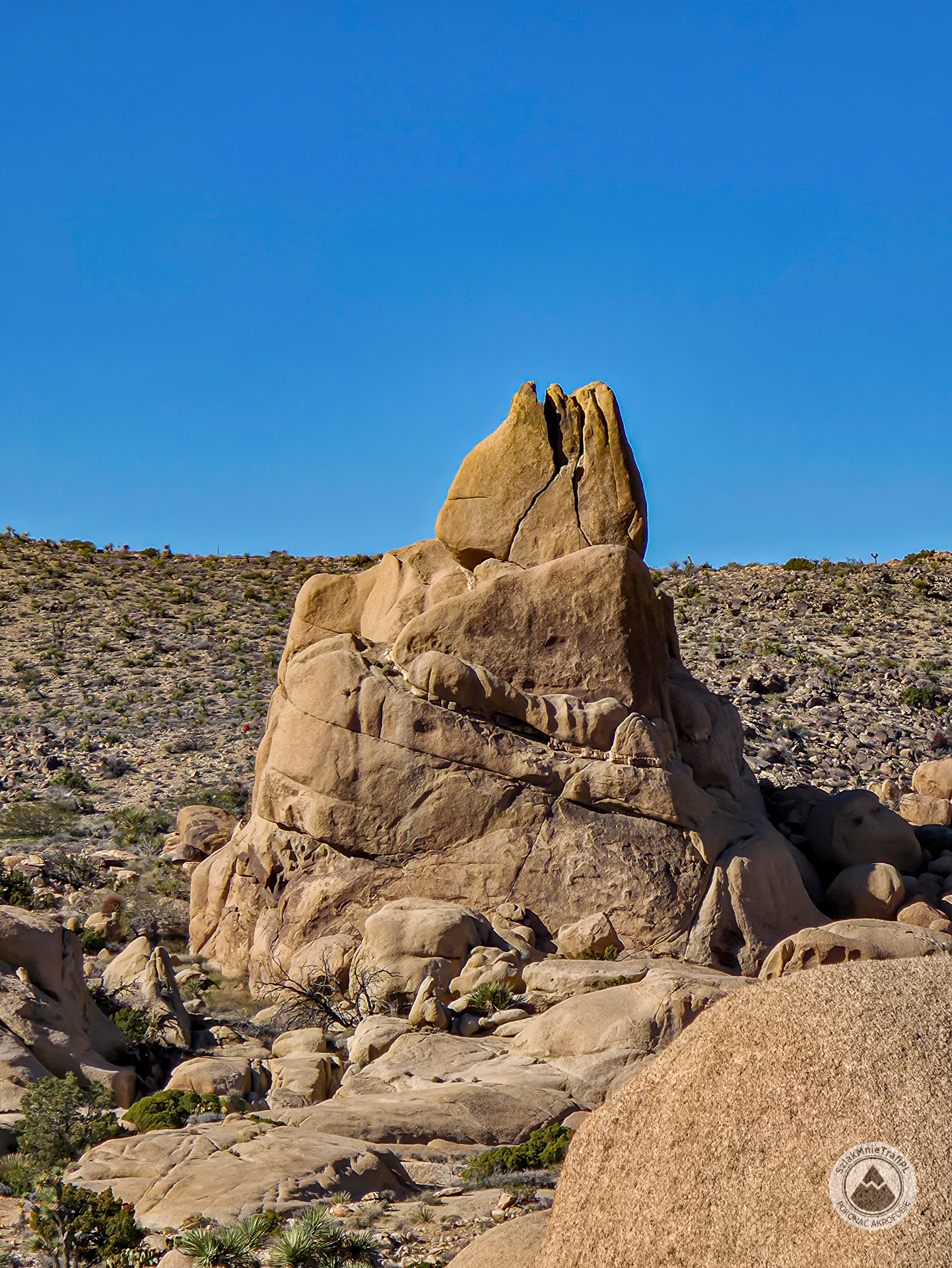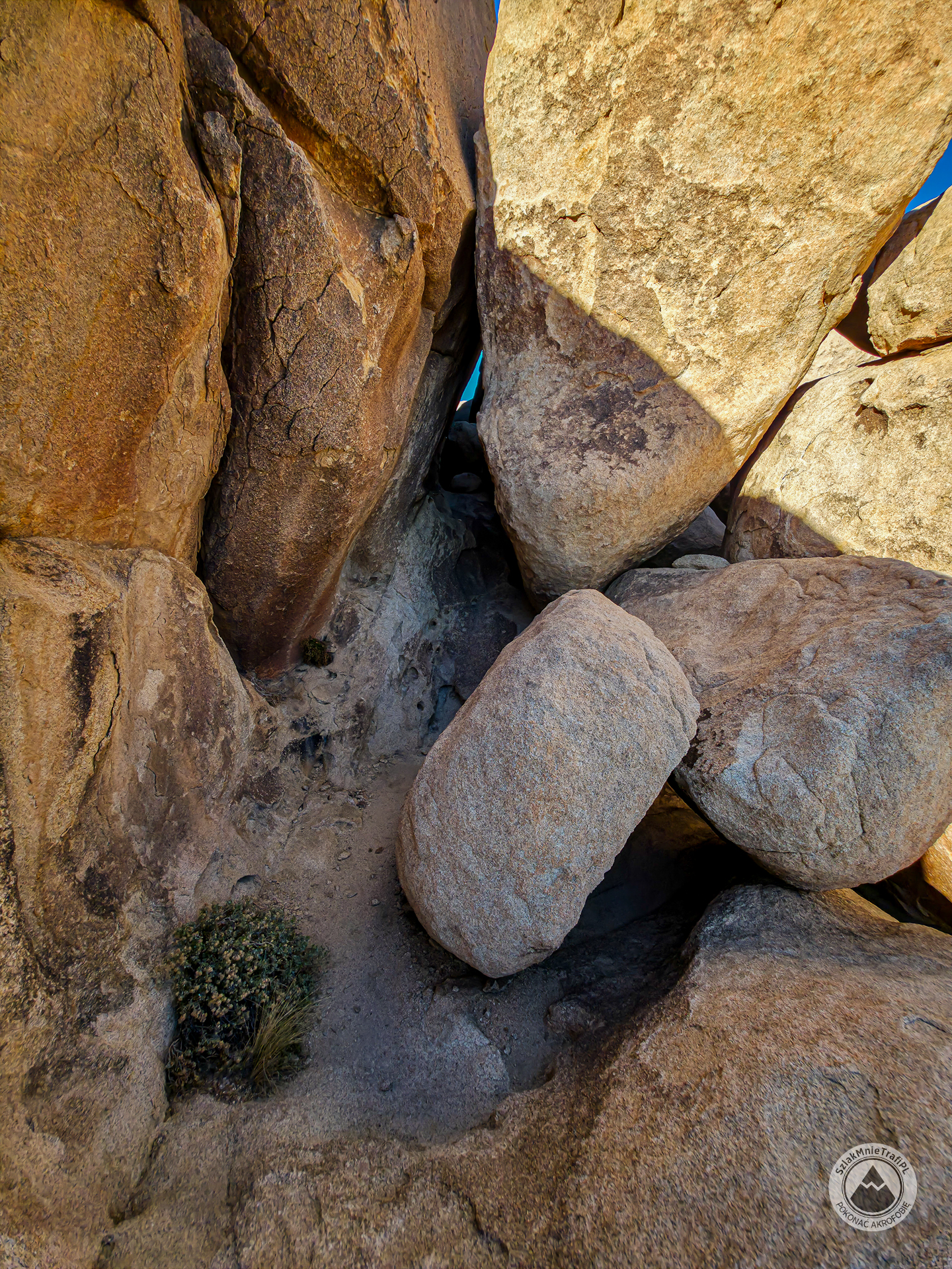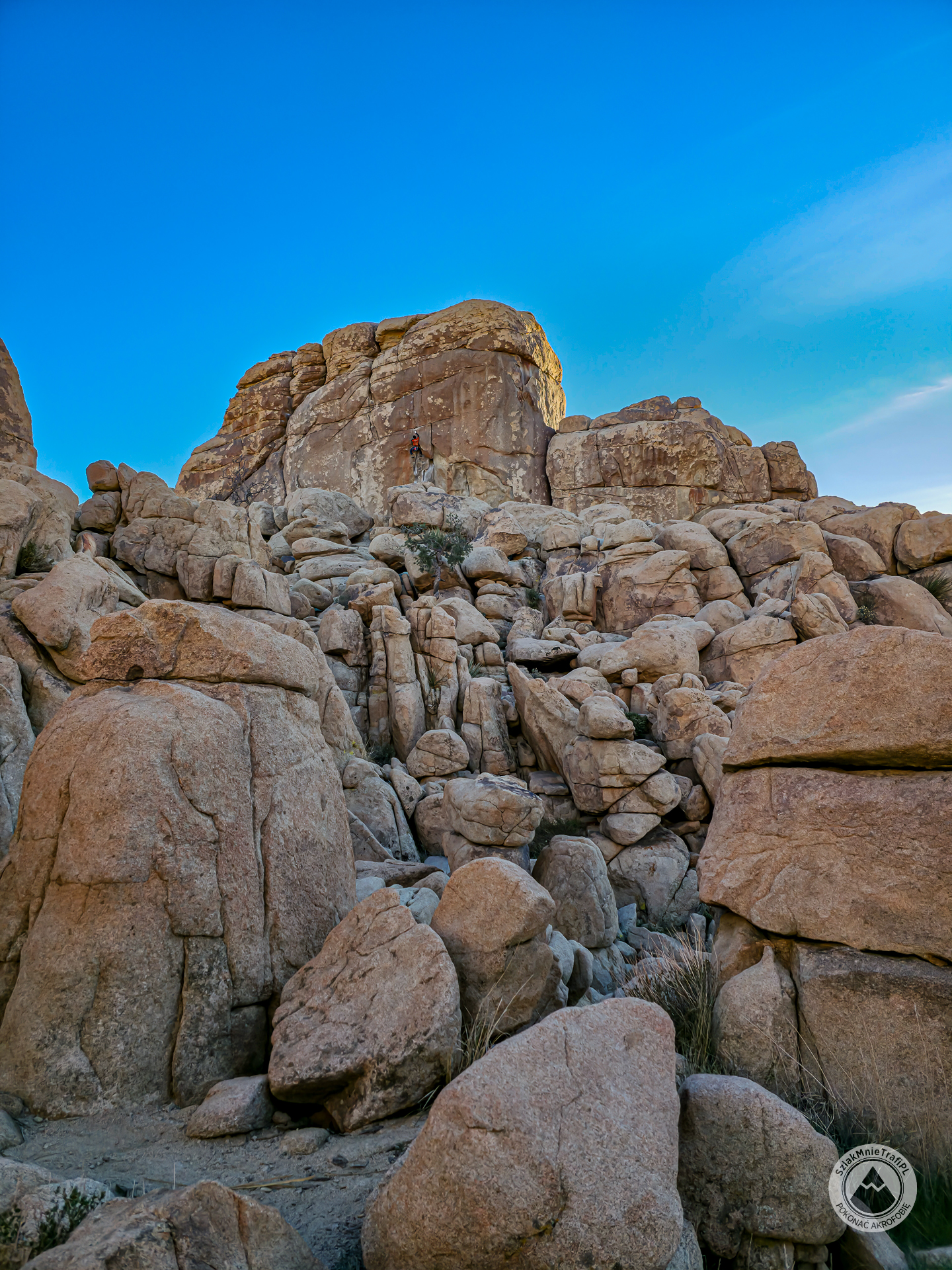Dopiero po powrocie, już podczas porządkowania zdjęć i pisania tego tekstu, zacząłem dokładniej sprawdzać miejsca, w których byłem. I wtedy wyszło na jaw, że w Hidden Valley niemal każda skała i ściana wspinaczkowa ma swoją nazwę. Alps Rock, Santa Claus Rock, Great Burrito, Wall Street, Wimp Tower — lista była długa i cholernie intrygująca. Co istotne, akurat ten rejon Joshua Tree jest wyjątkowo dobrze opisany na mapach i w dostępnych opracowaniach, więc można się w tych nazwach naprawdę zagłębić.