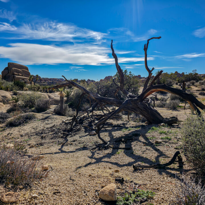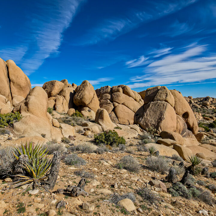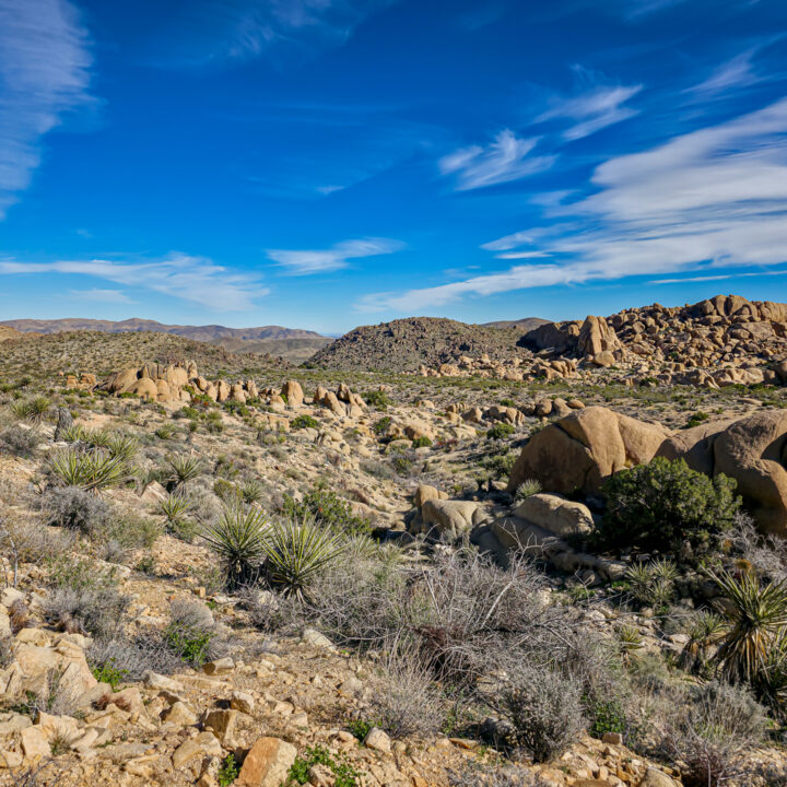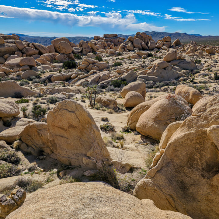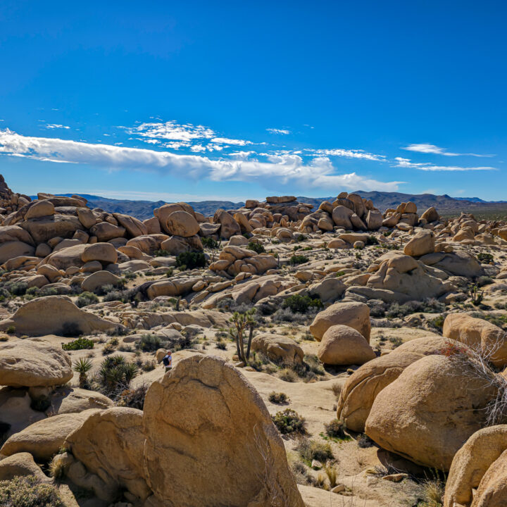 I to wcale nie jest oczywiste, bo Joshua Tree leży na styku pustyń Mojave i Colorado — a to pierwsza z nich jest typowym „high desert” — obszar położony zazwyczaj między 600 a 1200 metrów n.p.m., z punktami widokowymi sięgającymi jeszcze wyżej. Dla porównania: Sahara leży średnio na wysokości około 300 metrów, a wiele jej obszarów znajduje się blisko poziomu morza. Tu natomiast pustynia zaczyna się tam, gdzie w innych miejscach kończą się niziny.