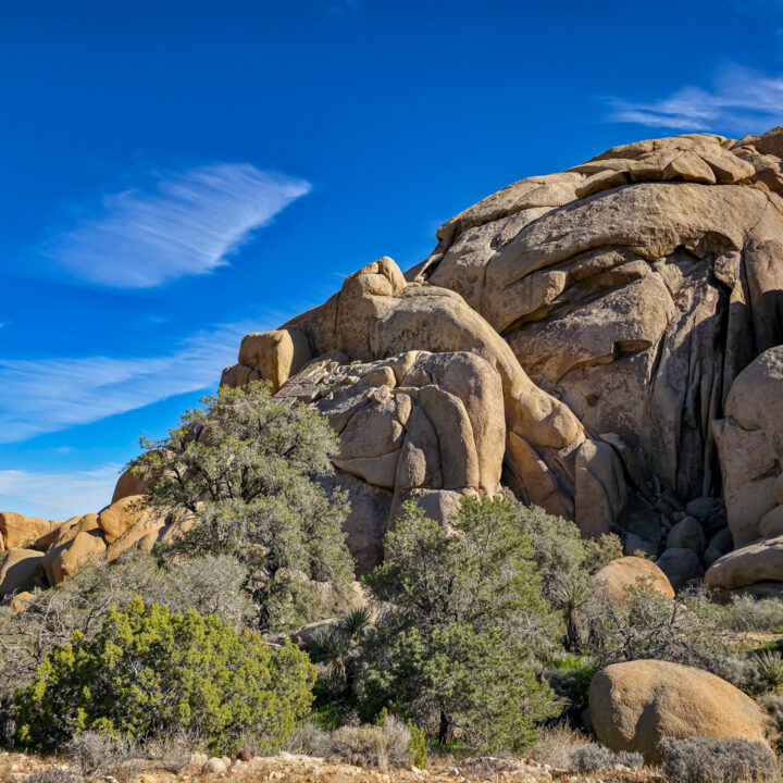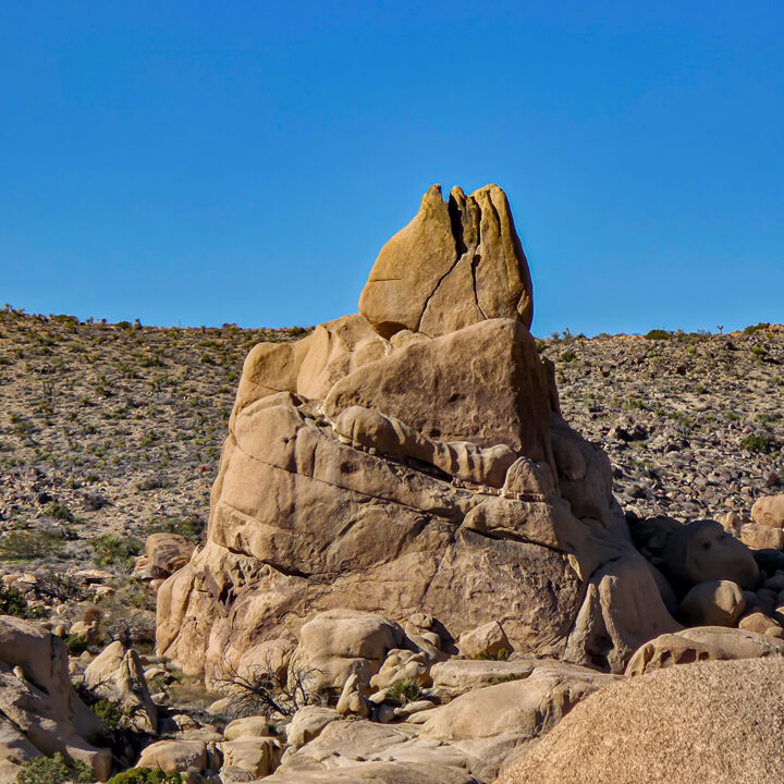 Gdybym układał bardzo napięty, jednodniowy plan zwiedzania Joshua Tree, Cap Rock bez wahania pominąłbym na rzecz innych miejsc. Z drugiej strony — leży ona tuż przy drodze i często trafia się na nią zupełnie „z rozpędu”, więc nic nie stoi na przeszkodzie, by zatrzymać się tu na krótki spacer, jeśli akurat mamy chwilę zapasu.