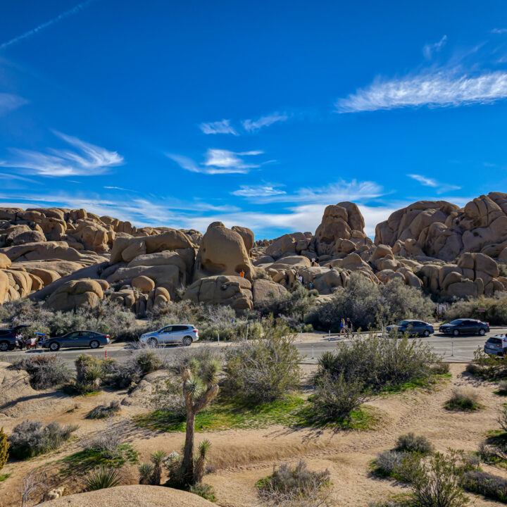 🚗 Polecam poruszanie się po Joshua Tree National Park samochodem. Przemierzenie parku „od atrakcji do atrakcji” na piechotę jest w praktyce niemożliwe. Odległości są duże, a punkty widokowe i szlaki porozrzucane po całym obszarze. Parkingi i zatoczki parkingowe są rozmieszczone dość gęsto, więc nie powinno być problemów z zatrzymaniem samochodu w wyznaczonych do tego miejscach.
