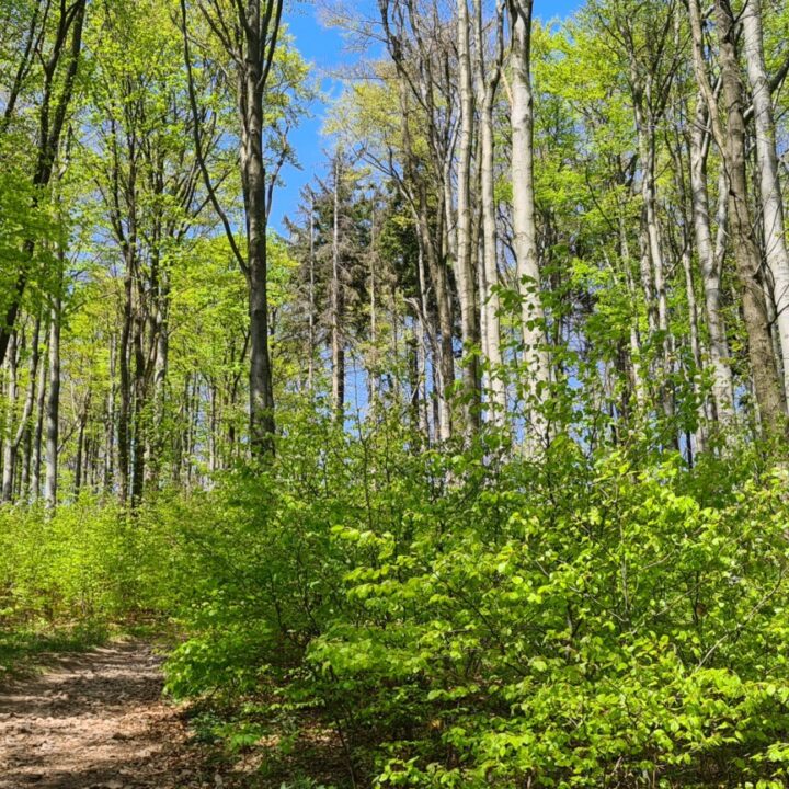 📈 Trudność – Przeważnie łagodna, choć krótki odcinek żółtego szlaku potrafi rozgrzać nogi (do 20% nachylenia). Wersja „spacerowa” możliwa w całości zielonym szlakiem.