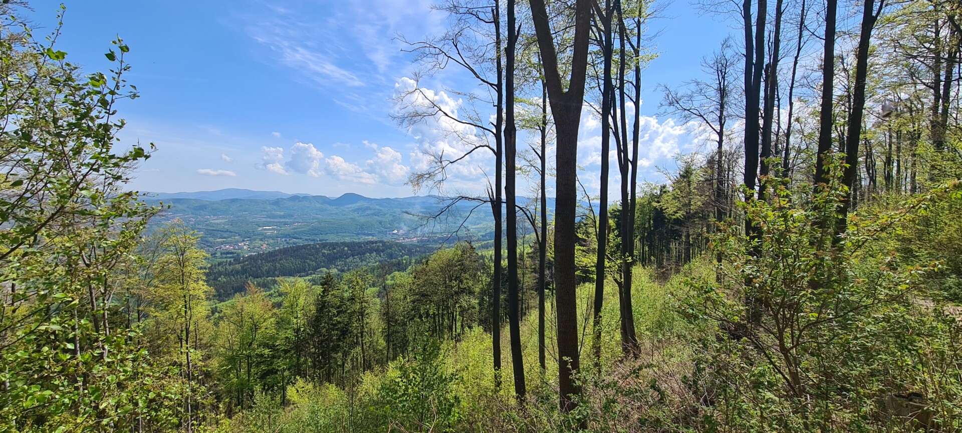 Na ostatnich metrach przed szczytem pojawia się całkiem przyzwoita panorama na Wałbrzych – niestety to też jedyne naprawdę udane widokowo miejsce na całej trasie.