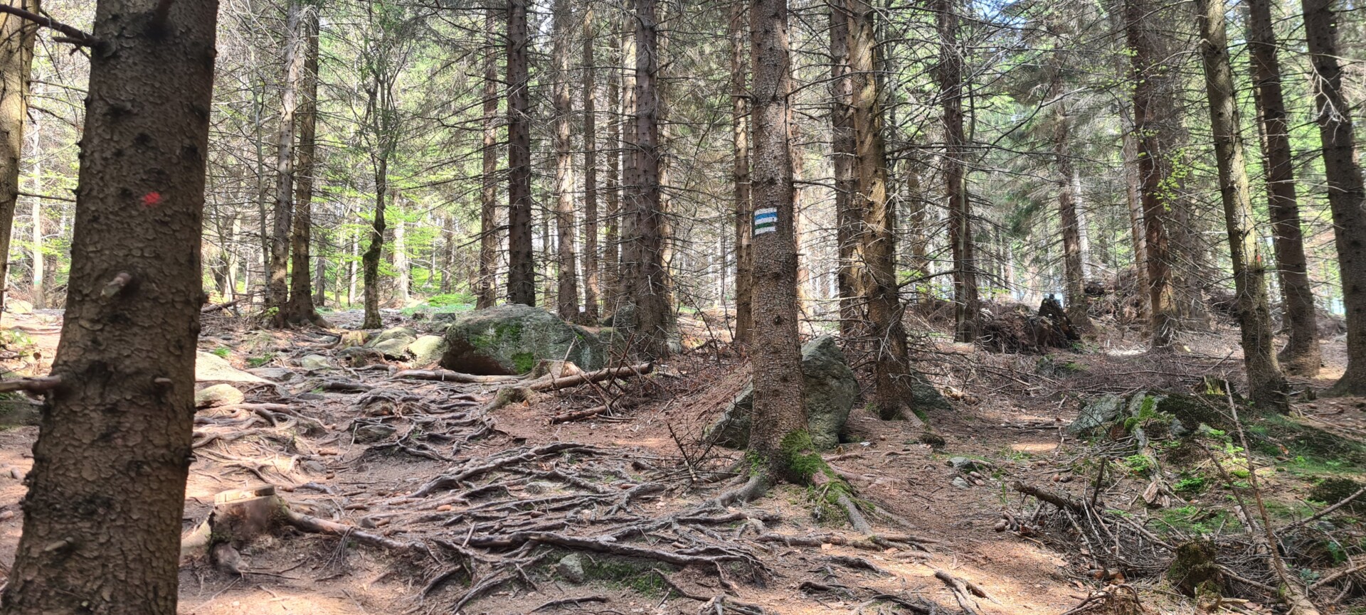 🔹 Ekspozycja: Brak. Trasa prowadzi przez lasy i szerokie ścieżki, bez odsłoniętych grzbietów czy stromych zboczy. Jeśli nie lubisz wspinać się na skały, możesz czuć lekki dyskomfort na Ostrej Małej, ale warto się z tym zmierzyć.