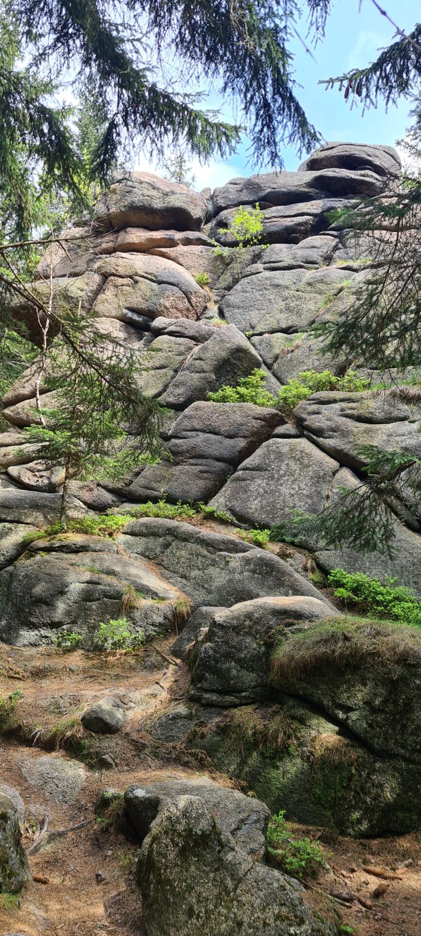 🪨 Ciekawostki – Formacja skalna Ostra Mała może śmiało konkurować z „prawdziwym” szczytem – i według nowych pomiarów nawet go przewyższa. Dodatkowy bonus: schodząc, mijamy skały z fantazyjną nazwą Konie Apokalipsy – brzmi groźnie, wygląda raczej niegroźnie.