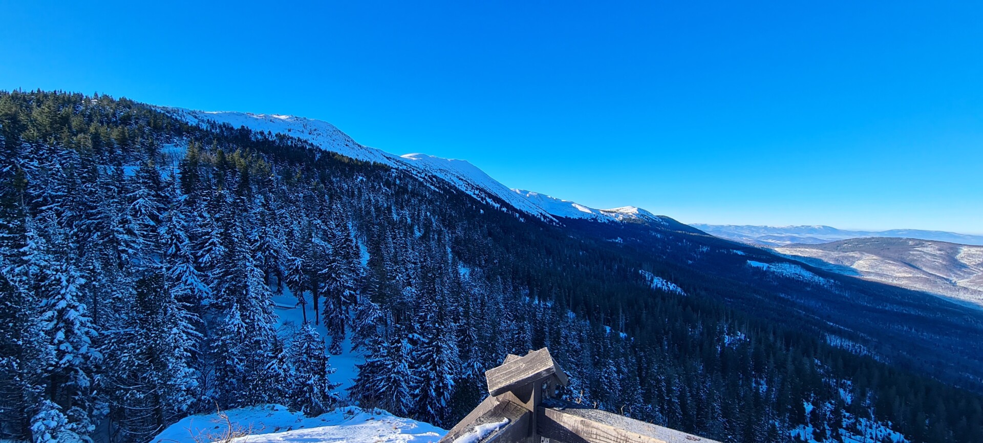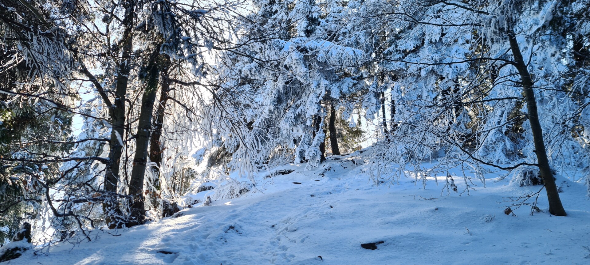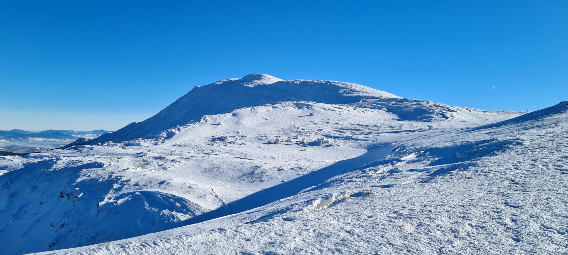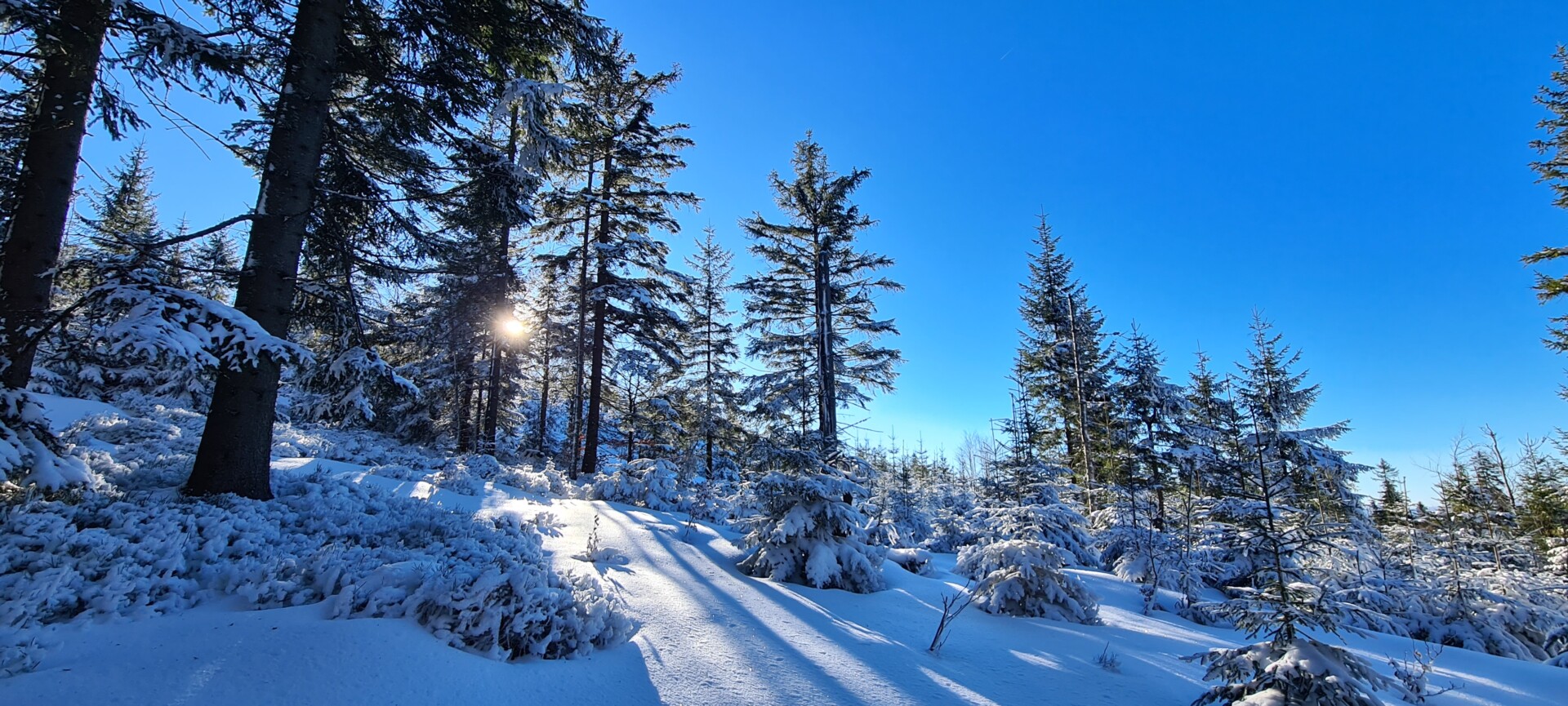 Mając w pamięci moją pierwszą, jesienną wycieczkę na Diablak, mogłem porównać, jak inaczej wygląda ta trasa zimą. Więcej wysiłku, więcej potu, więcej ciszy. Błękit nieba, blask słońca i biały puch tworzyły oślepiającą mieszankę. Witamina D wisiała w powietrzu jak budyń.