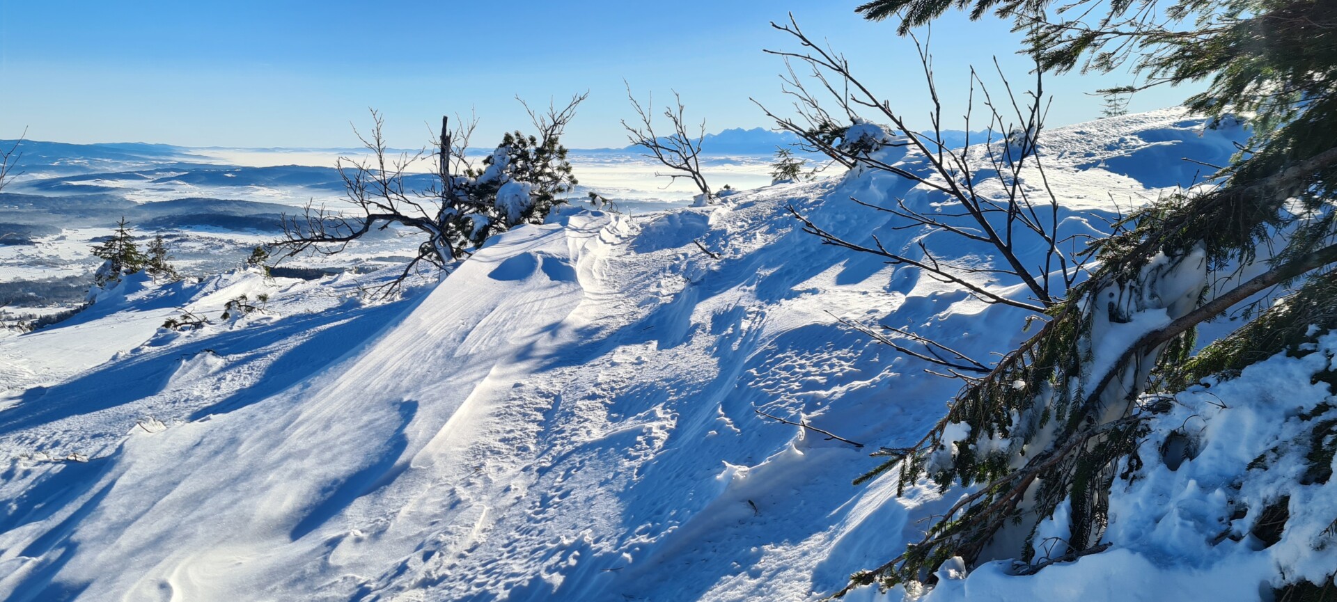 Największym zaskoczeniem była ilość śniegu powyżej Sokolicy – bujna kosodrzewina, która wyznaczała szlak, po prostu… zniknęła. Wszystko przykryte równą, białą warstwą. Kępa, Gówniak, Babia – wyglądały jak lodowa pustynia.