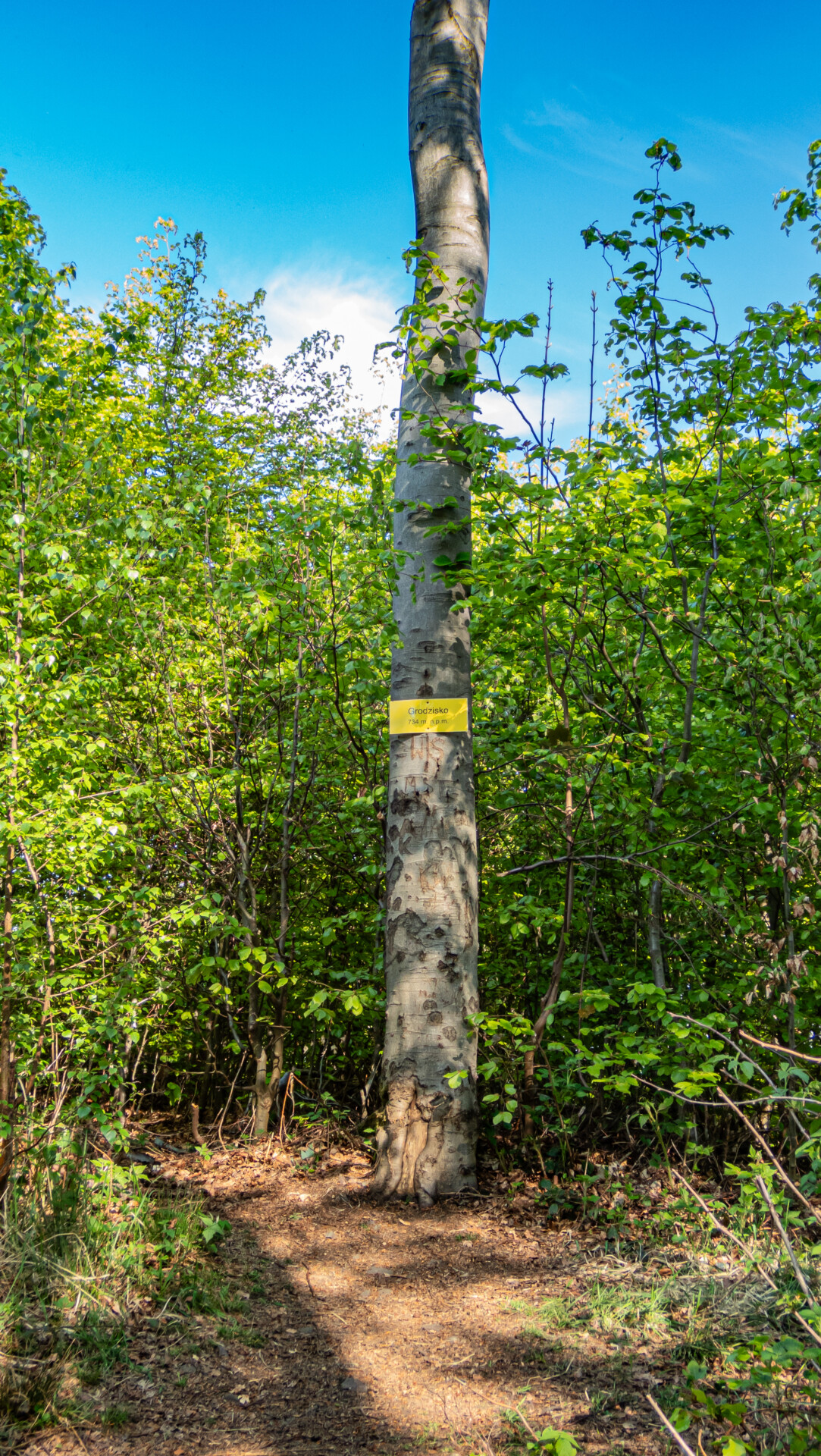 Droga powrotna żółtym szlakiem była powtórką z rozrywki – i to dosłownie. Najpierw zejście na przełęcz Trzy Granice, potem wejście na Jelenią Kopę, zejście na przełęcz pod Grodziskiem, znów w górę na Grodzisko, w dół na Przełęcz Podzamecką, a na koniec ostatnie podejście na Podzamecką Kopę. Taki szlakowy rollercoaster, który skutecznie dobija resztki sił.