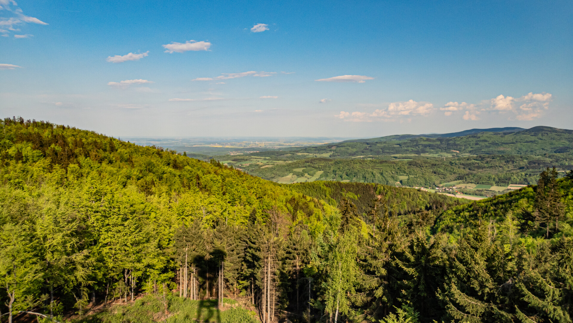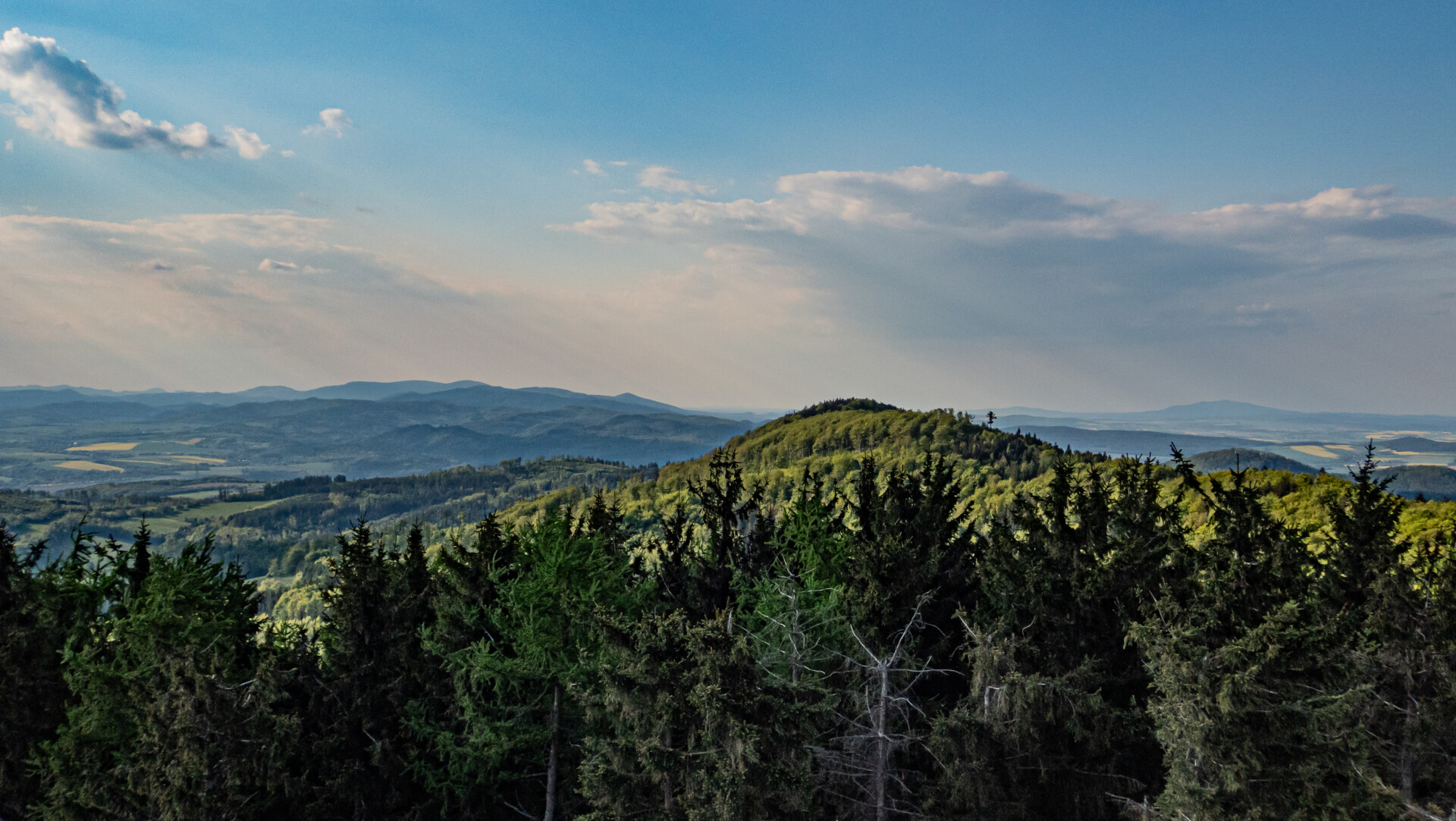 – Panorama z metalowej wieży widokowej na Kłodzkiej Górze (przy dobrej pogodzie widoczne m.in. Masyw Śnieżnika, Góry Złote, Góry Sowie, Góry Bardzkie, a nawet fragmenty czeskich pasm)