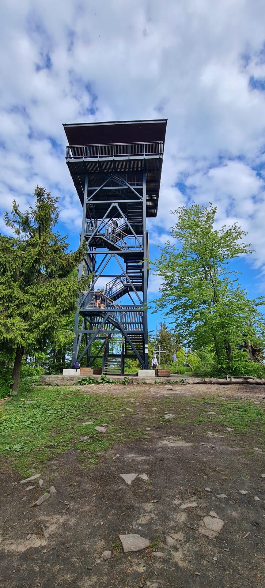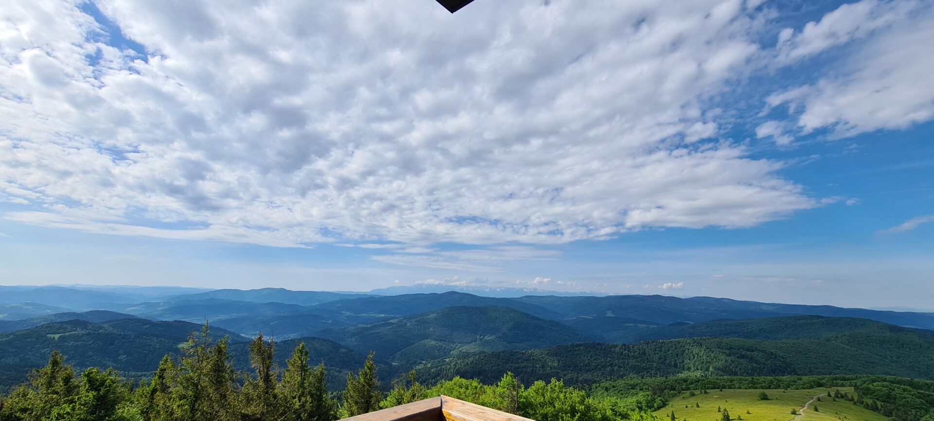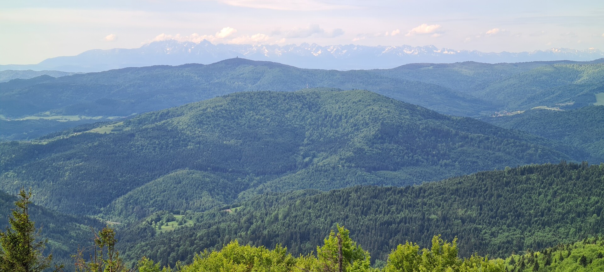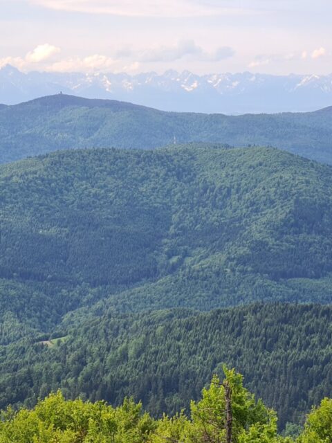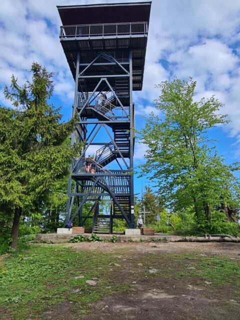 Szczyt Mogielicy, porośnięty lasem, nie oferuje widoków, ale dzięki wieży widokowej można podziwiać panoramę 360°, z Tatrami w tle – oczywiście przy dobrej pogodzie. Podczas mojej poprzedniej wizyty chmury skutecznie zasłoniły wszystko, ale tym razem warunki sprzyjały.