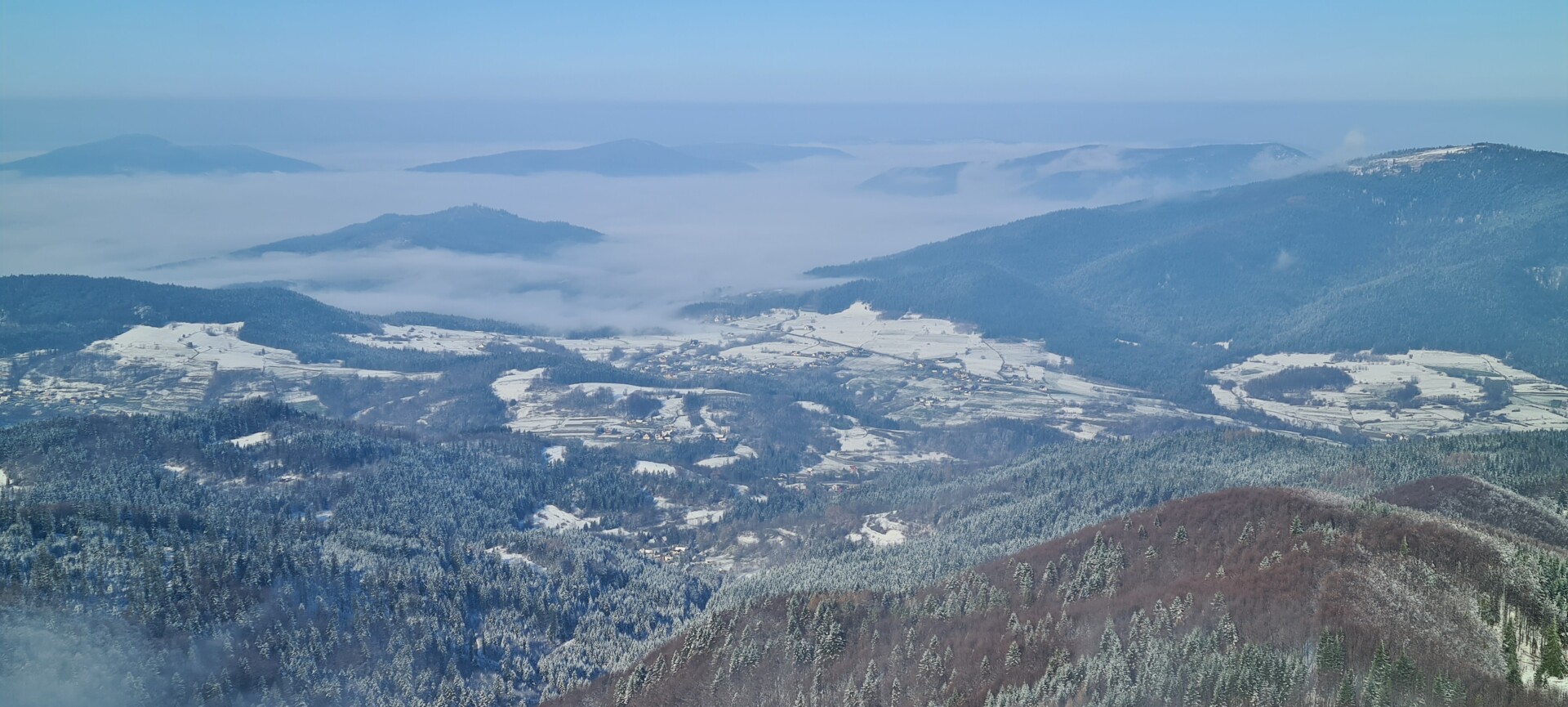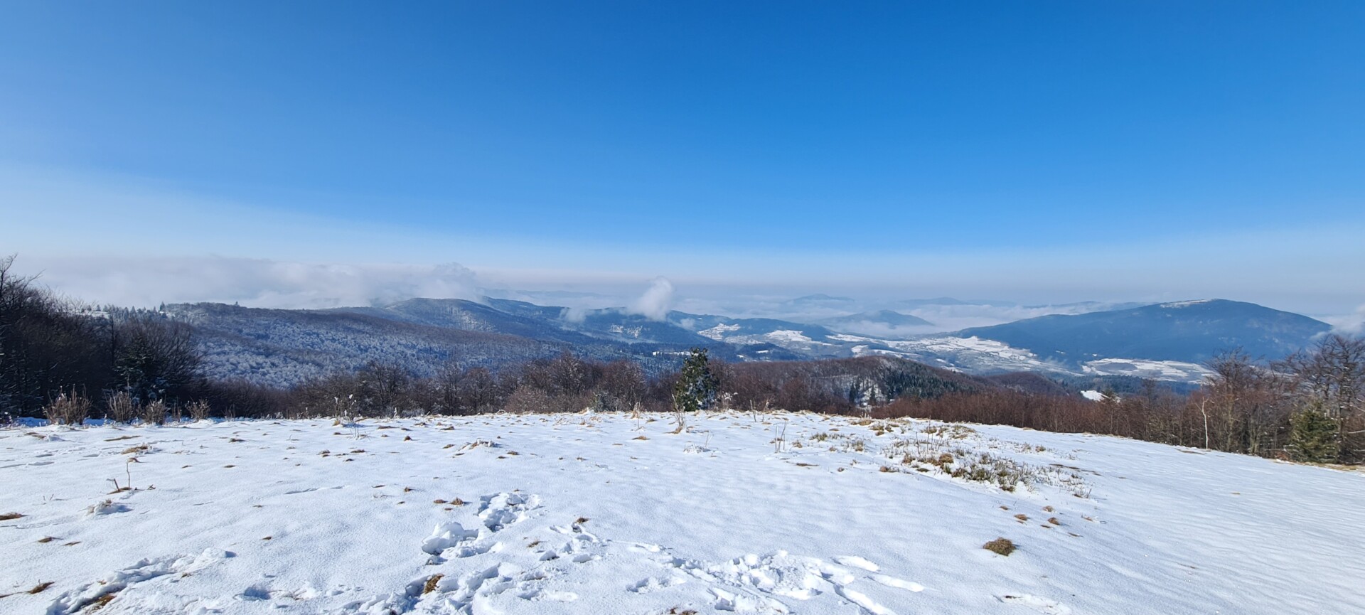 Zejście przypomniało mi, jak bardzo w górach potrafią się zmieniać warunki – nawet tych niewysokich. Na górze zima, a dwie godziny później – już klasyczna wiosna. Zmrożona ziemia zmieniła się w mokrą, rozmiękłą nawierzchnię. Raczki jeszcze się przydały na szczycie, a chwilę później bardziej potrzebne byłyby… cholewy 🙂