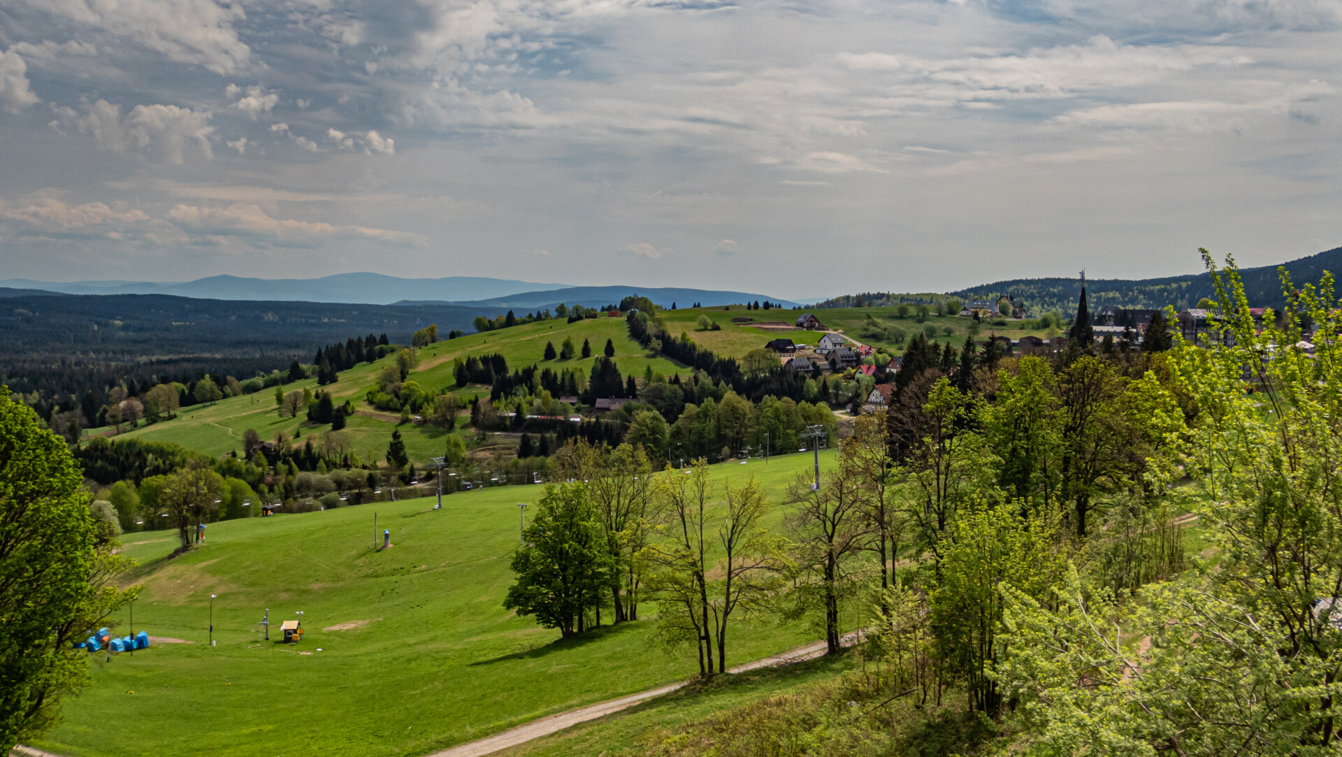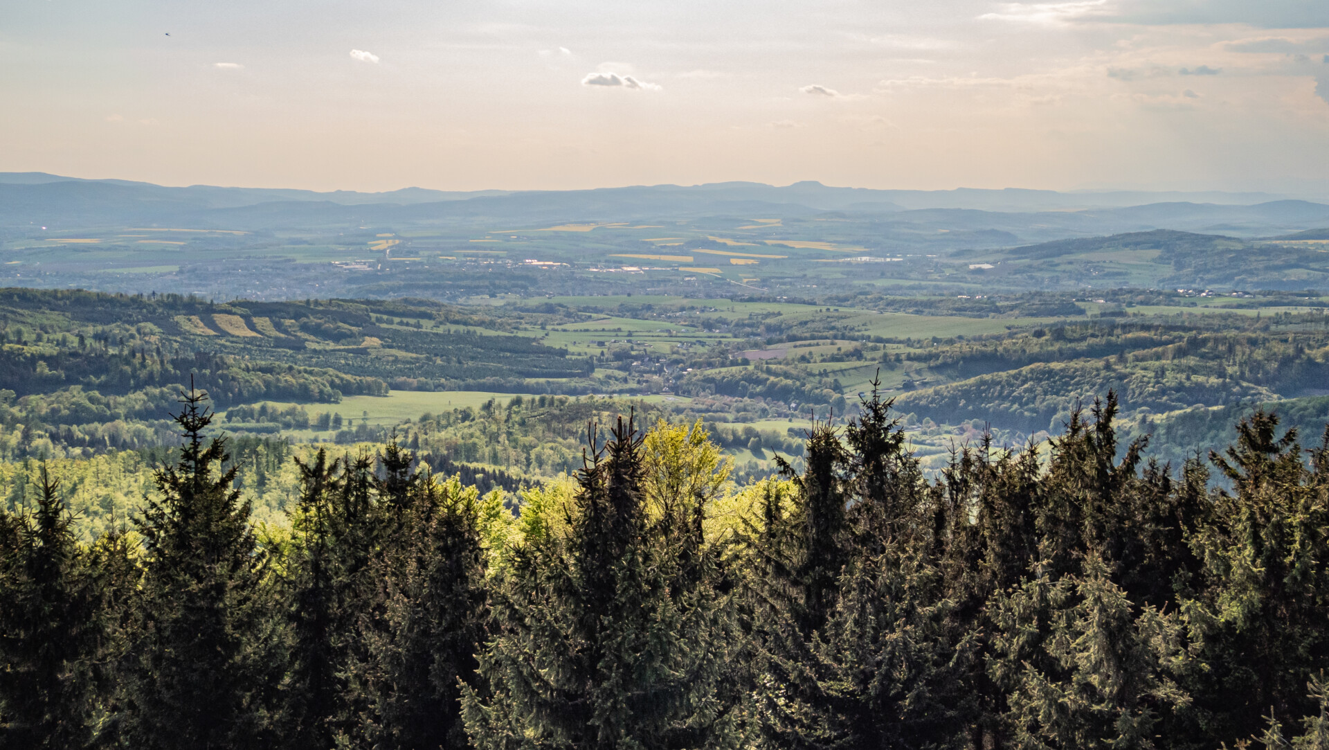 – Z wieży widokowej pod szczytem (po polskiej stronie) szerokie perspektywy Gór Orlickich i Bystrzyckich.