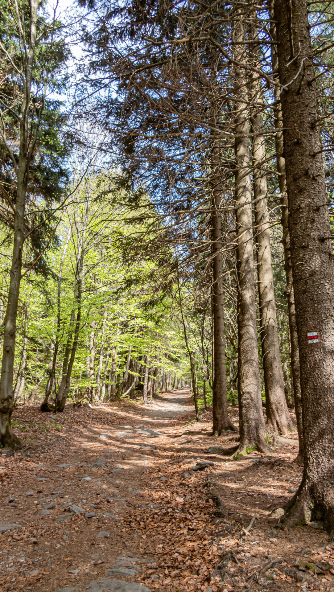 🔹 Trudności techniczne: 2/10 – proste ścieżki, leśne podłoże. Brak stromych podejść wymagających dużego wysiłku, brak łańcuchów i ekspozycji. Przy deszczu mogą pojawić się błoto i śliskie korzenie, ale to wszystko.