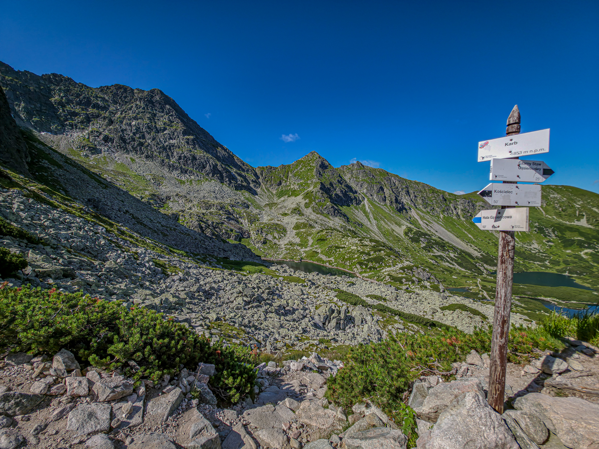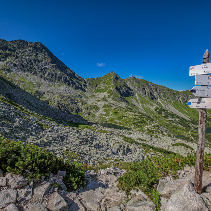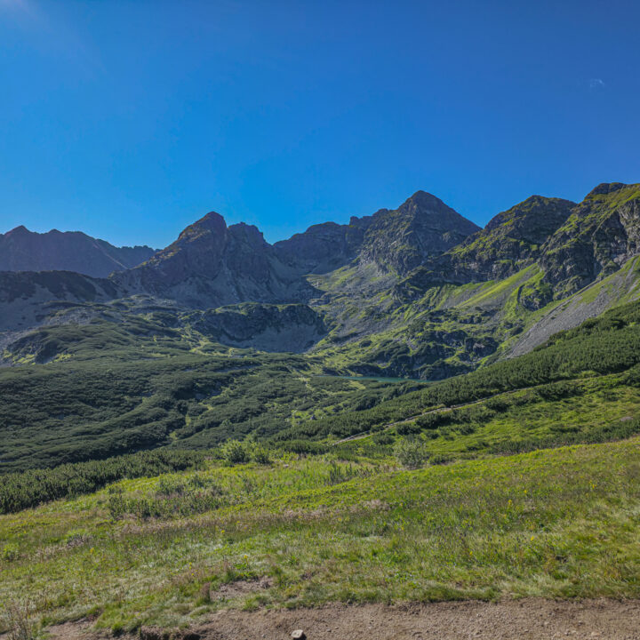 🥾 Trasa – Pętla z wjazdem na Kasprowy Wierch – Zielona Dolina Gąsienicowa – Karb – Kościelec – Czarny Staw – Murowaniec – Jaworzynka. Długość ok. 14 km, suma podejść <800 m.