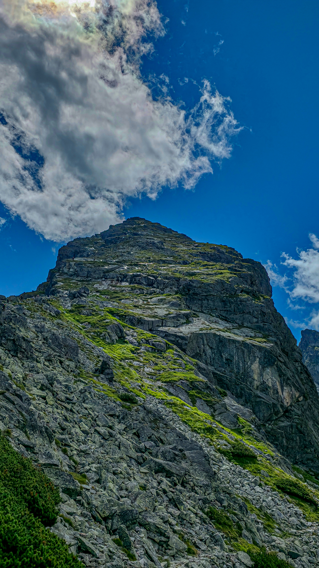 🌧️ Uwaga: po opadach, przy porannej rosie lub wilgoci – skała staje się bardzo śliska, niemal jak lód. Na mokro Kościelec jest trasą trudną i niezalecaną, szczególnie dla osób bez doświadczenia.