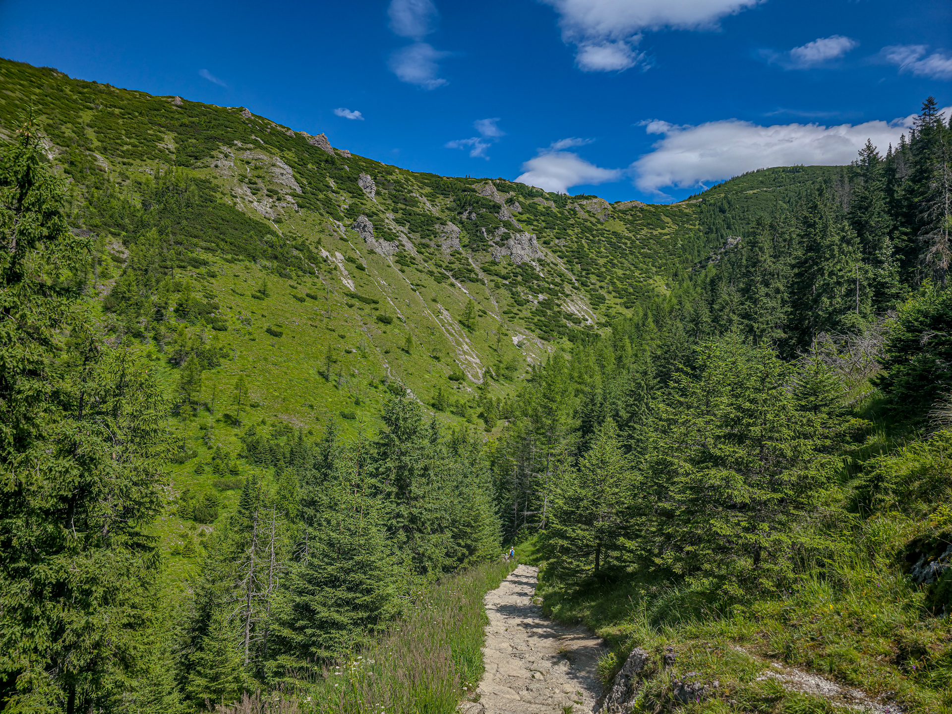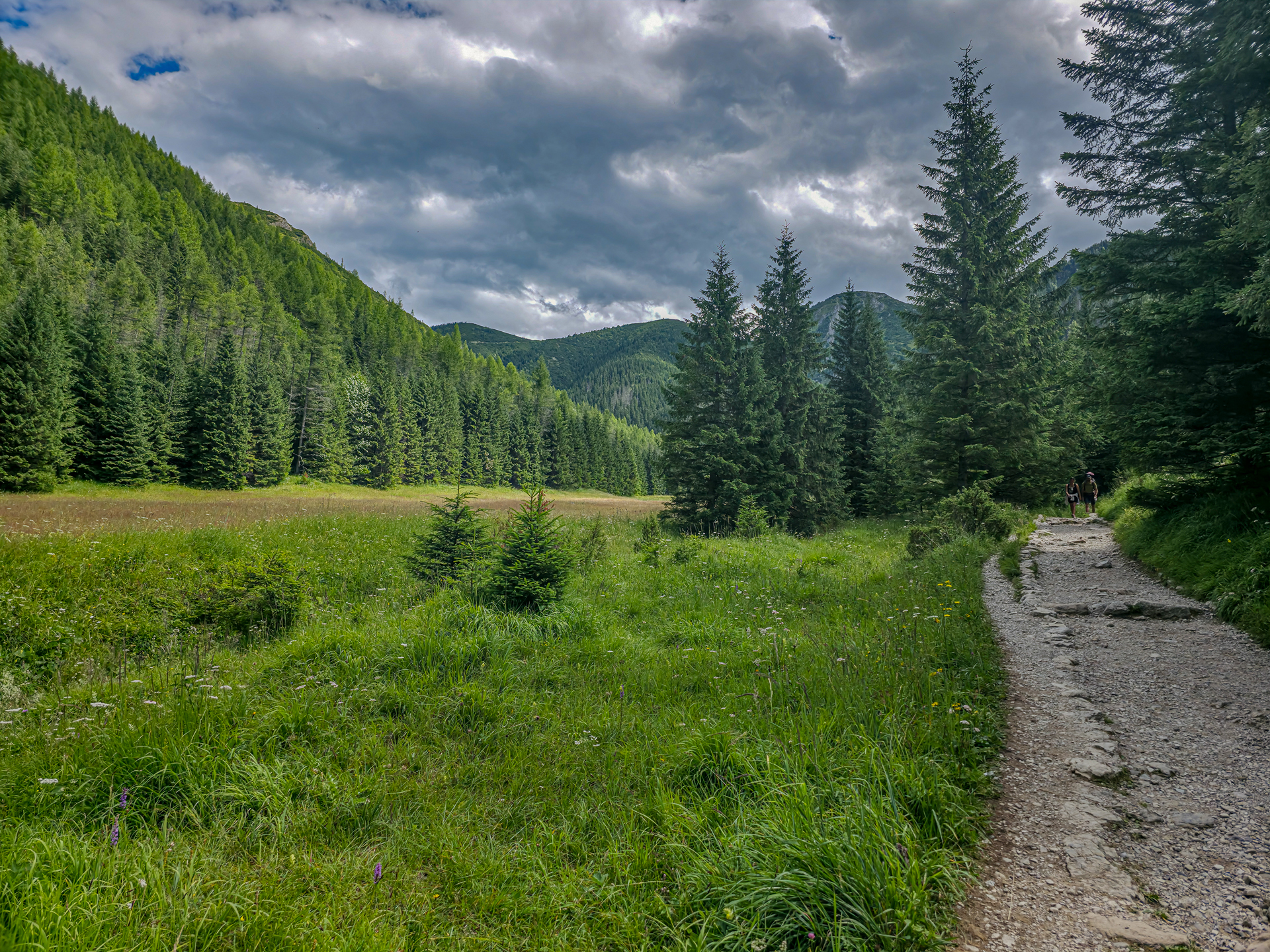 Po ponad godzinnej przerwie ruszyliśmy domknąć pętlę. Choć była już 13:00, tłumy nadal napływały w kierunku Murowańca. Wybraliśmy powrót przez Dolinę Jaworzynka. Widokowo wolę Boczań, ale chciałem sobie przypomnieć żółty szlak, z którym mam dobre wspomnienia.