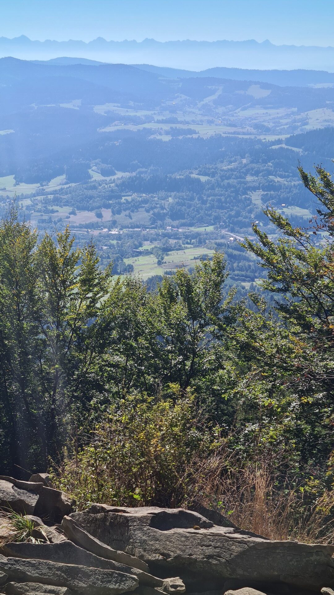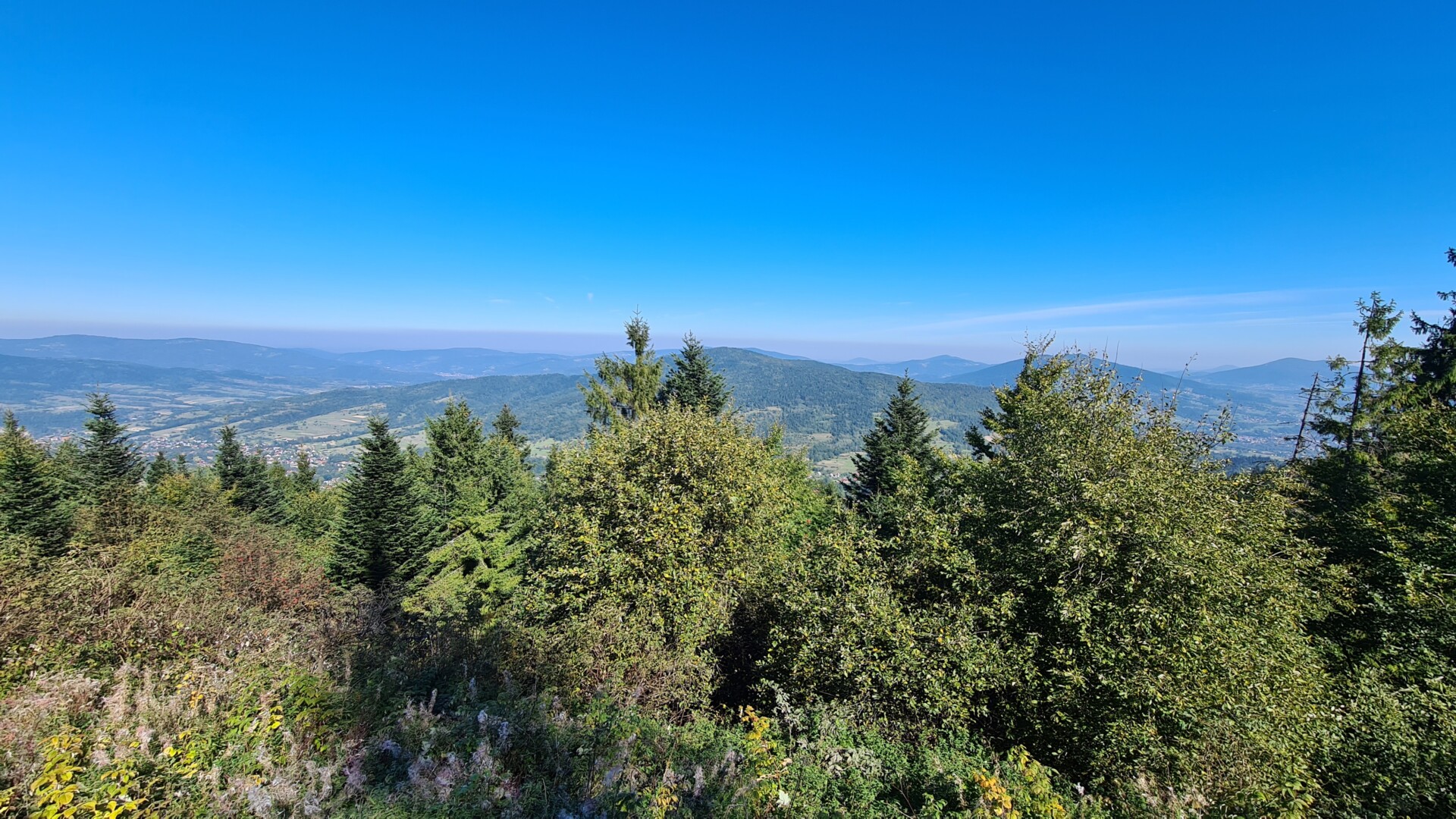 🌄 Widoki – Po drodze imponujące panoramy z Dziurawych Turni, z których przy dobrej pogodzie widać Tatry. Ze szczytu widok ograniczony, ale rekompensuje go klimat miejsca i położenie schroniska.