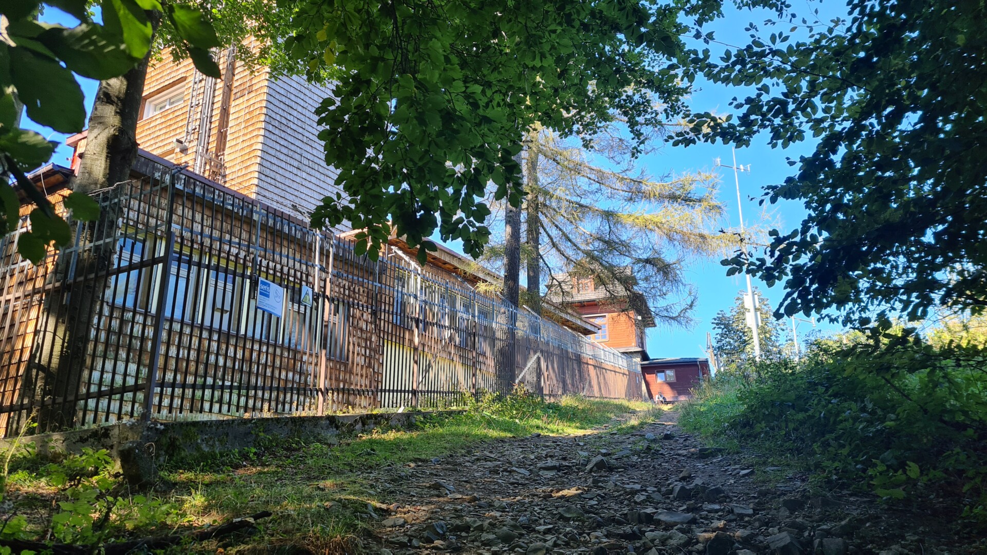 🔹 Trudności techniczne: podwyższone. Podejście może wymagać pracy rąk, dobrej przyczepności i stabilności na nierównej nawierzchni. Brak sztucznych ułatwień, a przy deszczu fragmenty mogą być bardzo śliskie.