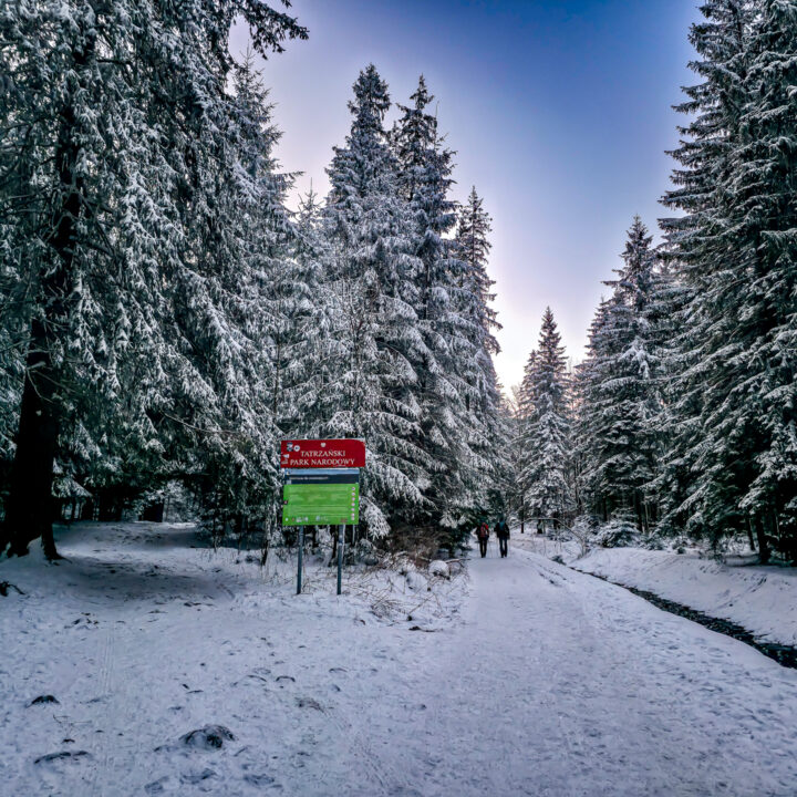W kierunku Kuźnic ruszyłem chwilę po 7 rano, by dwadzieścia minut później obrać niebieski szlak — Drogę Brata Alberta — w kierunku Kalatówek. Większość turystów jeszcze nie dotarła, więc mogłem cieszyć się znikomym ruchem. Mróz przyjemnie ciął po twarzy; chwilę wcześniej termometr w samochodzie pokazywał –8°C.