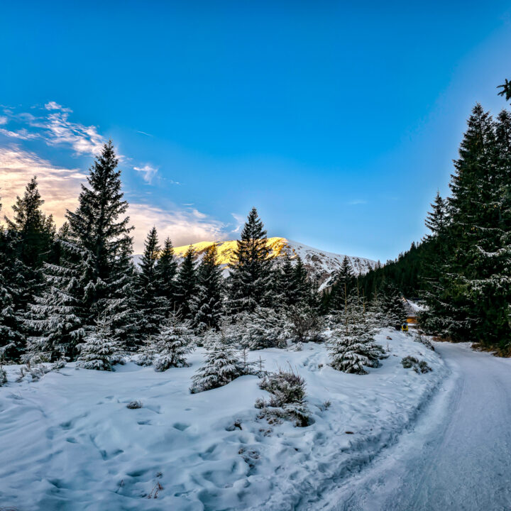 Mało kto lubi wstawać w dzień wolny przed świtem, gdy na zewnątrz panuje totalna ciemność, a świat zdaje się wołać: „Pogięło Cię?! Wracaj pod ciepłą kołdrę!”. Niech sobie woła. Zwłaszcza że prognozy były jednoznaczne — jeśli zostanę w domu, kolejny dzień upłynie w beznadziejnie szaro-smutnym sosie grudniowej aury. A mnie marzył się dzień z błękitnym niebem pośród białych szczytów.
