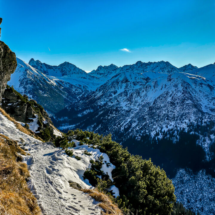 Rozważałem Babią Górę od strony słowackiej albo Szpiglasowy Wierch z Doliny Pięciu Stawów Polskich, ale ostatecznie postawiłem na bezpieczniejszy wariant — Przełęcz pod Kopą Kondracką od strony Doliny Kondratowej, z kilkoma opcjami awaryjnymi na wypadek pogorszenia warunków.