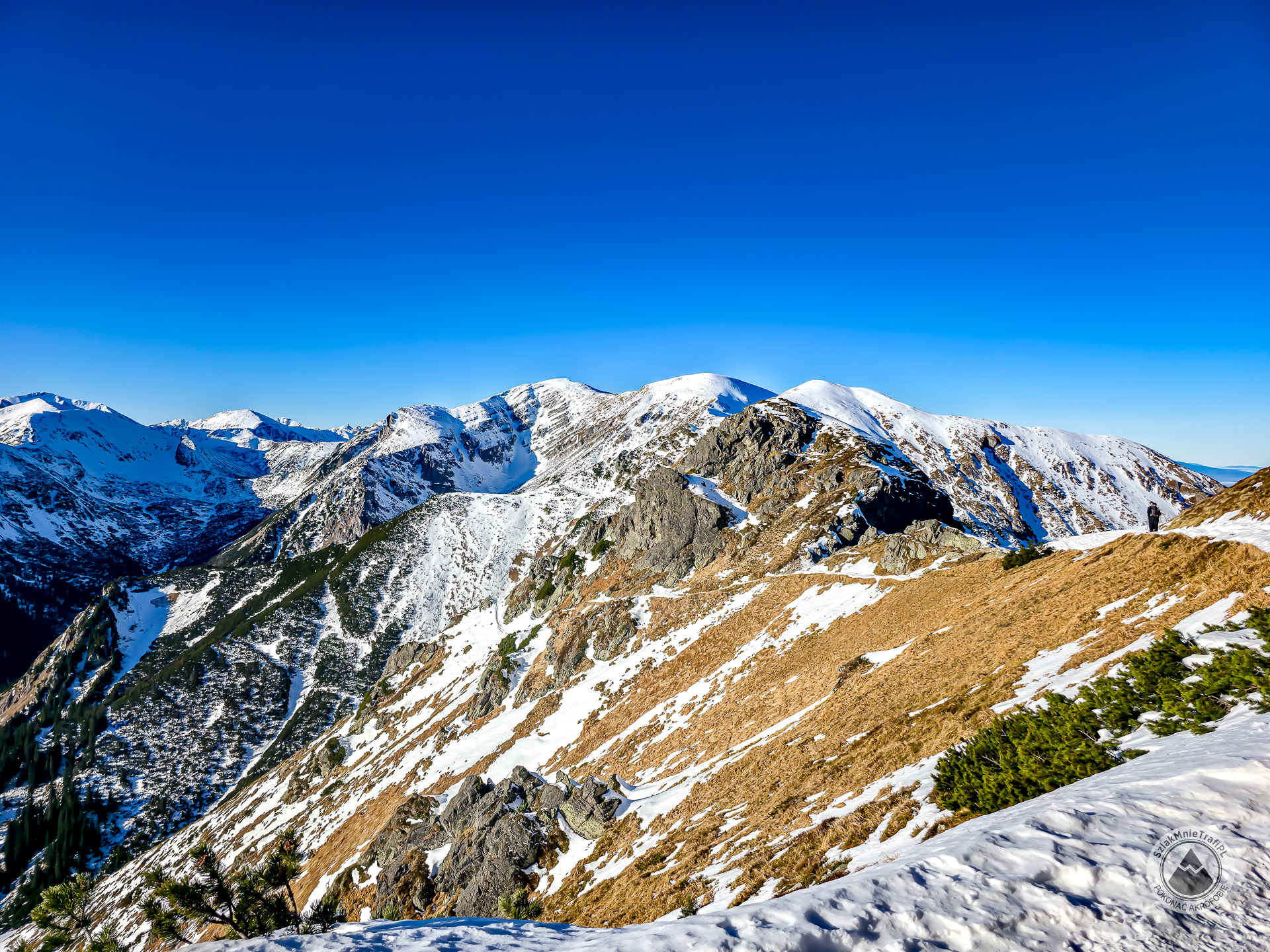 Pierwszy dreszczyk emocji pojawił się dość szybko. Okazało się, że przebieg szlaku nie jest już tak intuicyjny jak wcześniej i chwilę zajęło mi odnalezienie właściwego wariantu przejścia. Warunki pozwalały jednak na moment dezorientacji i po kilku minutach, za Suchą Kopą, dotarłem na czerwony szlak Główną Granią Tatr.