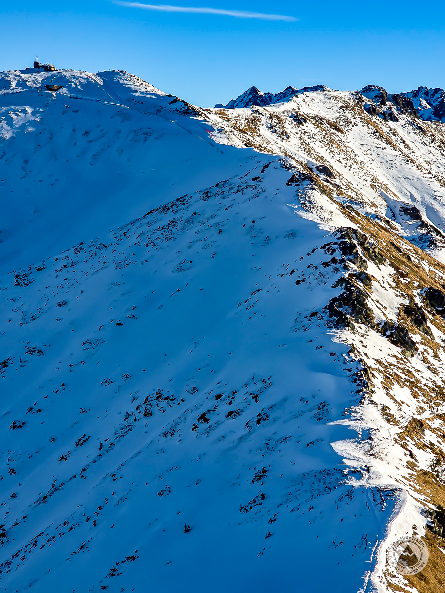 Dla bezpieczeństwa licznie przybywających tu każdego dnia turystów TPN zamknął fragment żółtego szlaku prowadzącego z górnej stacji kolejki na sam szczyt Kasprowego. Zimą schody te są zwyczajnie oblodzone i nawet spacer w raczkach bywa tam wyzwaniem. I bardzo dobrze — chciałoby się powiedzieć.