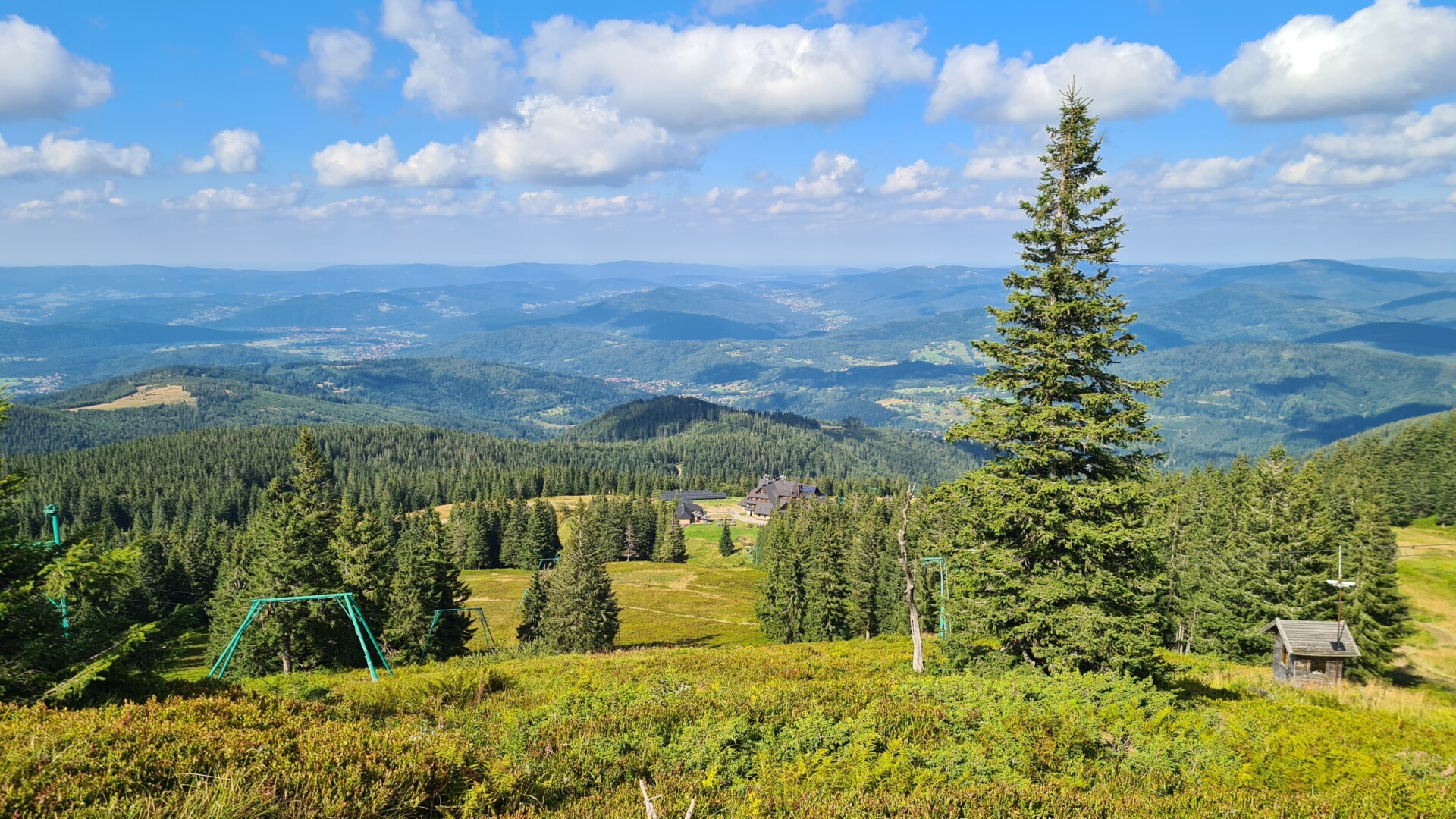 Pilsko (1557 m n.p.m.) to drugi co do wysokości szczyt Beskidu Żywieckiego, po Babiej Górze. Pod względem ekspozycji – znacznie łagodniejsze, ale widokowo? Kapitalne. Z jednej strony Babia jak na dłoni, z drugiej przy sprzyjającej pogodzie – Tatry aż po Krywań, dalej Mała Fatra, a i Beskid Śląski i Żywiecki. Góra, która daje poczucie wysokości, ale nie wystawia na próbę układu równowagi. Tego dnia jednak Tatry były ledwo dostrzegalne.